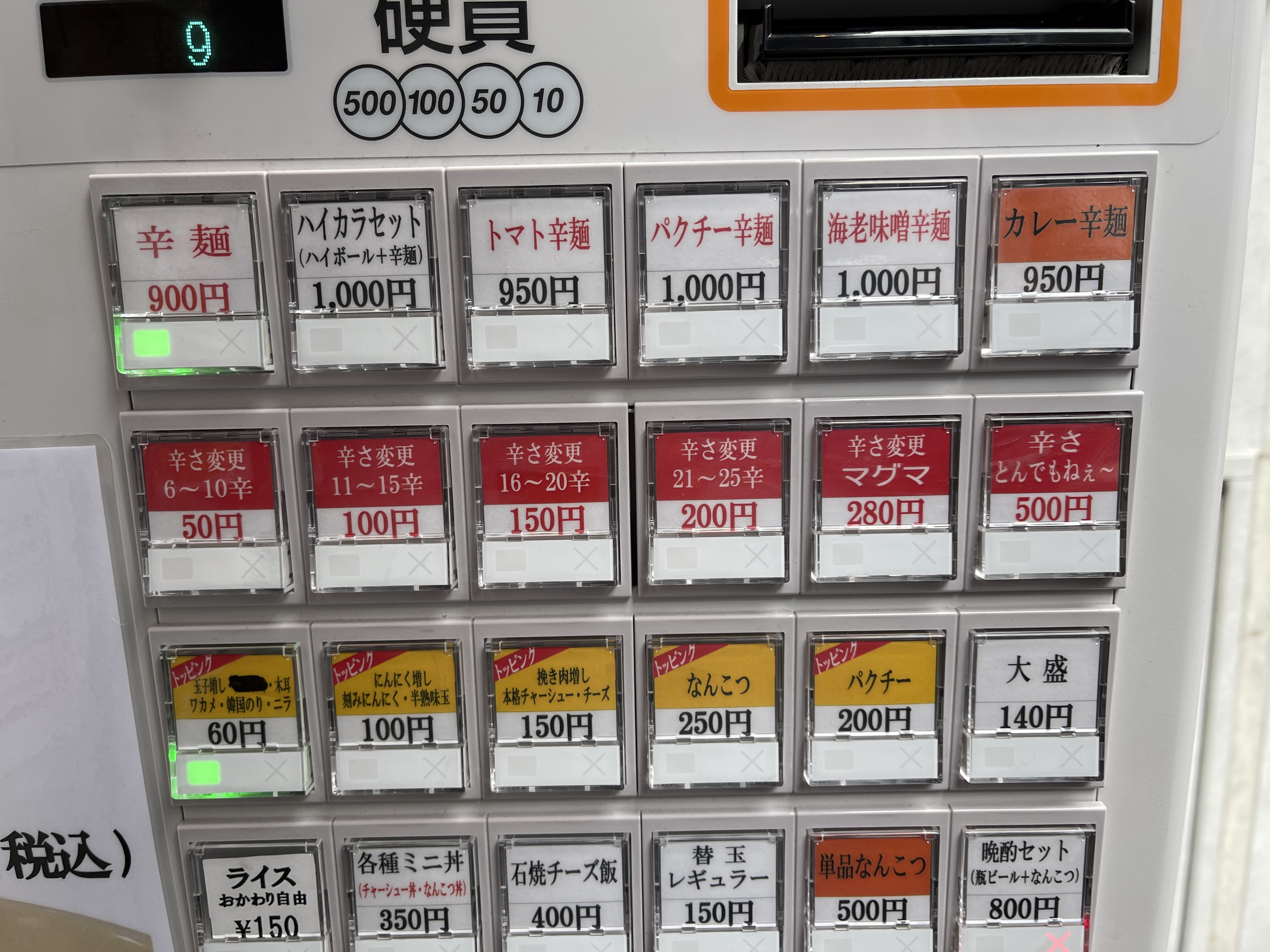 주문하는 자판기를 보니 카라멘, 토마토카라멘, 고수 카라멘, 새우미소카라멘 등 죄다 매운 메뉴뿐이고