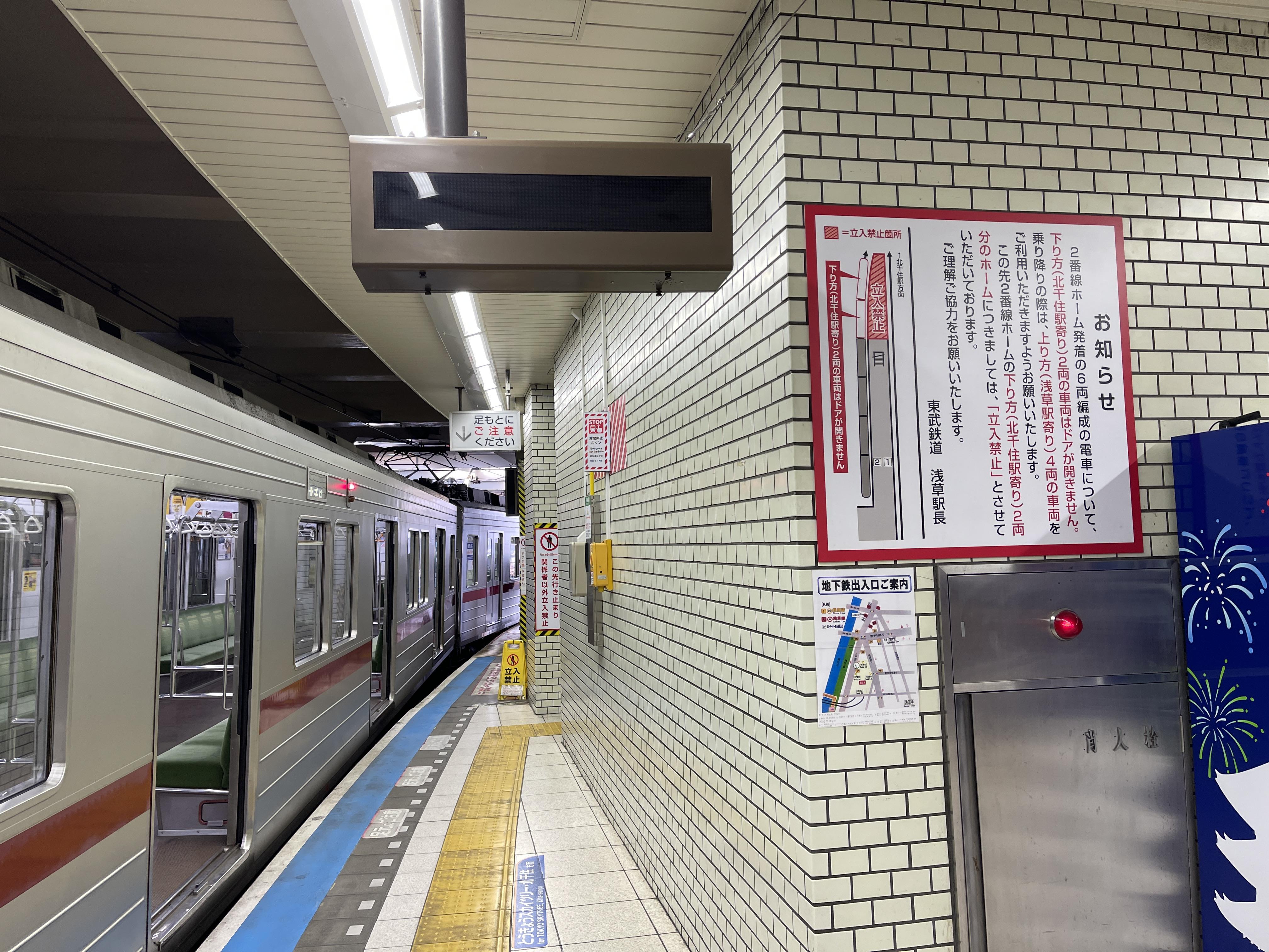 토부 아사쿠사역 보통열차 승강장은 그 구조가 좀 특이합니다.