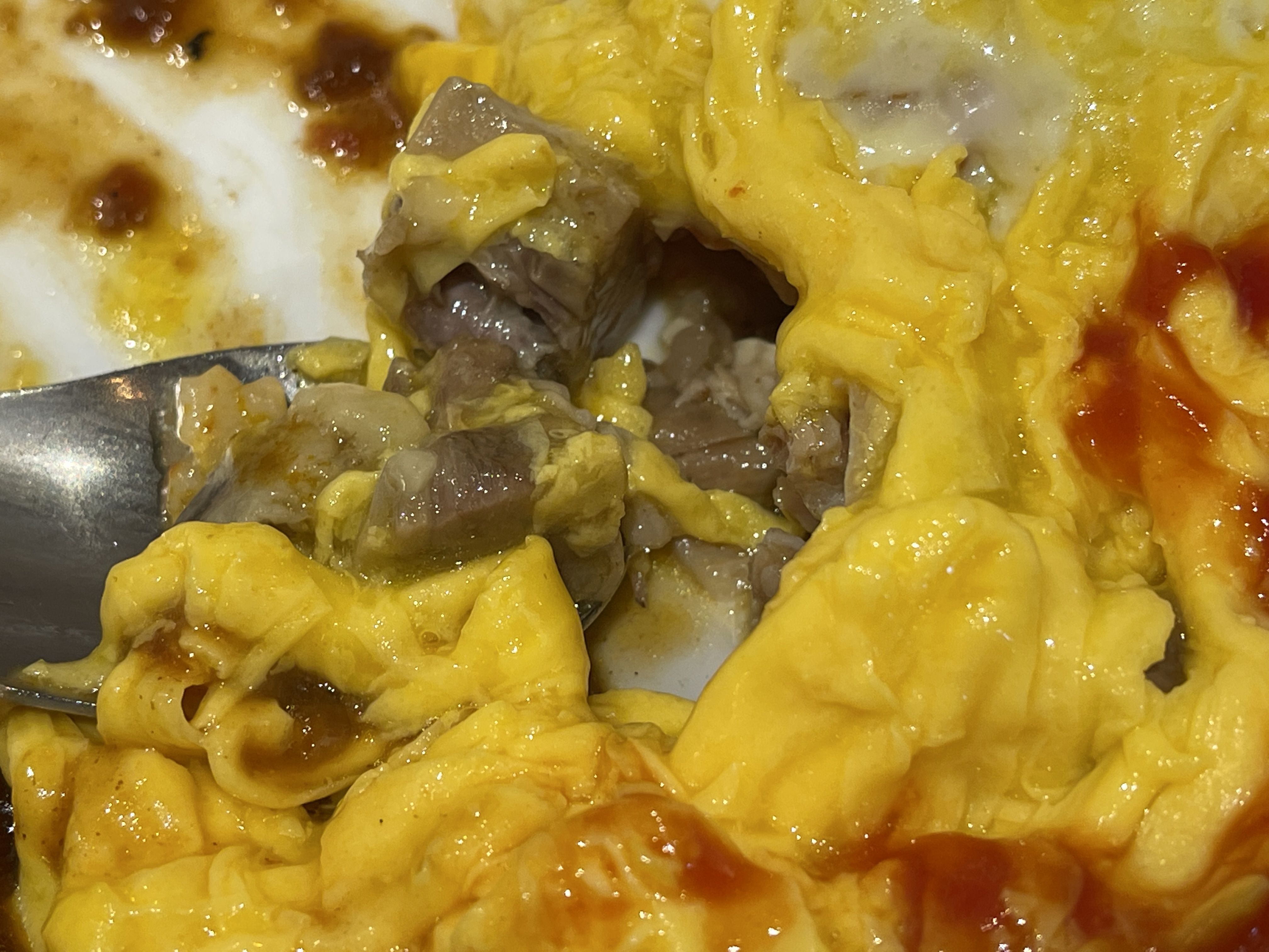오믈렛 속에 숨어있던 생각지도 못한 갈빗살이 부드럽게 씹히면서 볶음밥과 계란과 잘 어울립니다.