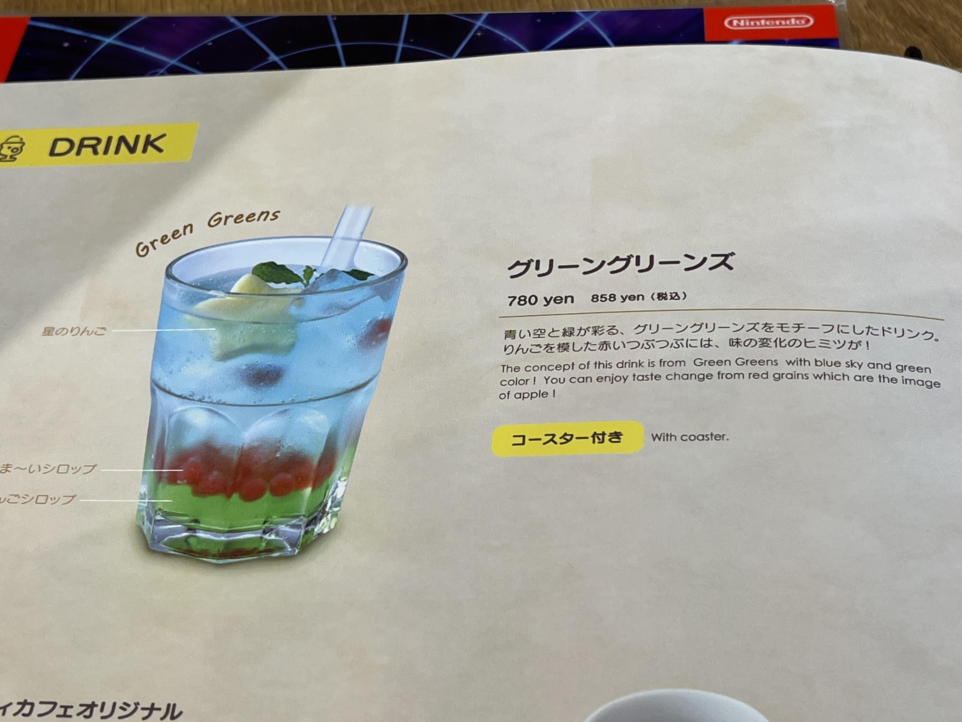 별의 커비를 대표하는 음악 그린 그린에서 콘셉트를 따왔다는 음료를 마셔봅니다.