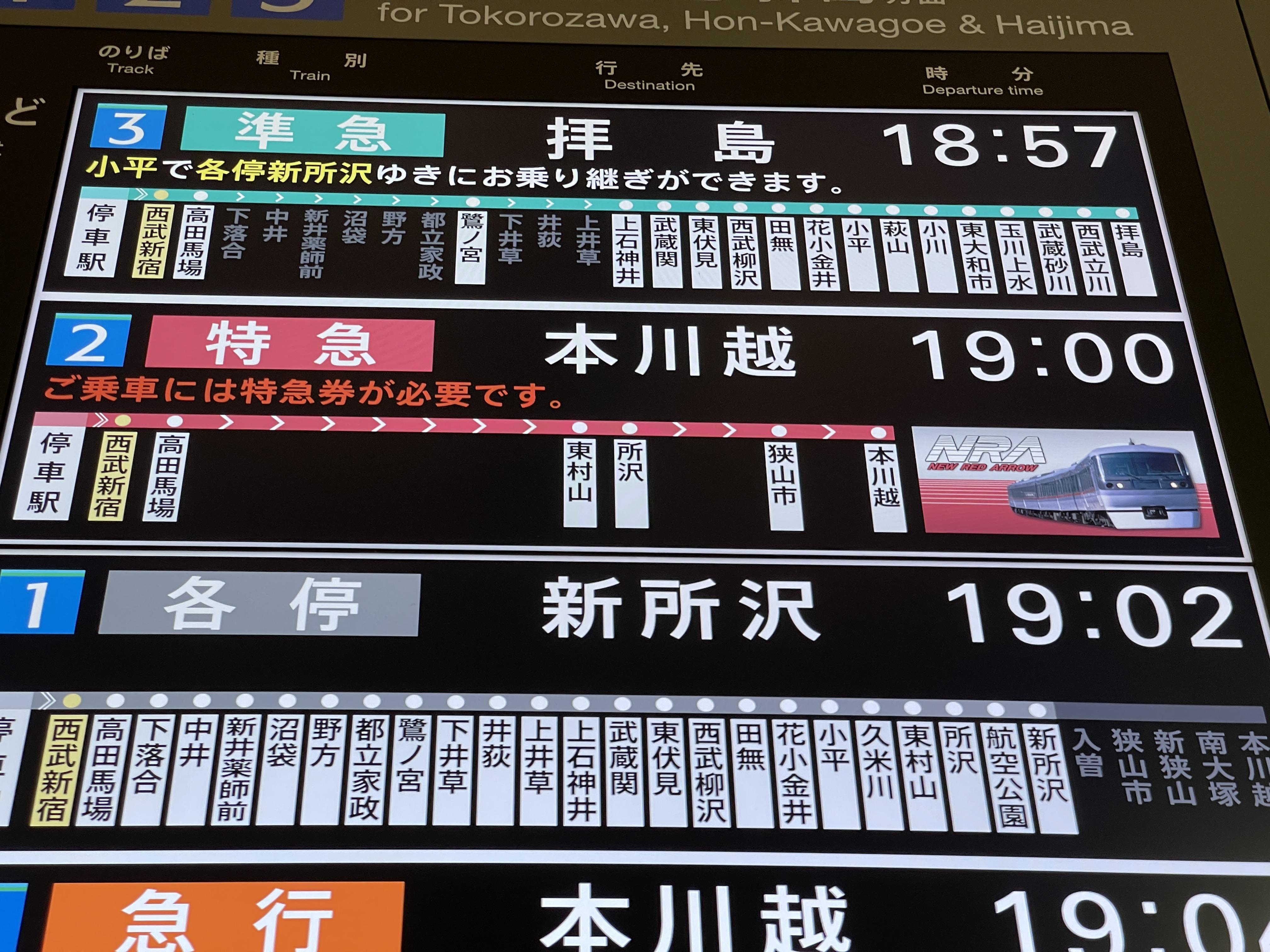 세이부신주쿠역에 내리니 혼카와고에역으로 가는 특급 코에도가 대기 중인데요.
