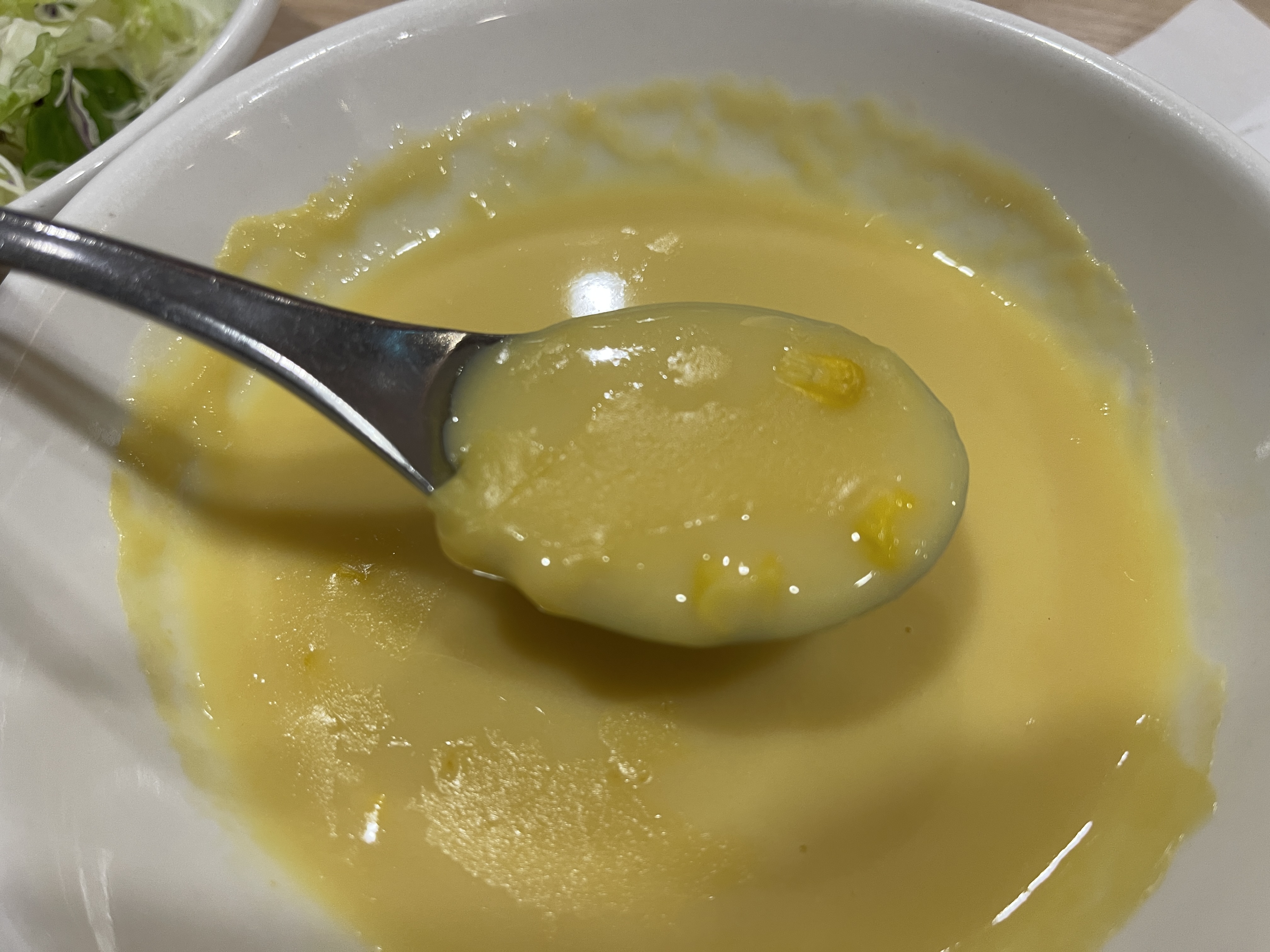 옥수수알이 듬뿍 들어간 이 수프가 의외로 맛있습니다.