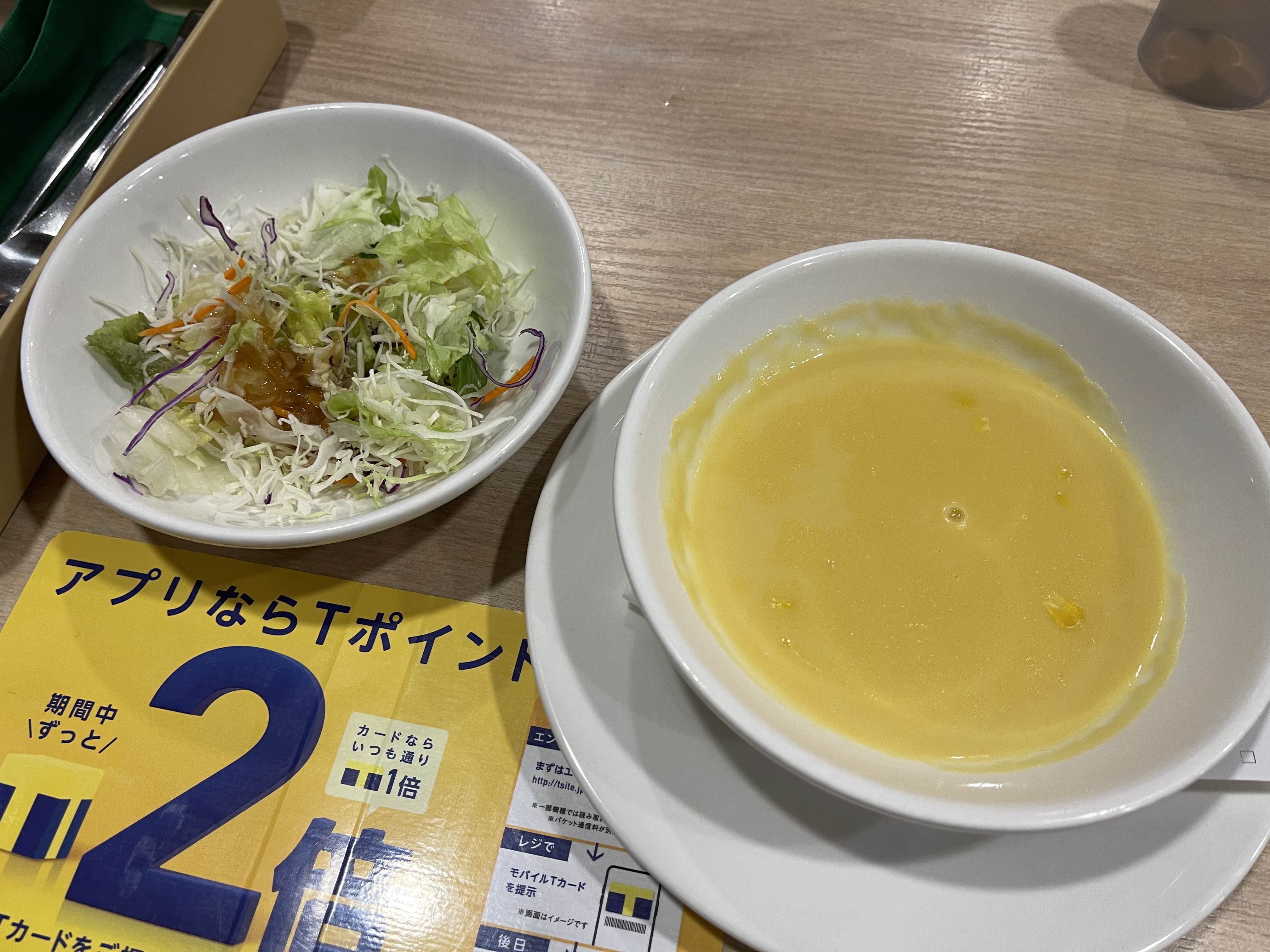 애피타이저로 먼저 샐러드와 수프(ポタージュ, 포타주)가 나왔는데요.