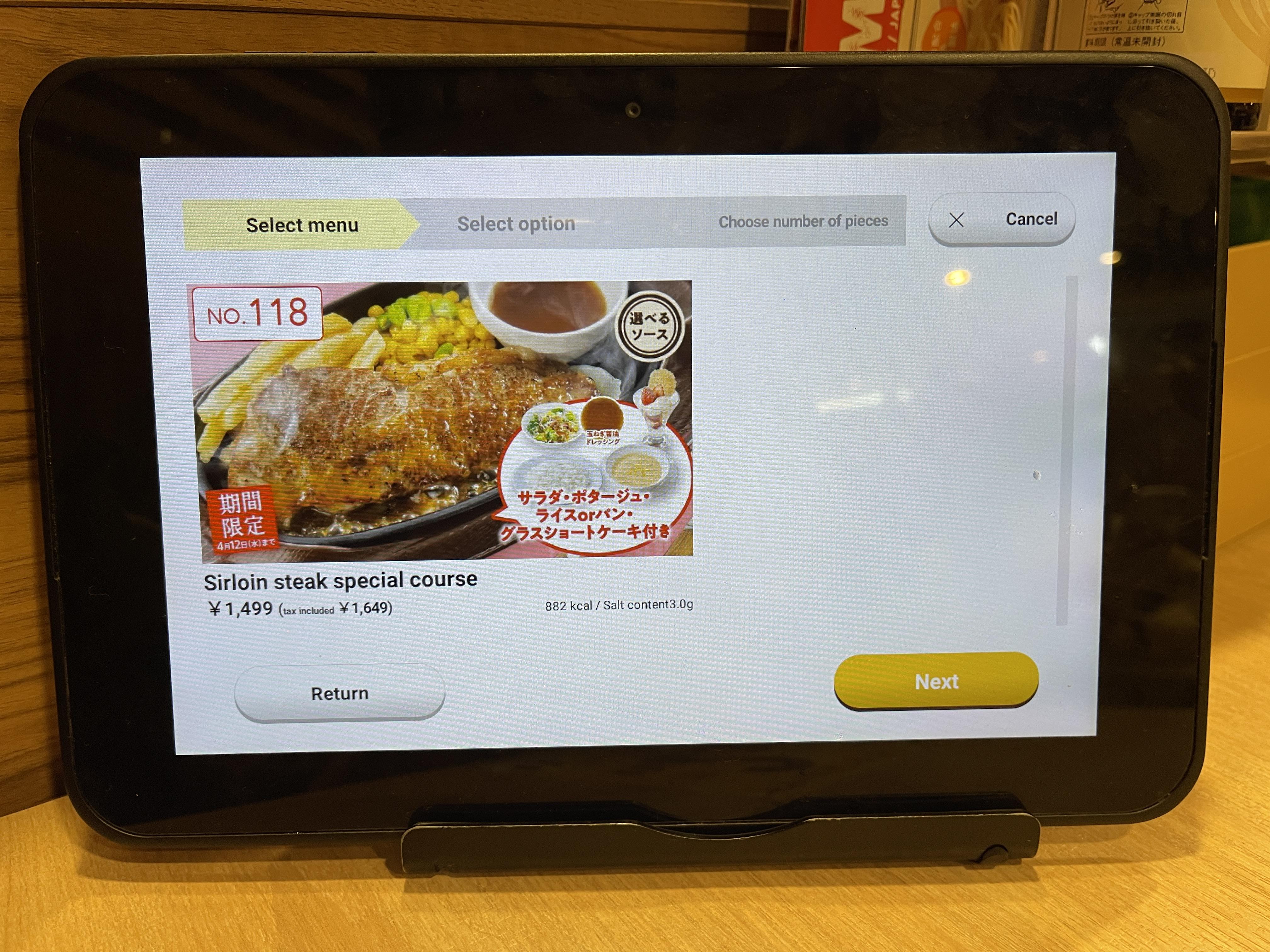 기간 한정 메뉴로 서로인 스테이크 스페셜 코스(サーロインステーキ スペシャルコース)가 있네요.