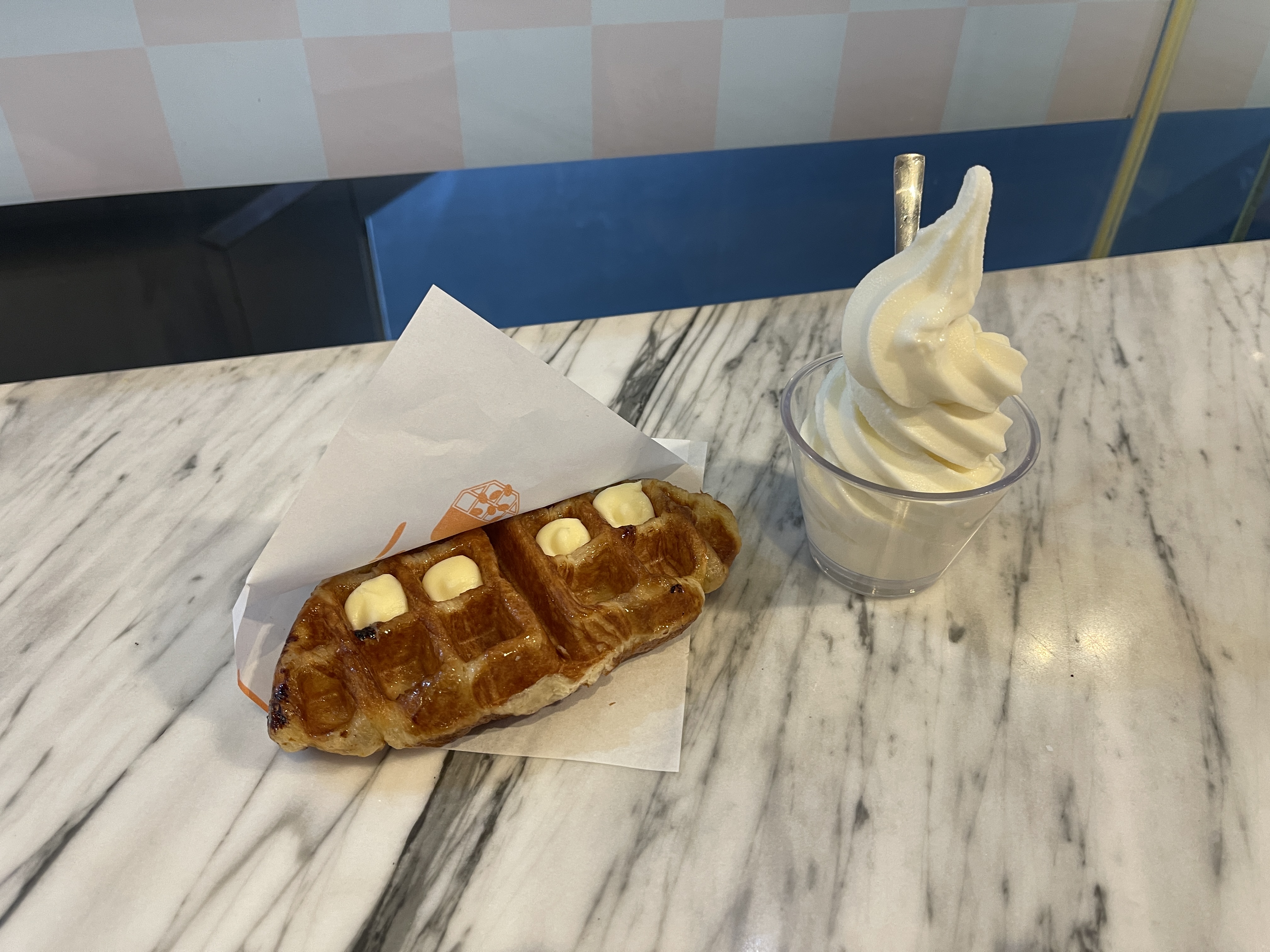 아이스크림과 함께 크로플을 먹고 갑니다.