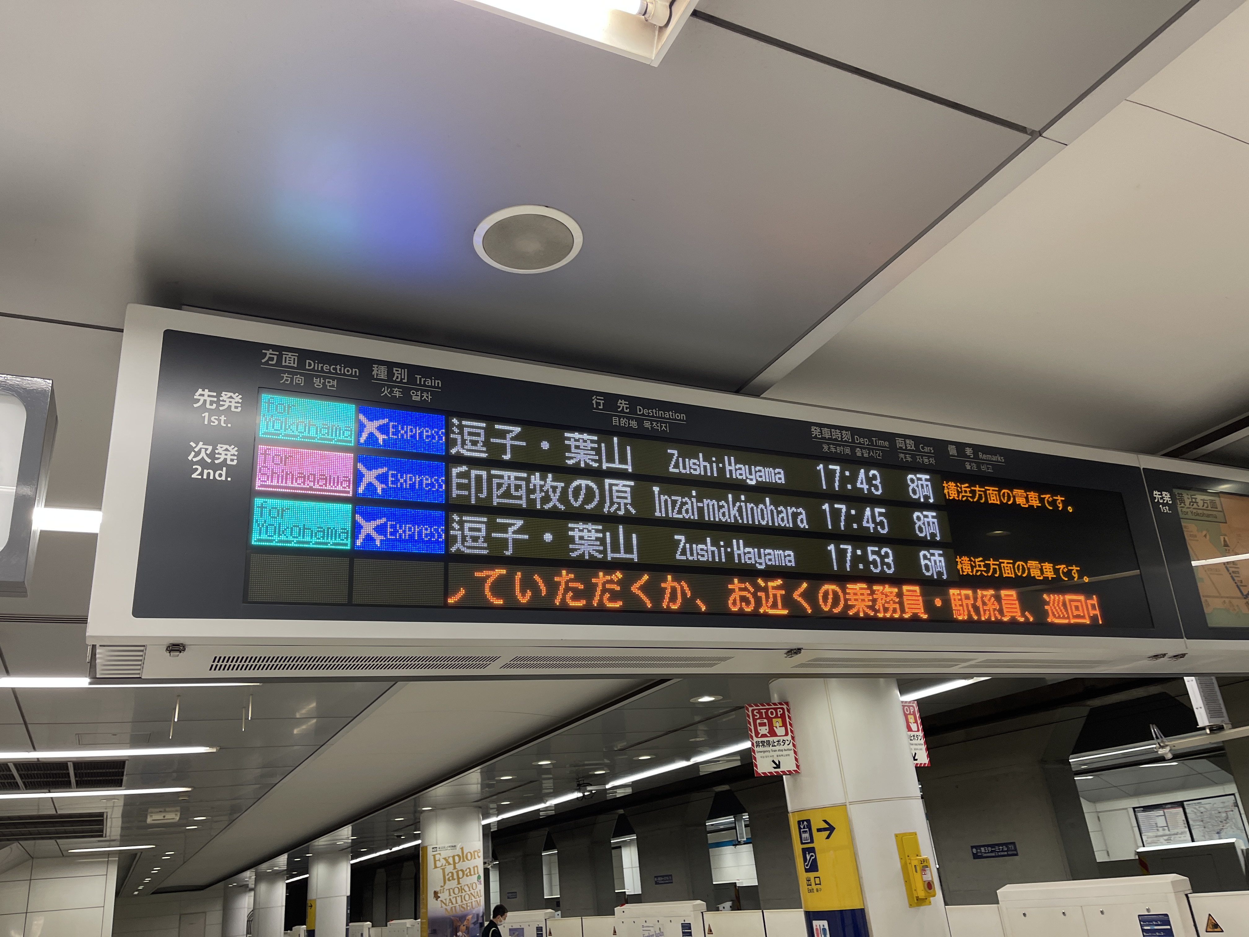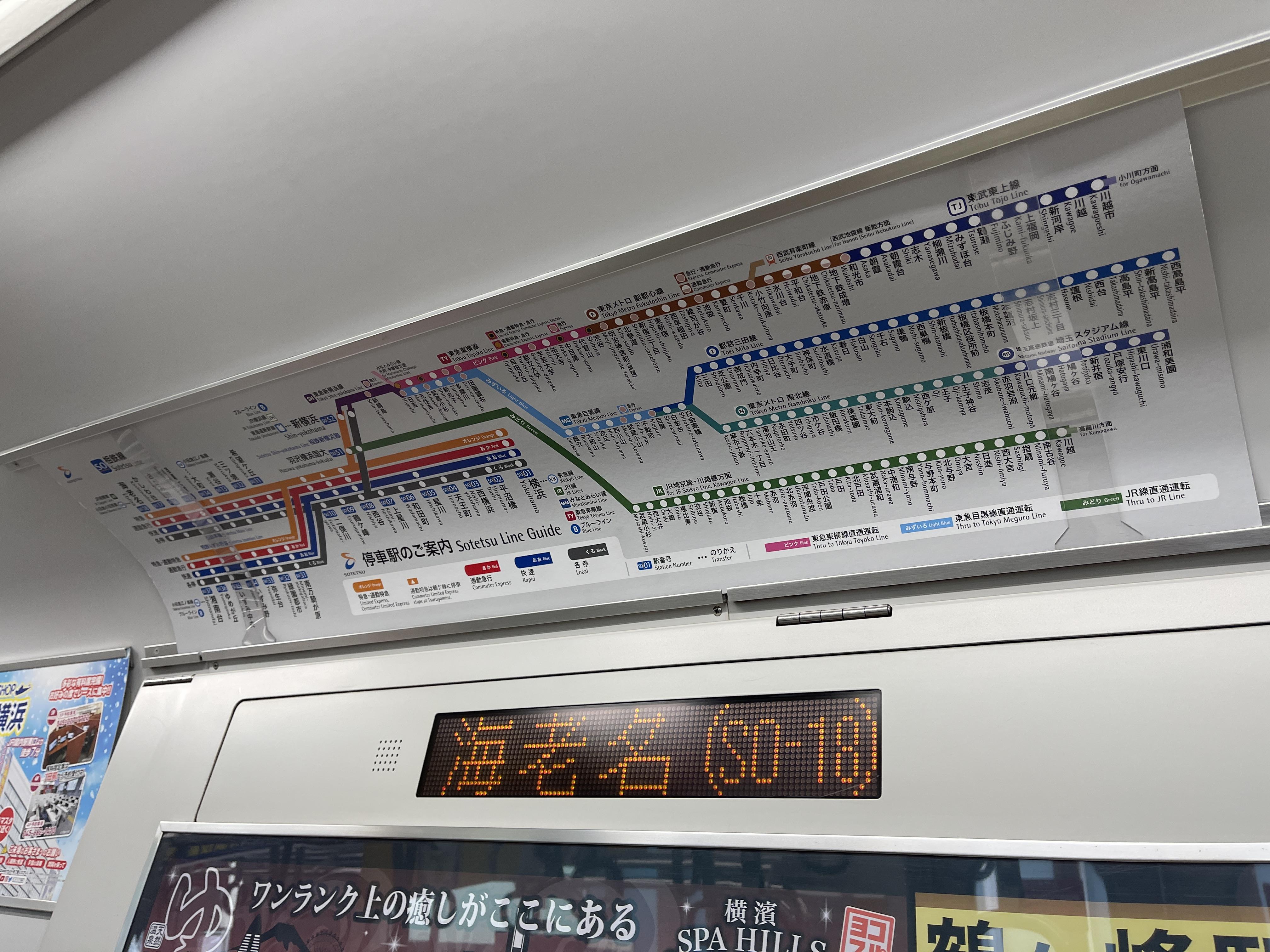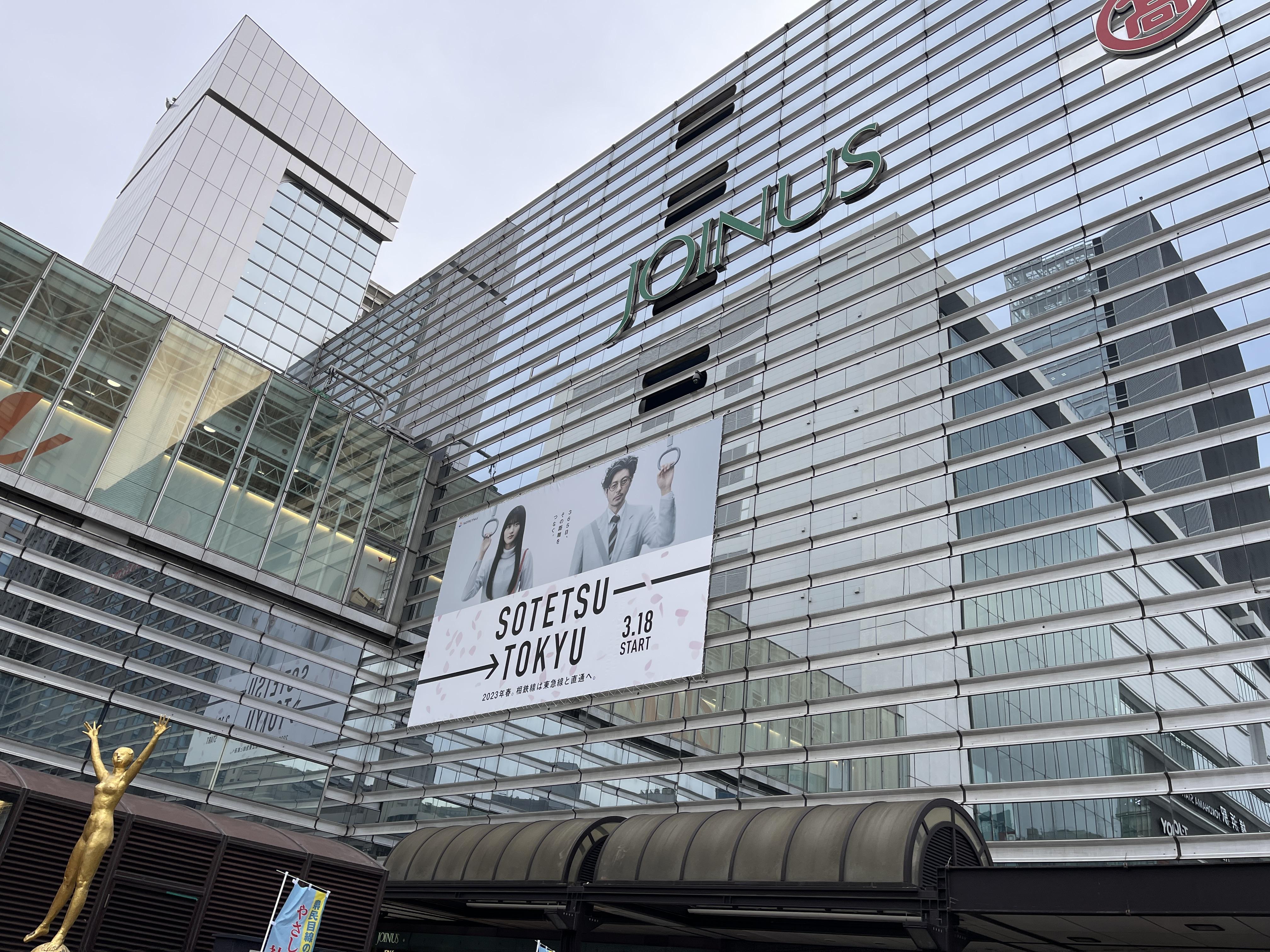 앞서 언급한 소테츠와 다른 회사와의 직통 운행을 홍보하는 광고가 걸려 있네요.