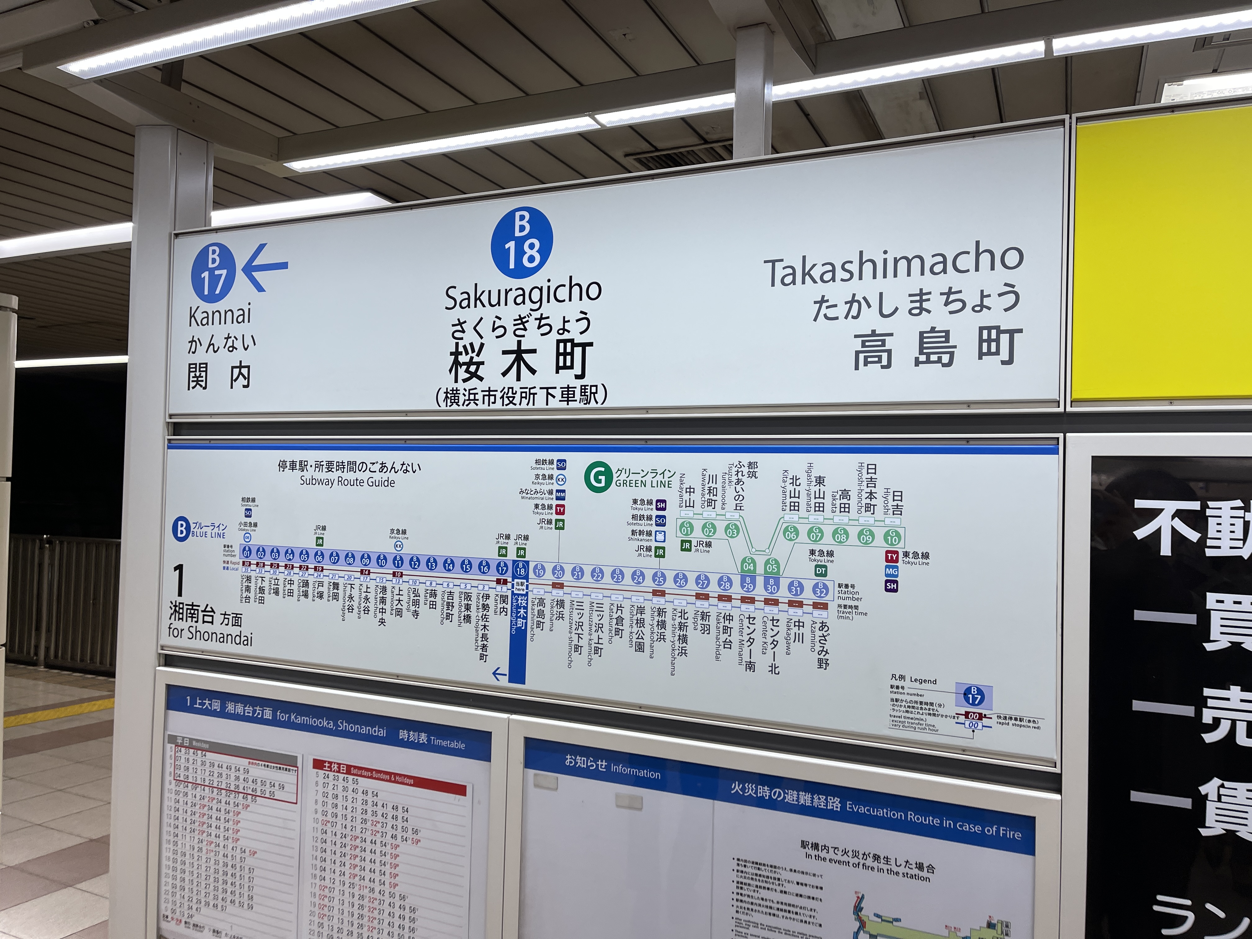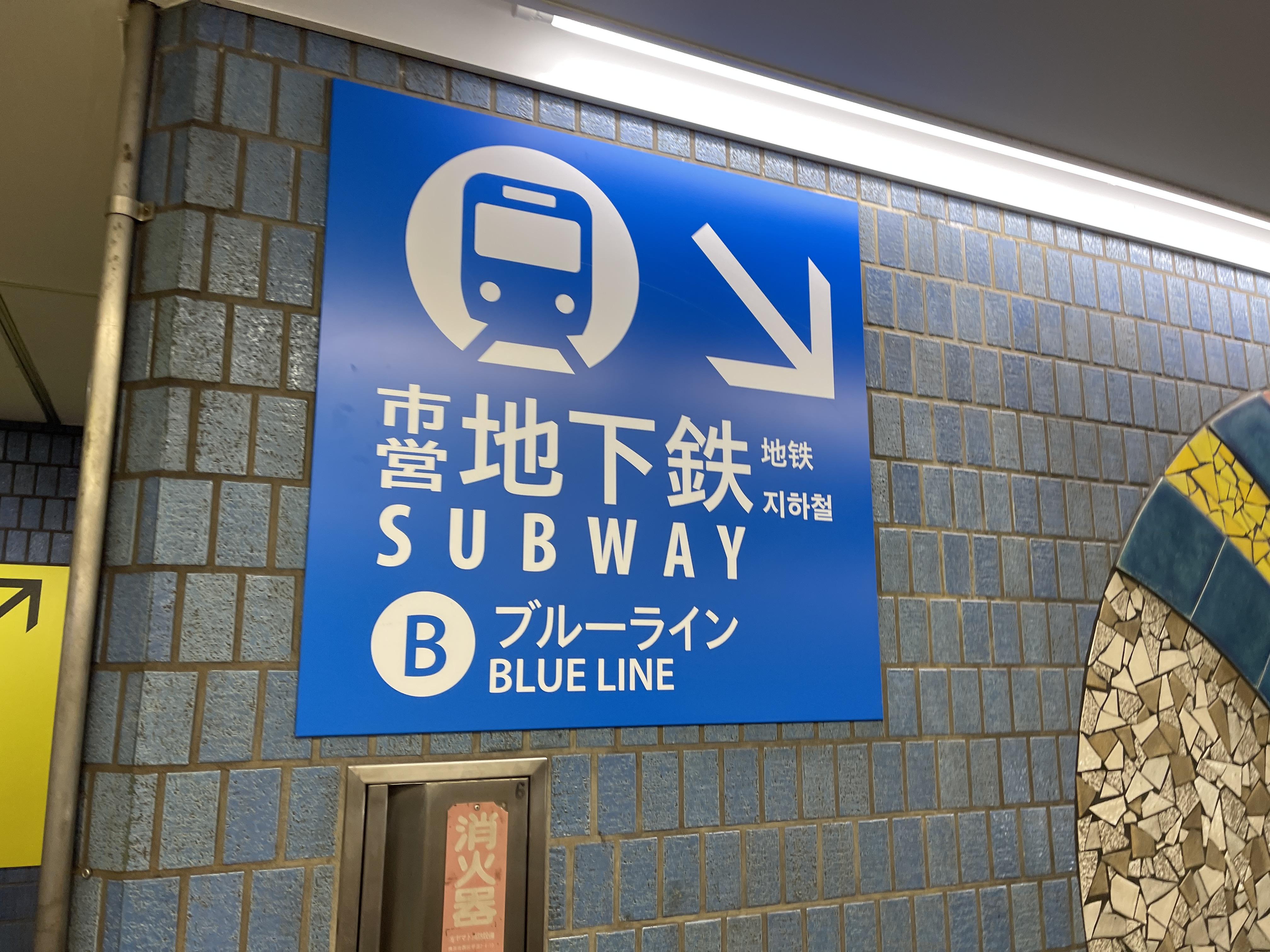 요코하마 시영 지하철 블루라인으로 갈아탑니다.