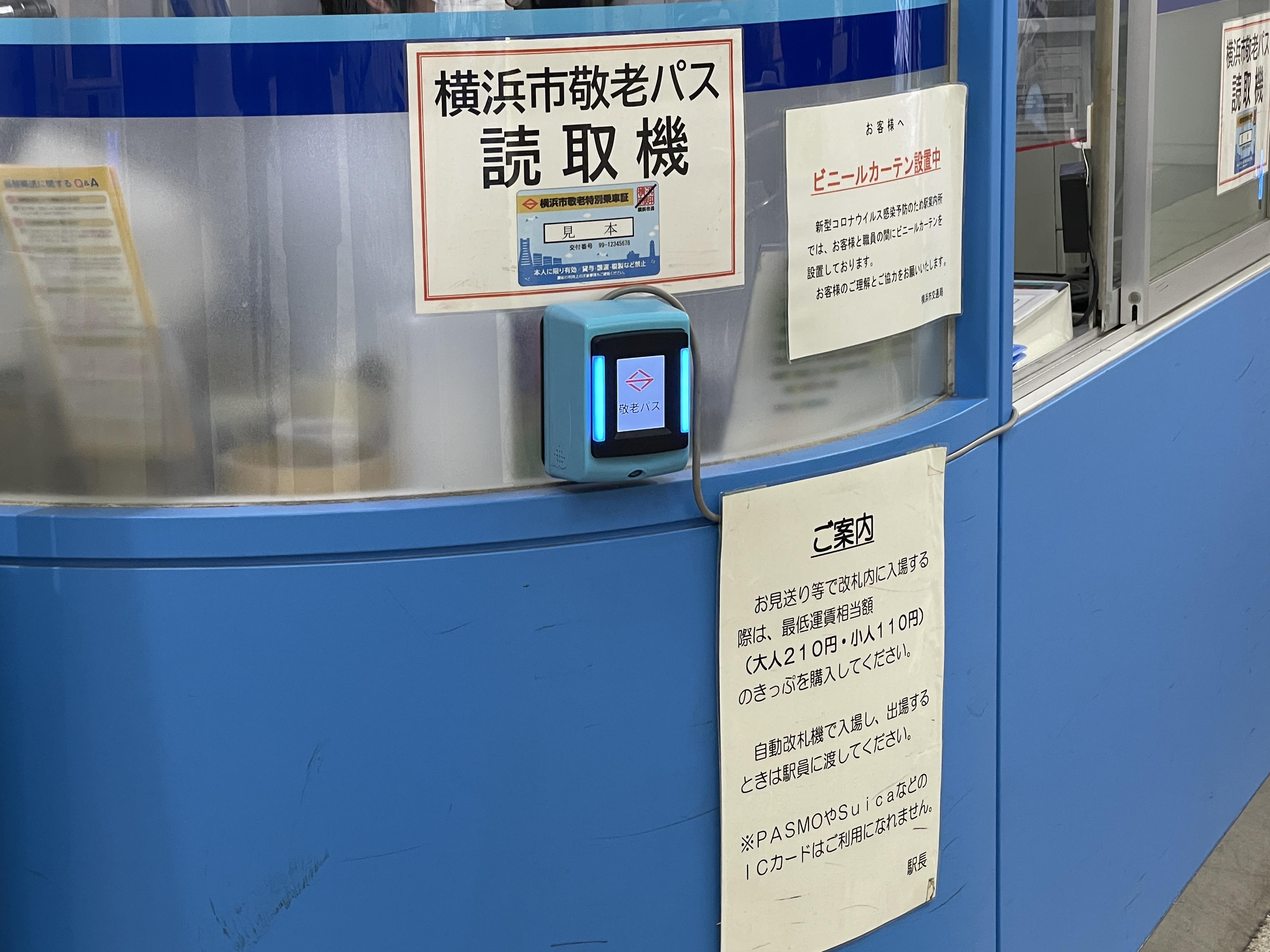 개찰구 근처 역무실을 보니 작년에 요코하마에서 한바탕 소동이 일어난 경로패스(敬老パス) 안내가 붙어 있네요.