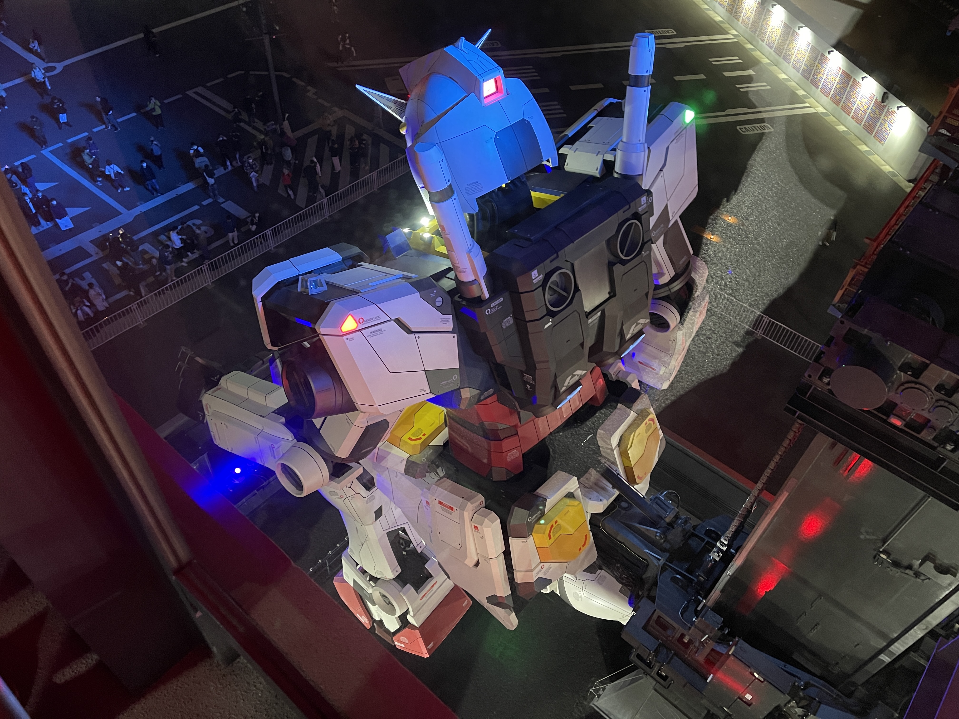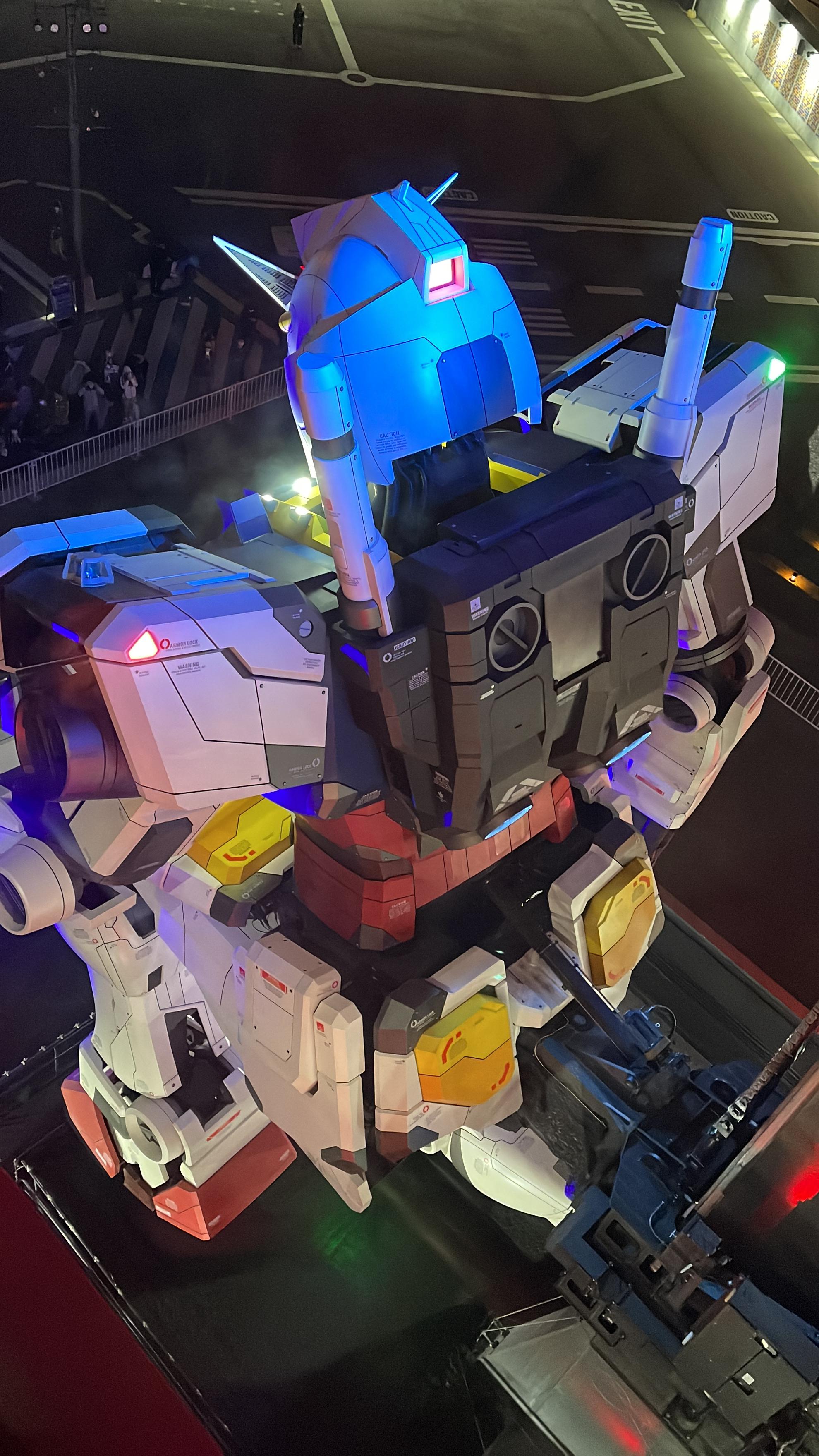 정신없이 조명이 깜빡거리는 건담을 봅니다.