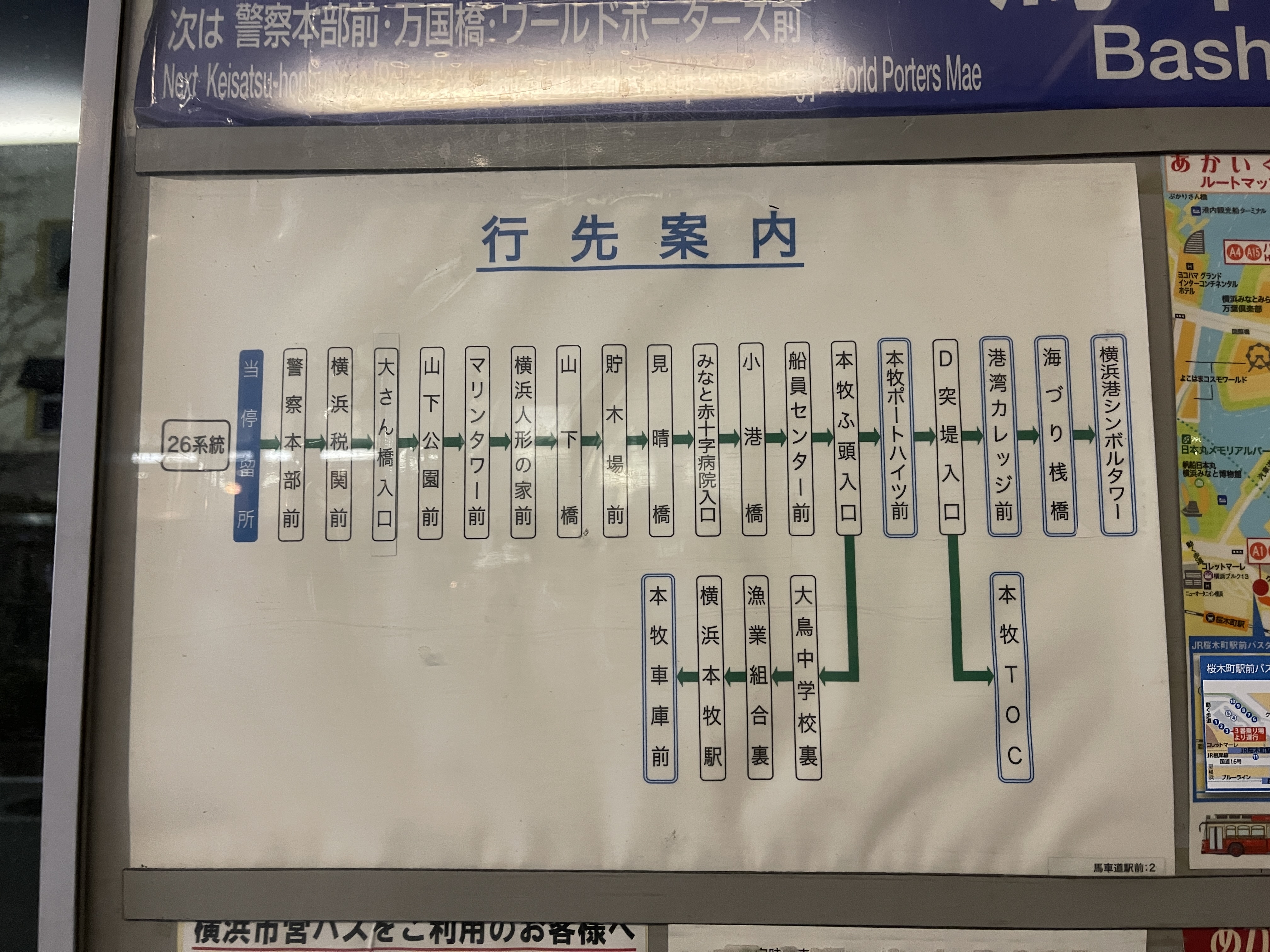 제가 타야할 요코하마 시영버스 26번 노선과 시간표를 다시 확인하고