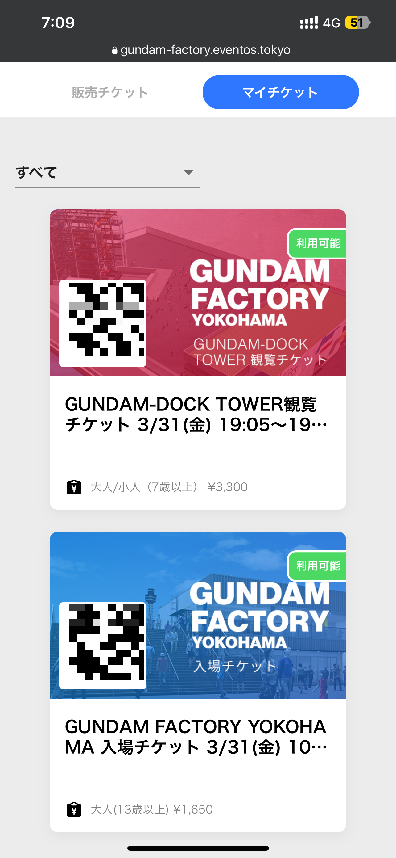 건담 팩토리 요코하마 입장권에 건담 독 타워 입장권까지 총 4,950엔을 주고 미리 예약했습니다.