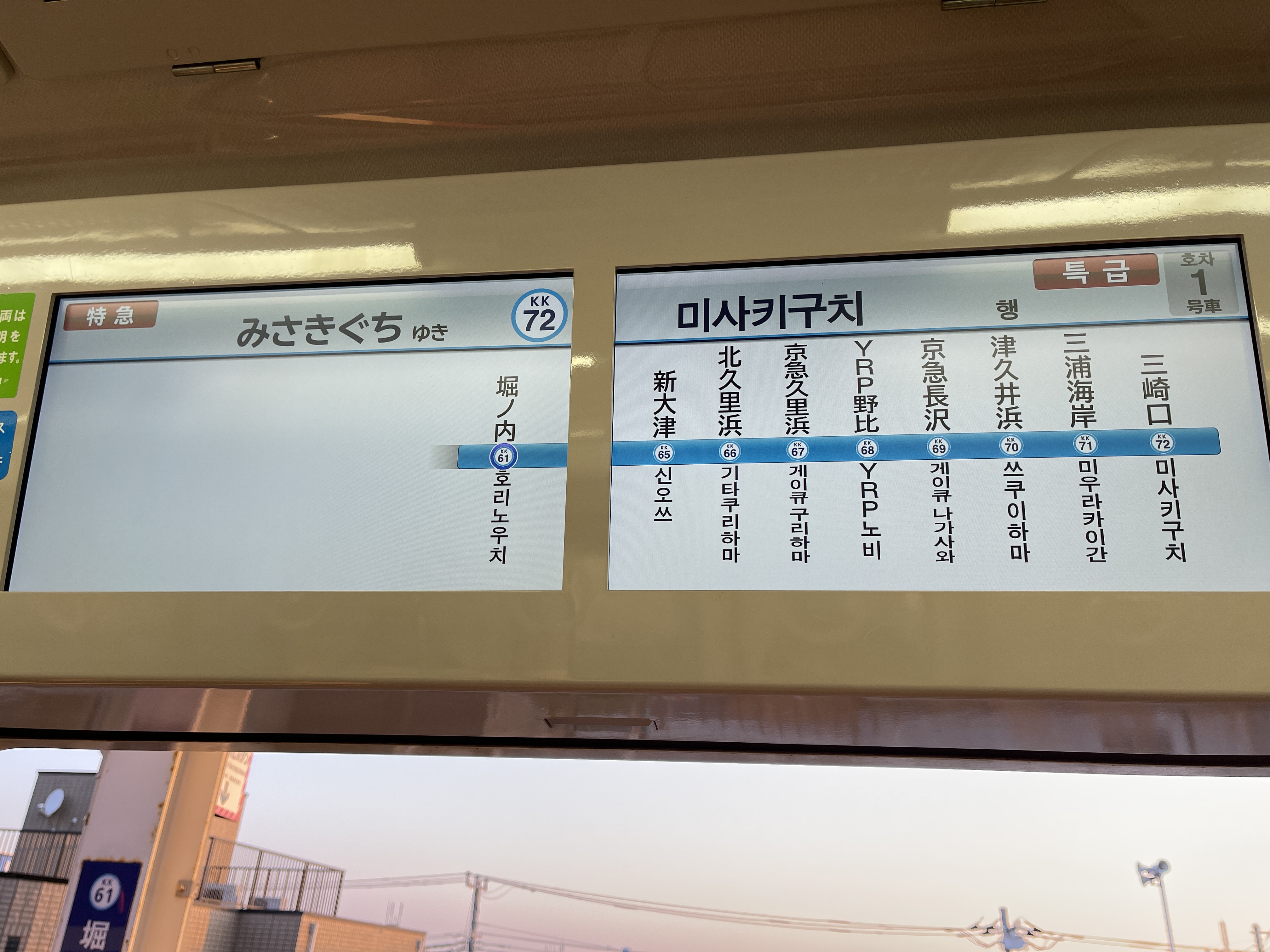 미사키구치역으로 가는 특급열차로 갈아탑니다.