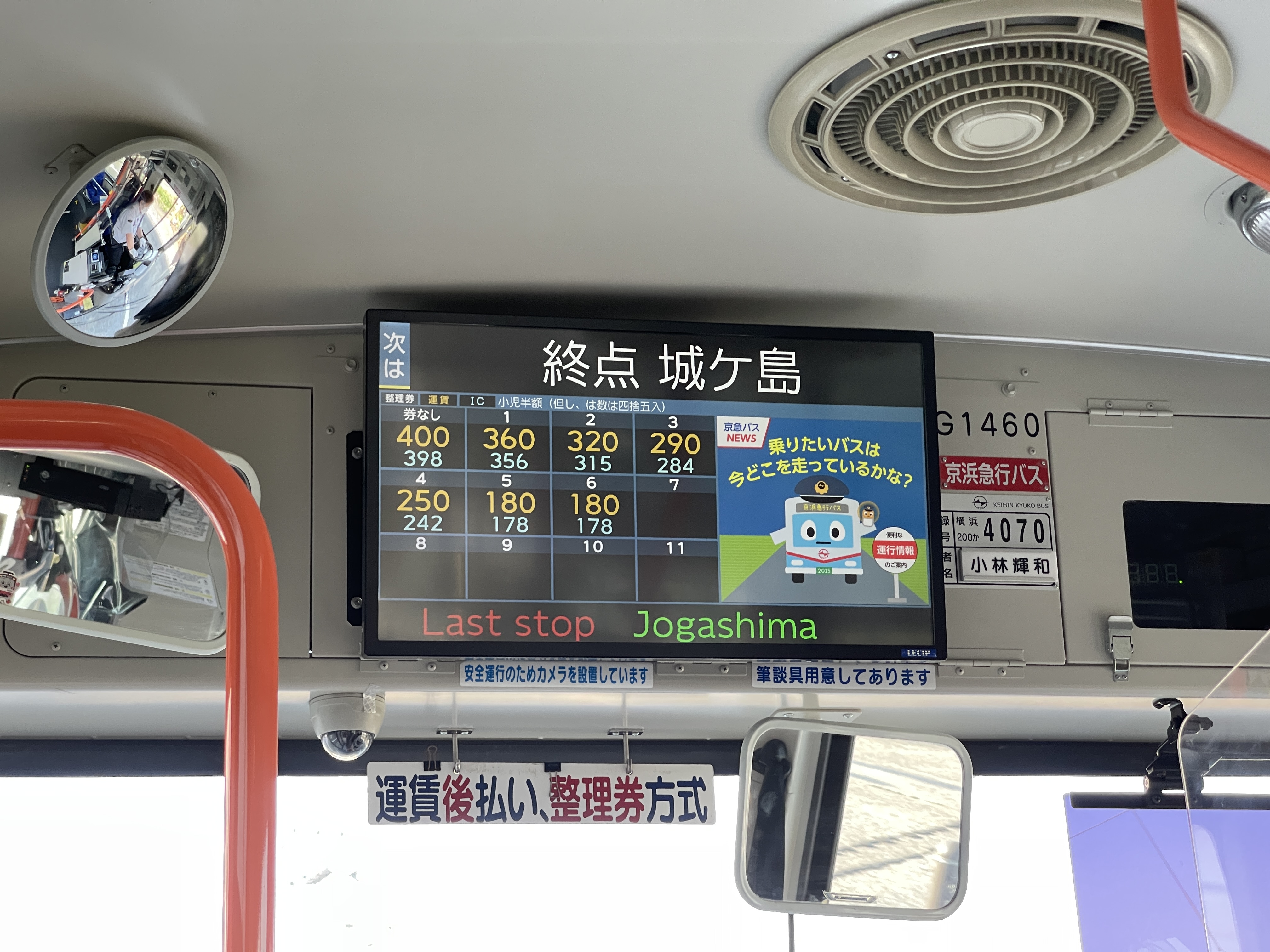 미사키구치역에서 종점 죠가시마 정류장까지 요금은 400엔인데
