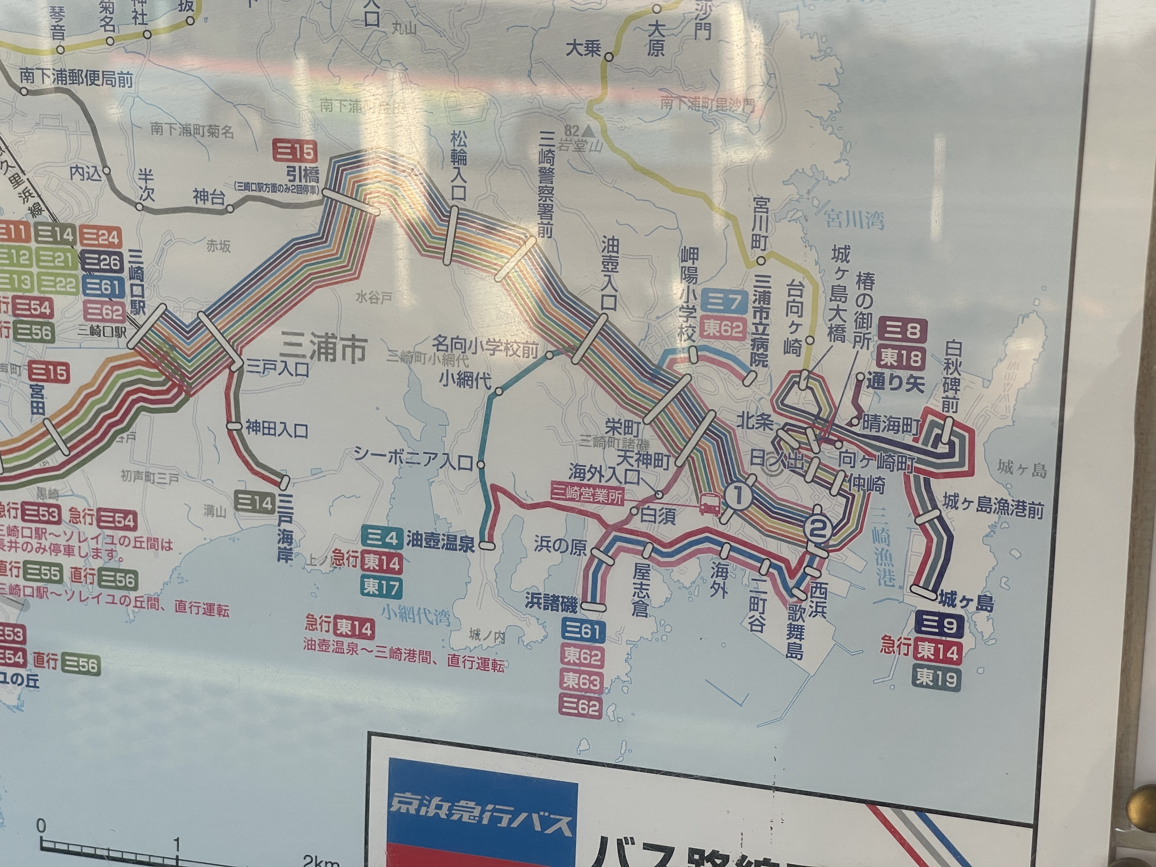 미사키히가시오카(三崎東岡)라는 시내버스 터미널도 지나