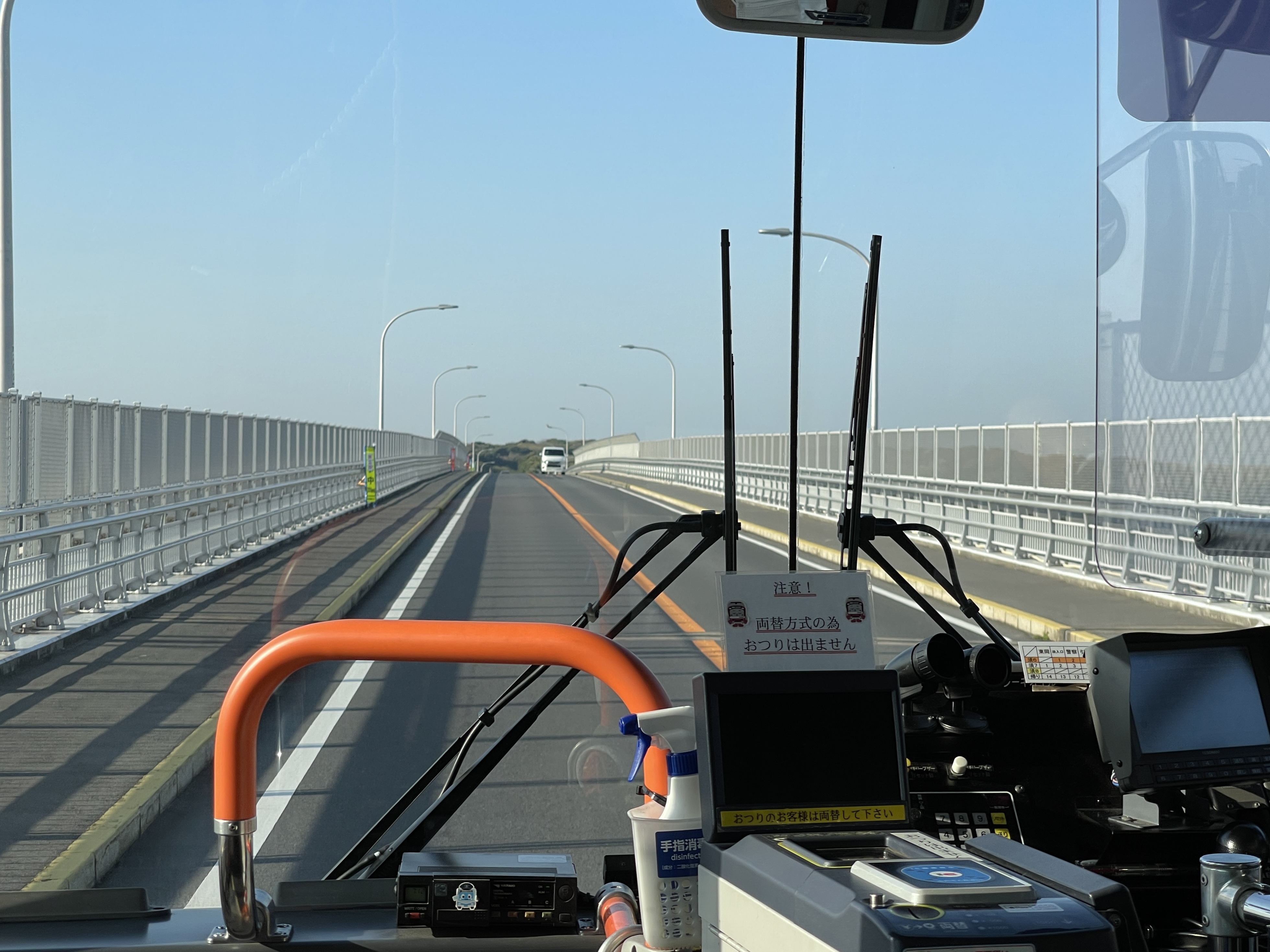 섬과 육지를 잇는 죠가시마 대교를 건너기 위해