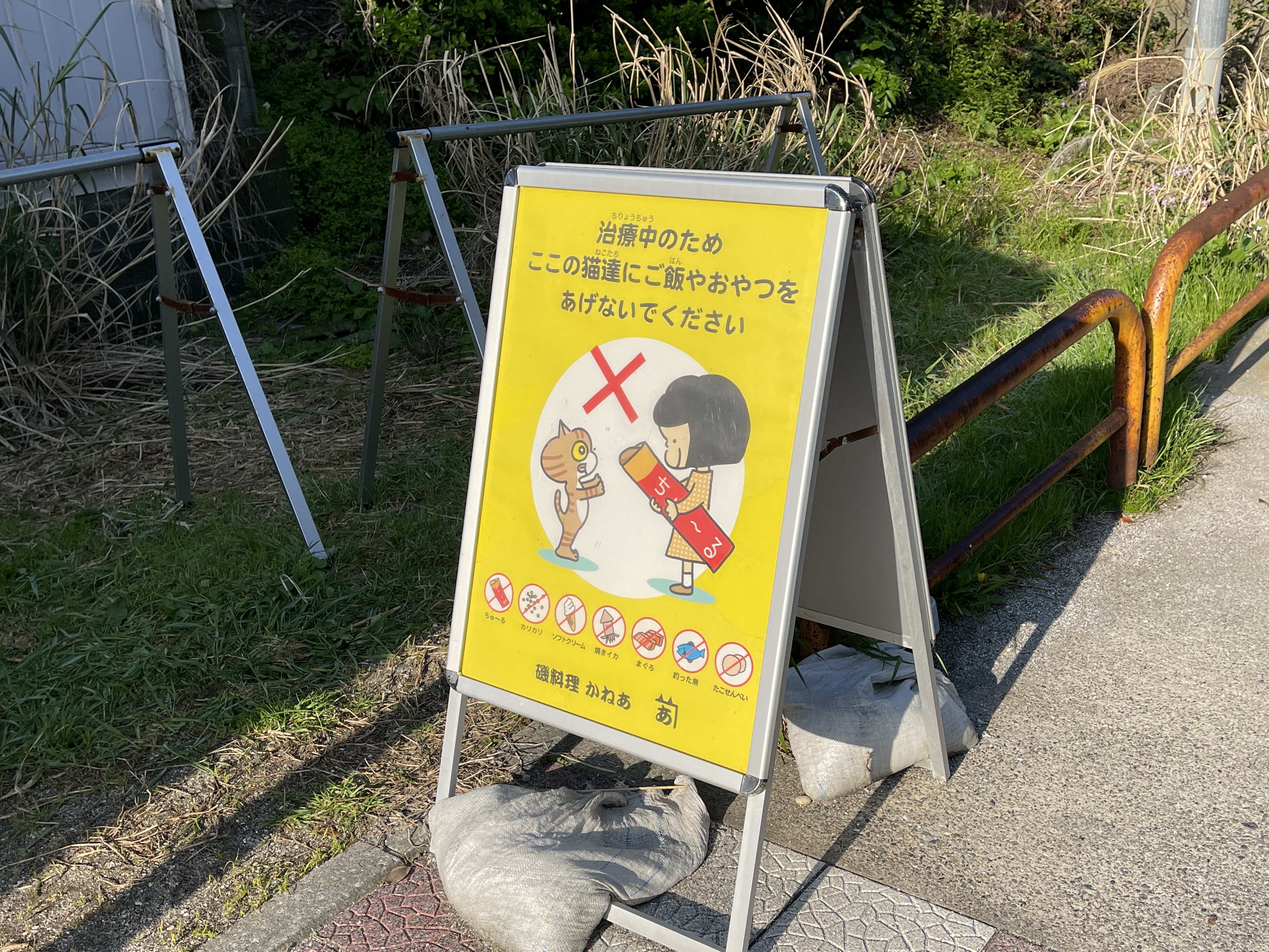 고양이에게 먹을 것을 주지 말라는 경고문이 보입니다.