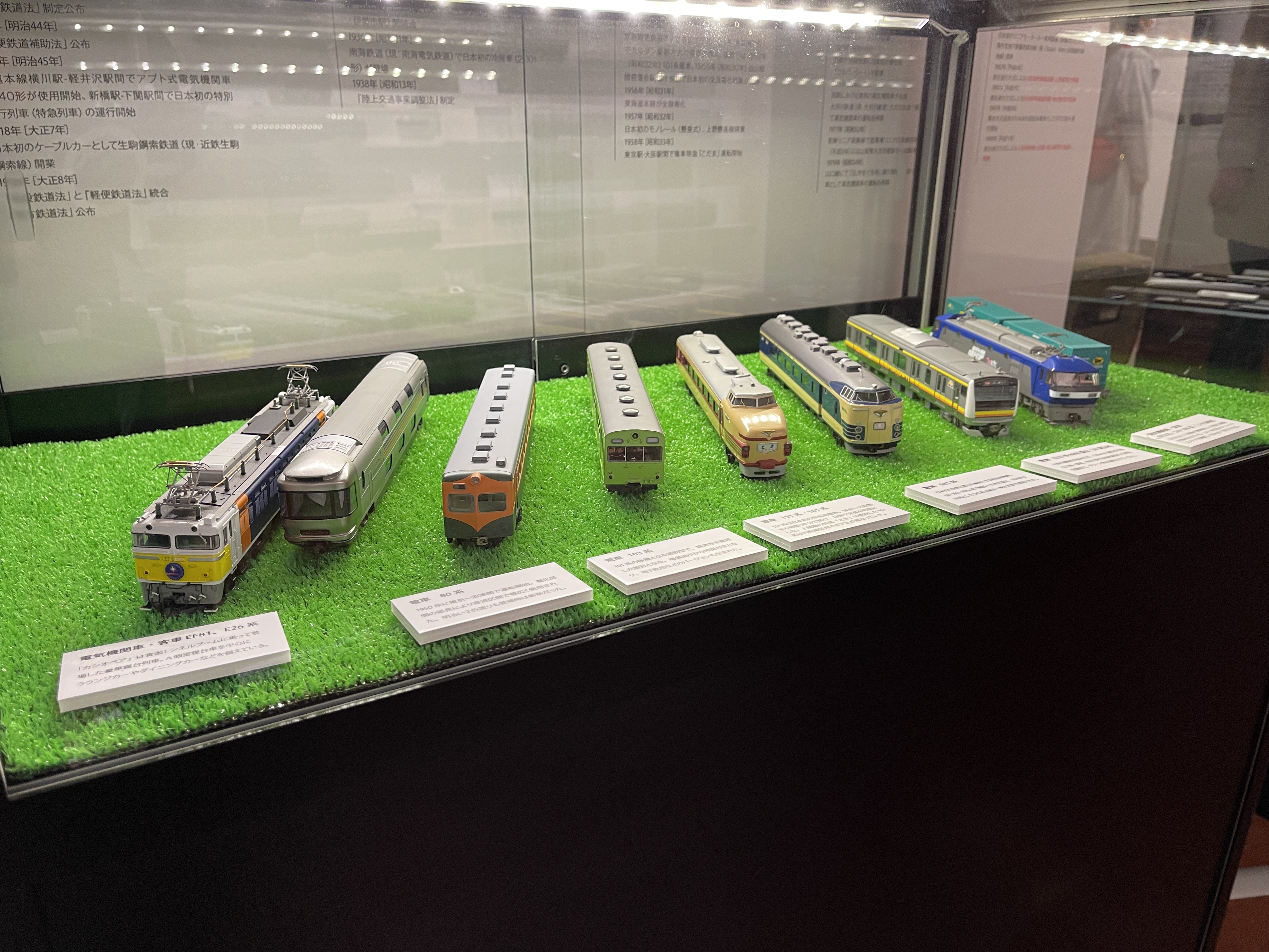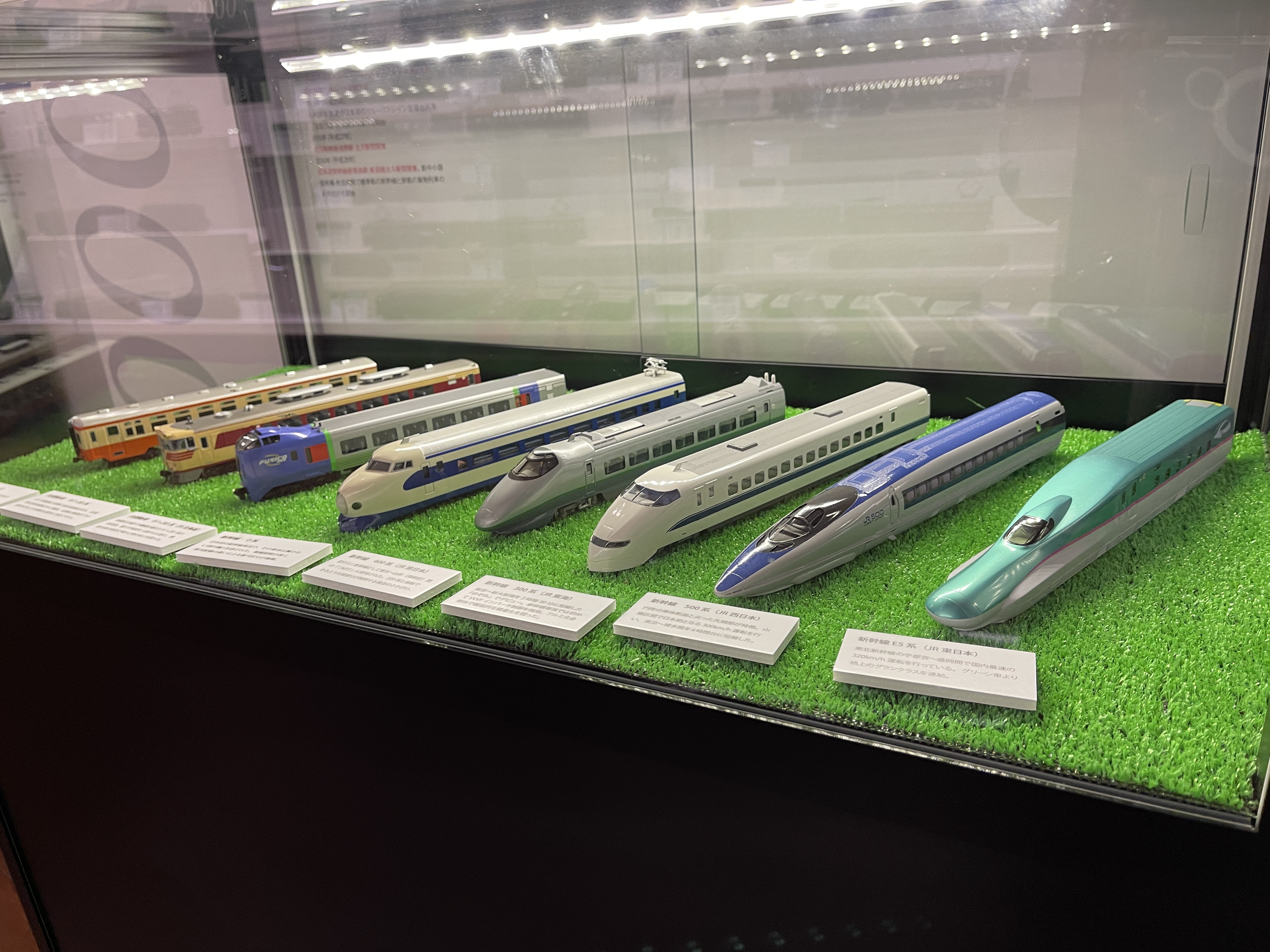 비교적 최신 열차인 신칸센 E5계 모형(사진에서 맨 오른쪽)도 있네요.