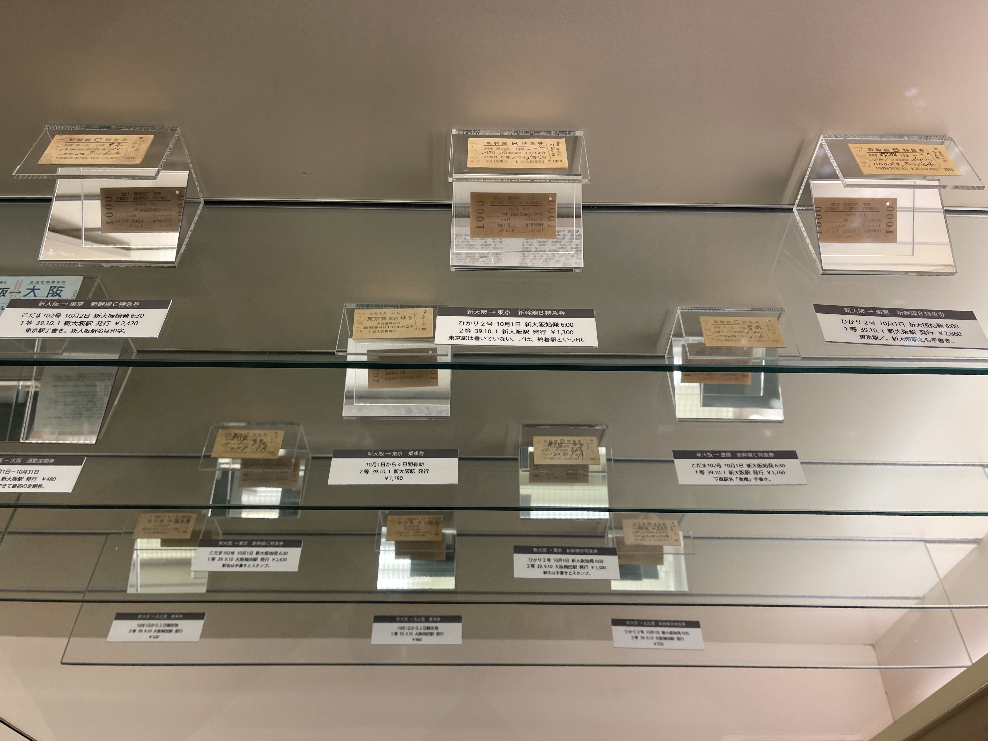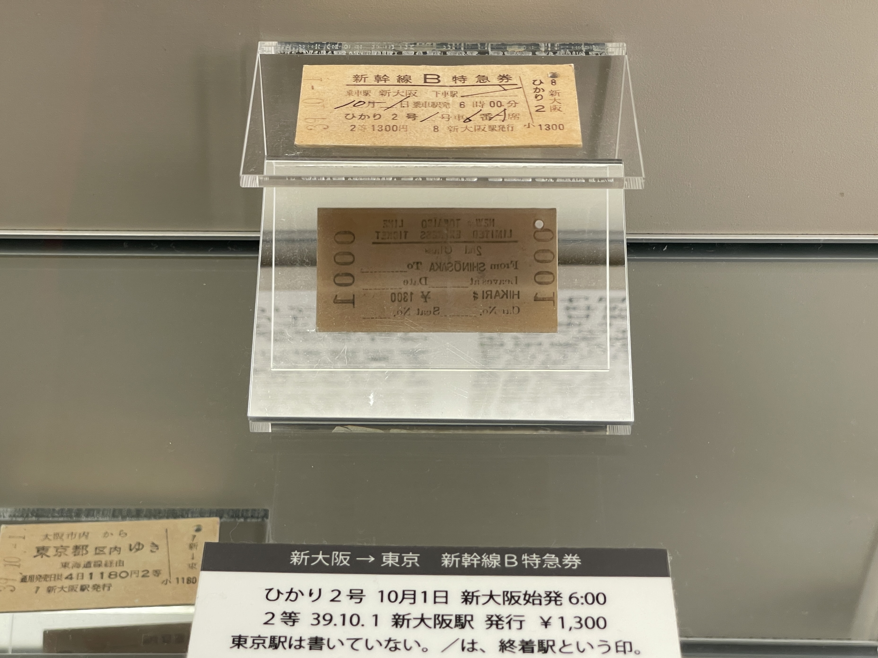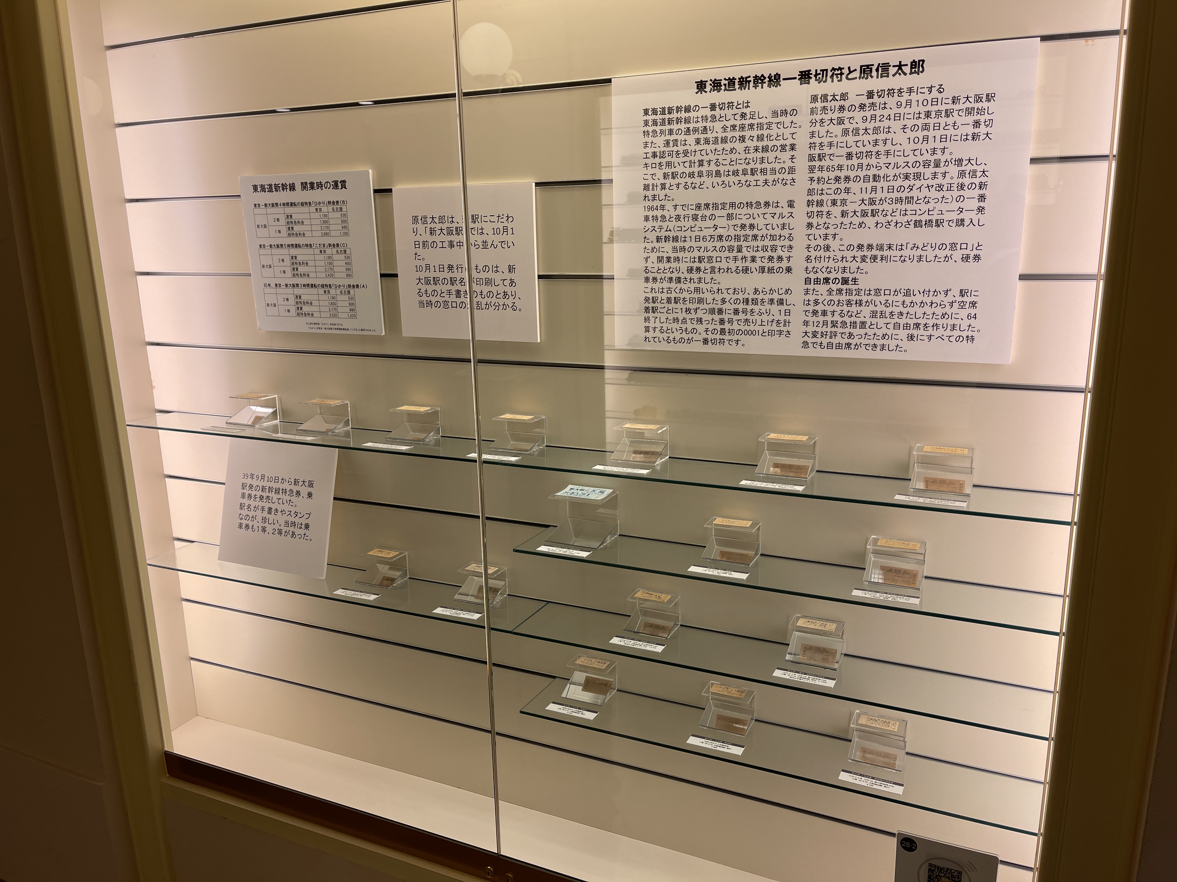 여기에는 토카이도 신칸센 개통일 날짜가 찍힌 1번 승차권이 있습니다.
