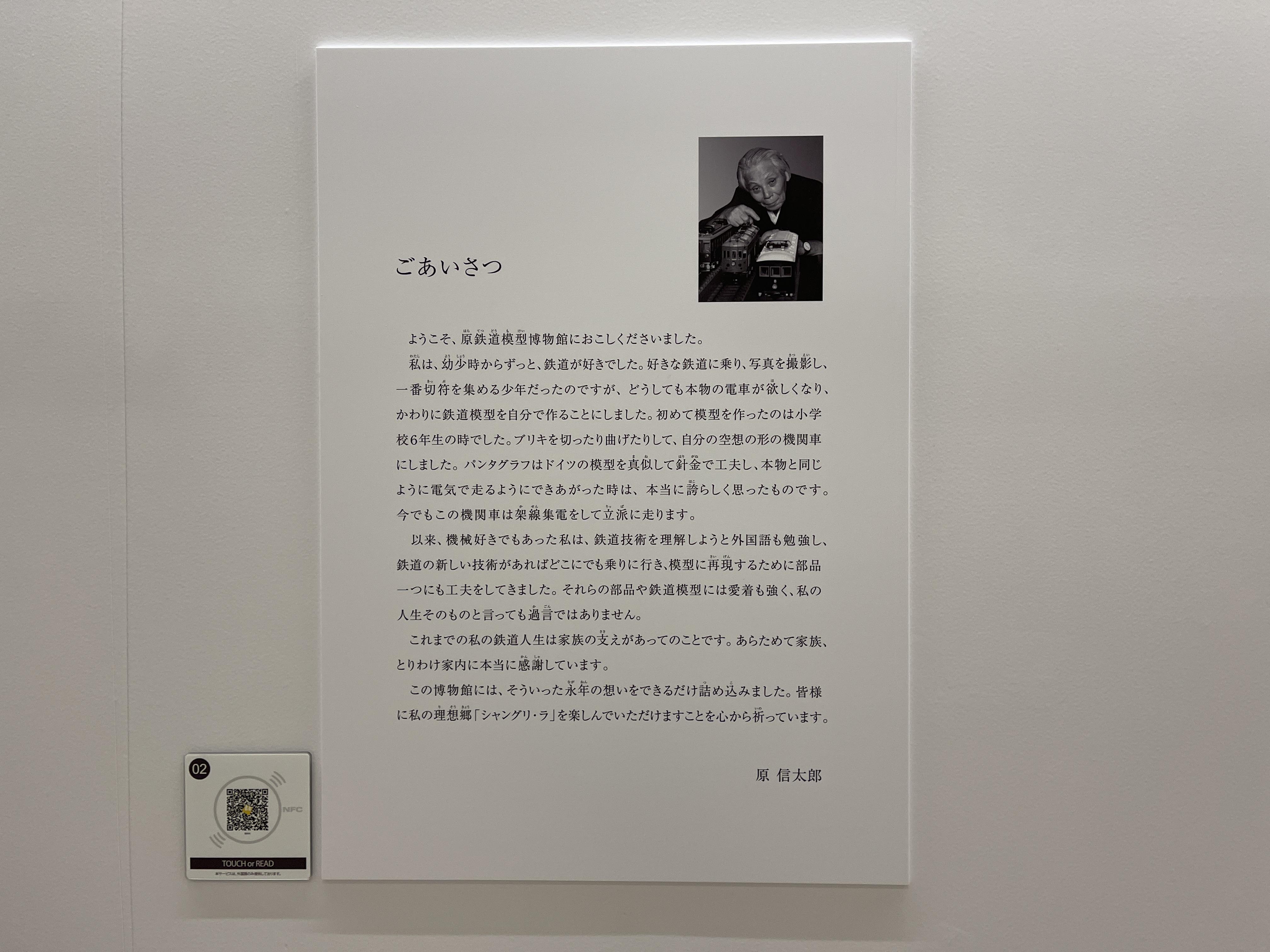 안으로 들어가면 가장 먼저 이곳을 세운 하라 노부타로의 인사말이 나오는데