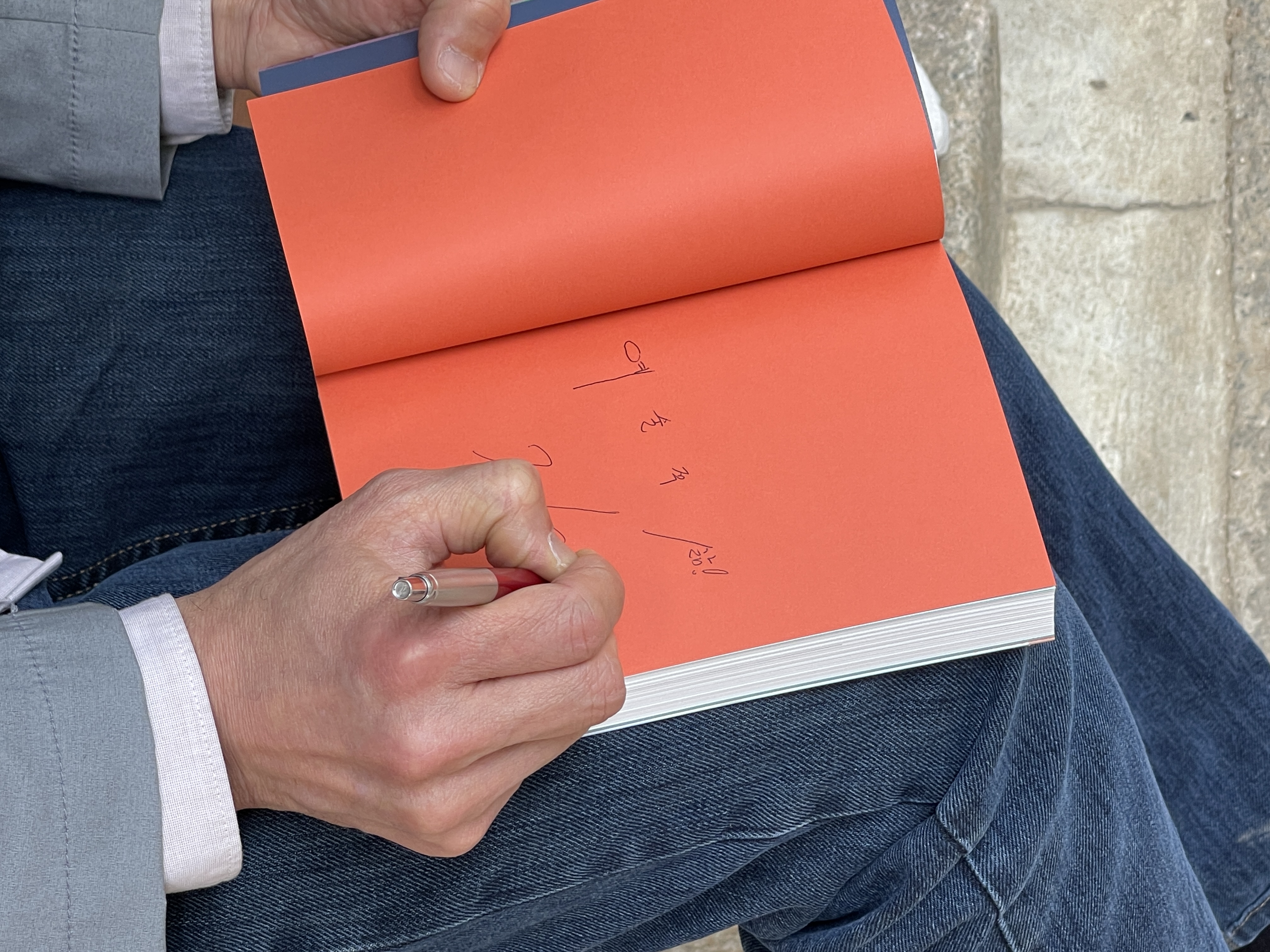 책을 펼처 작가 친필 사인을 받고
