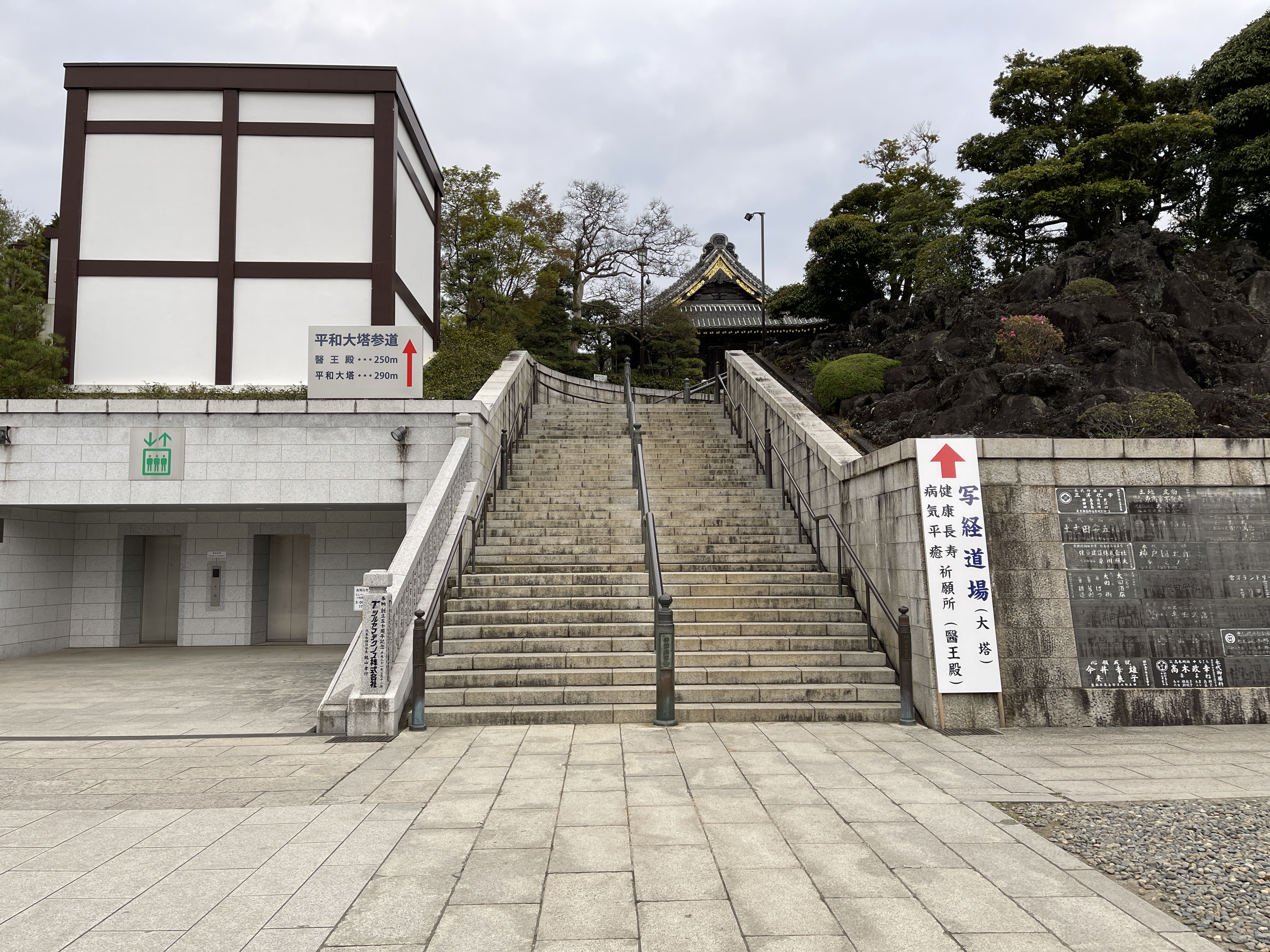 1984년에 지어 다른 건물과 확연히 다른 평화대탑(平和大塔, 헤이와다이토)까지 오니