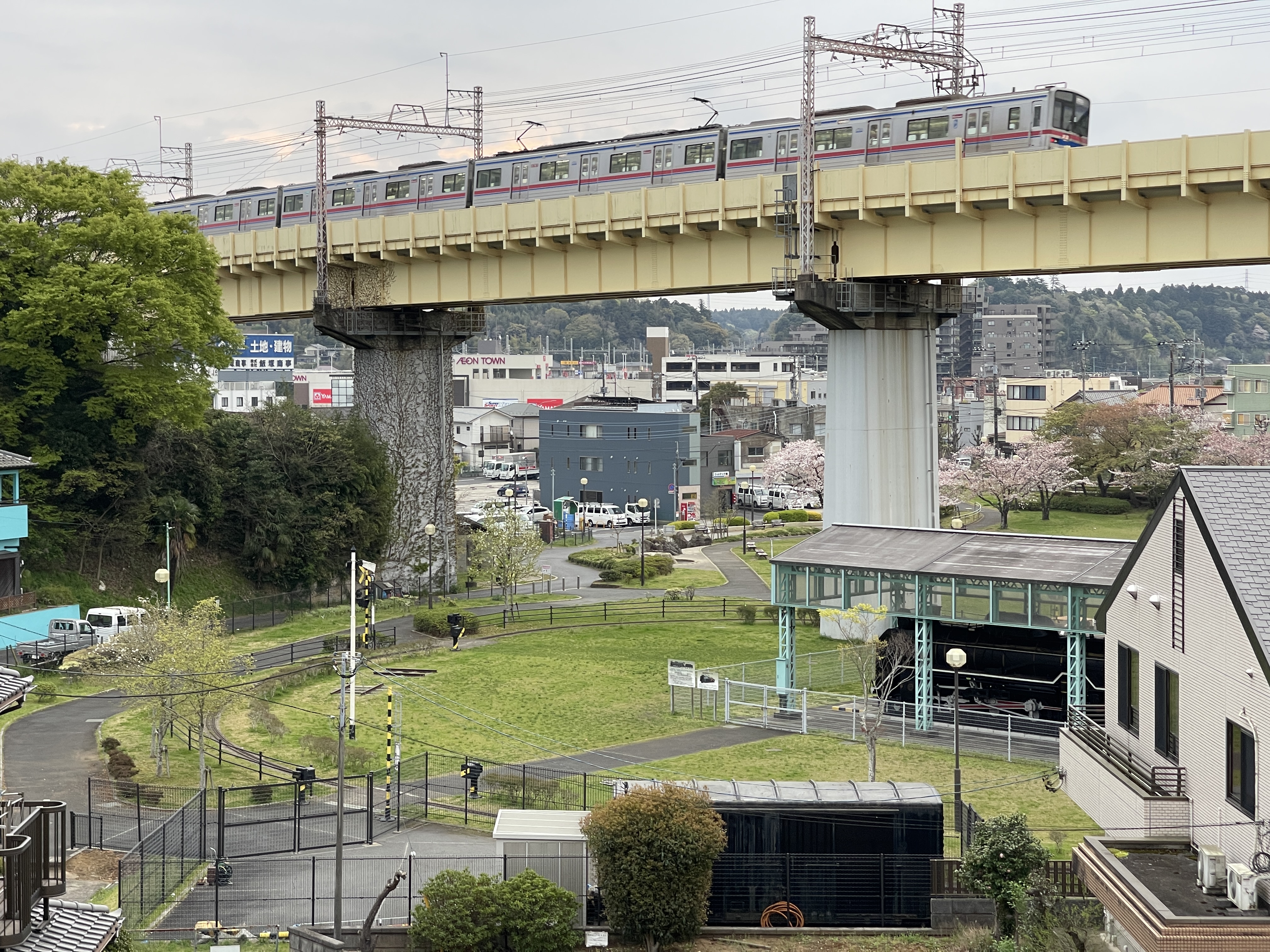 증기기관차를 놓아둔 공원 위로 공항으로 가는 전철이 달리는 모습을 보기도 하고