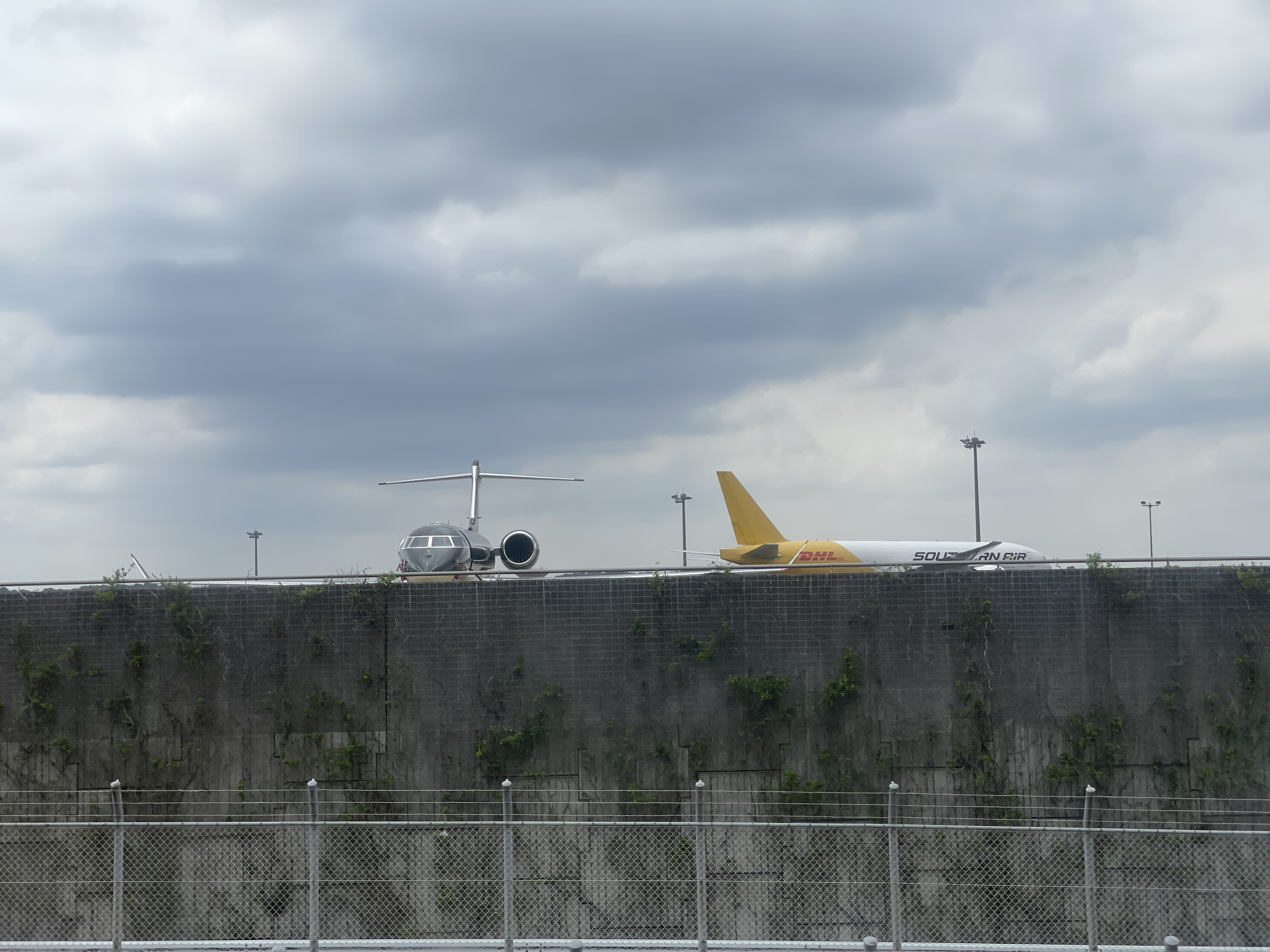 차창 밖으로 보이는 나리타 공항 주기장을 간단히 찍으면서