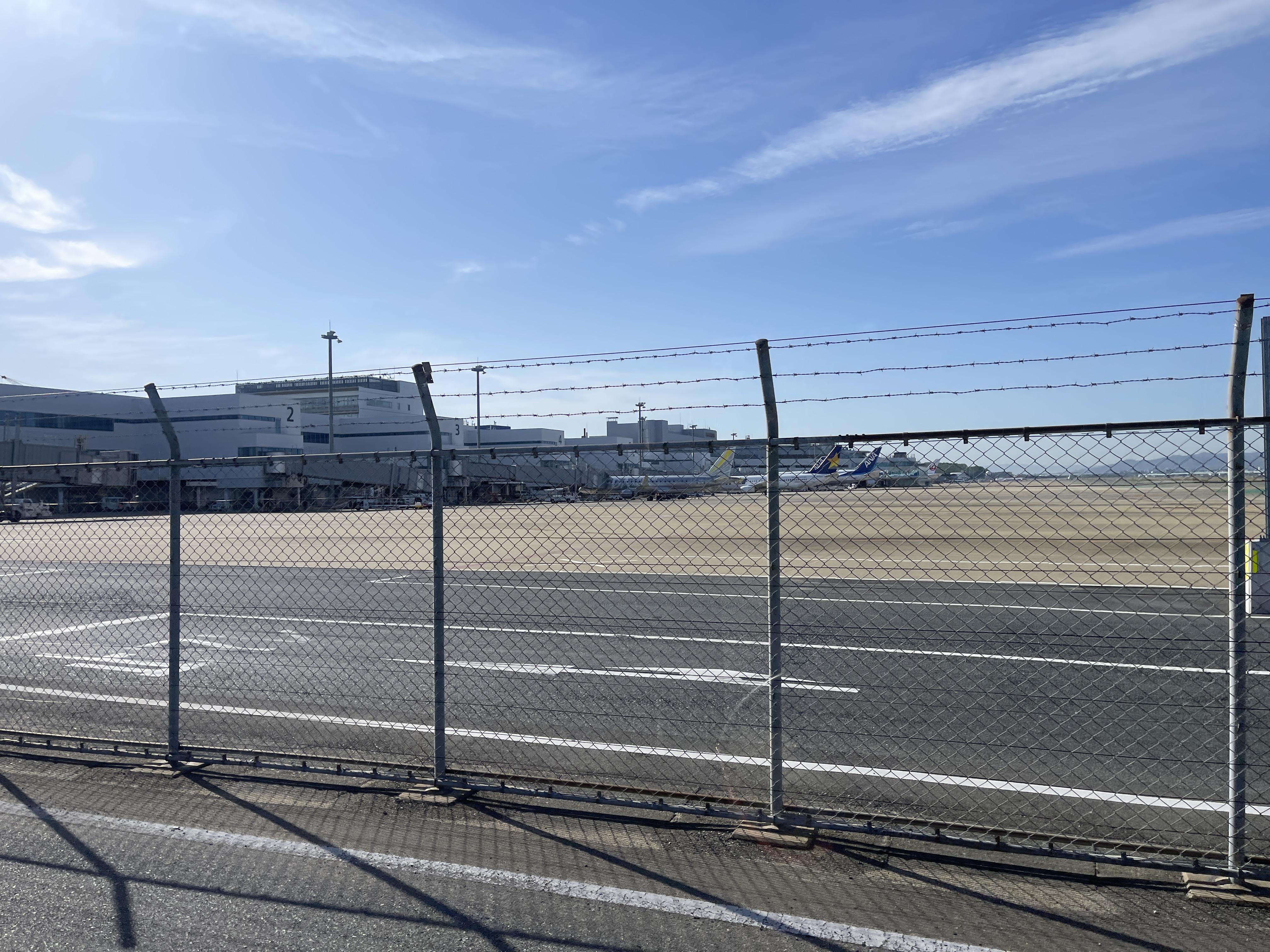 부산에서 온 제주항공 비행기가 착륙하는 활주로 옆을 지나