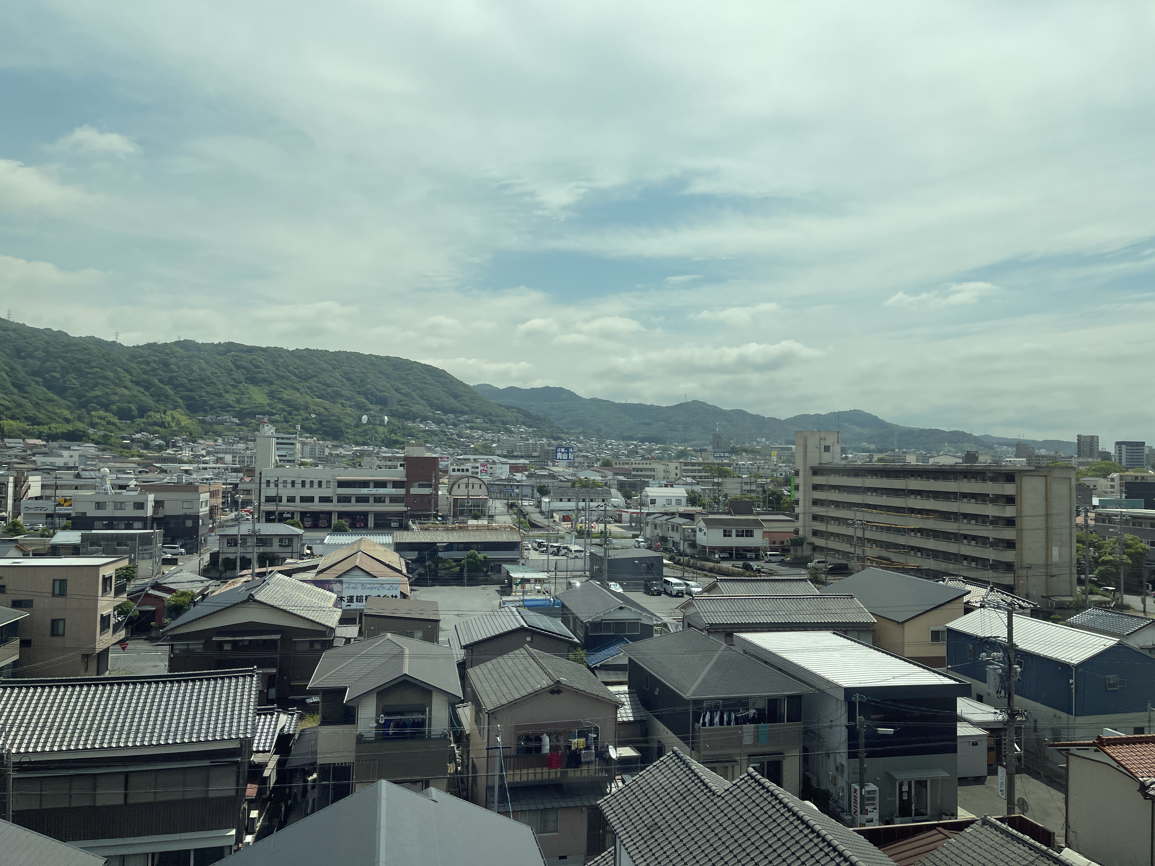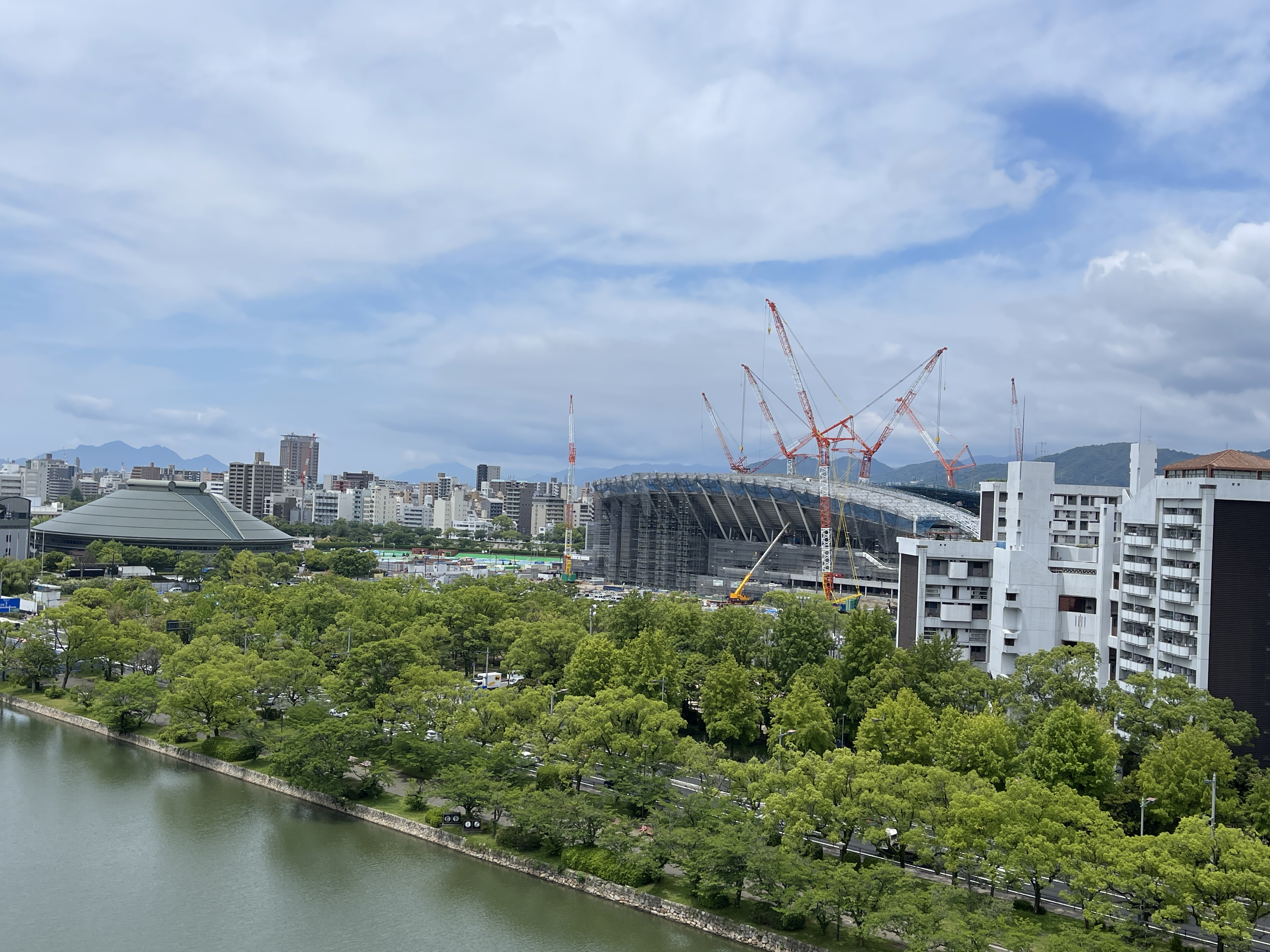 슛케이엔과 히로시마역이 있는 방향은 온갖 건물에 가려서 보이지 않고