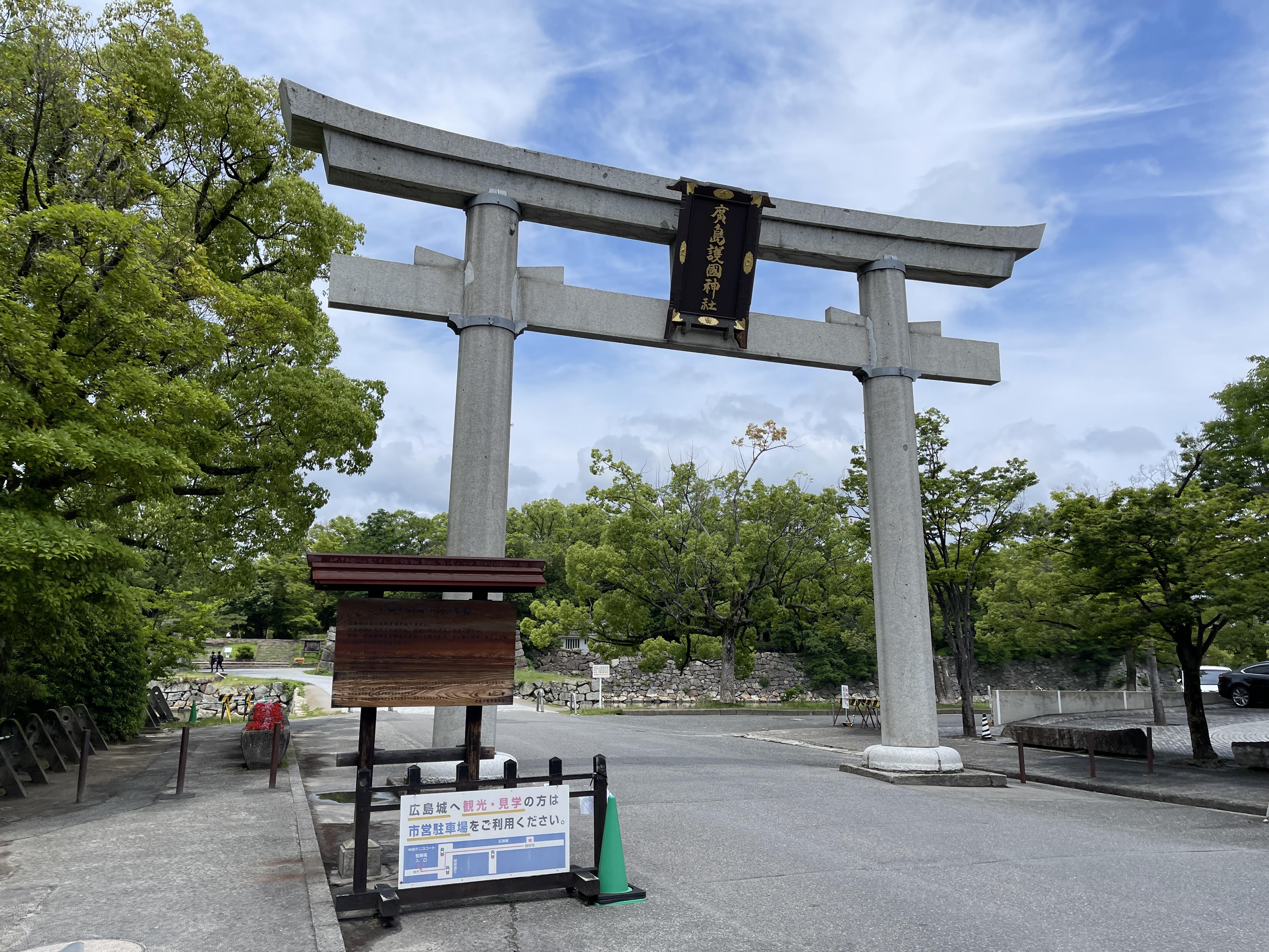 히로시마성 부지에 신사가 있어서 토리이 아래를 지나