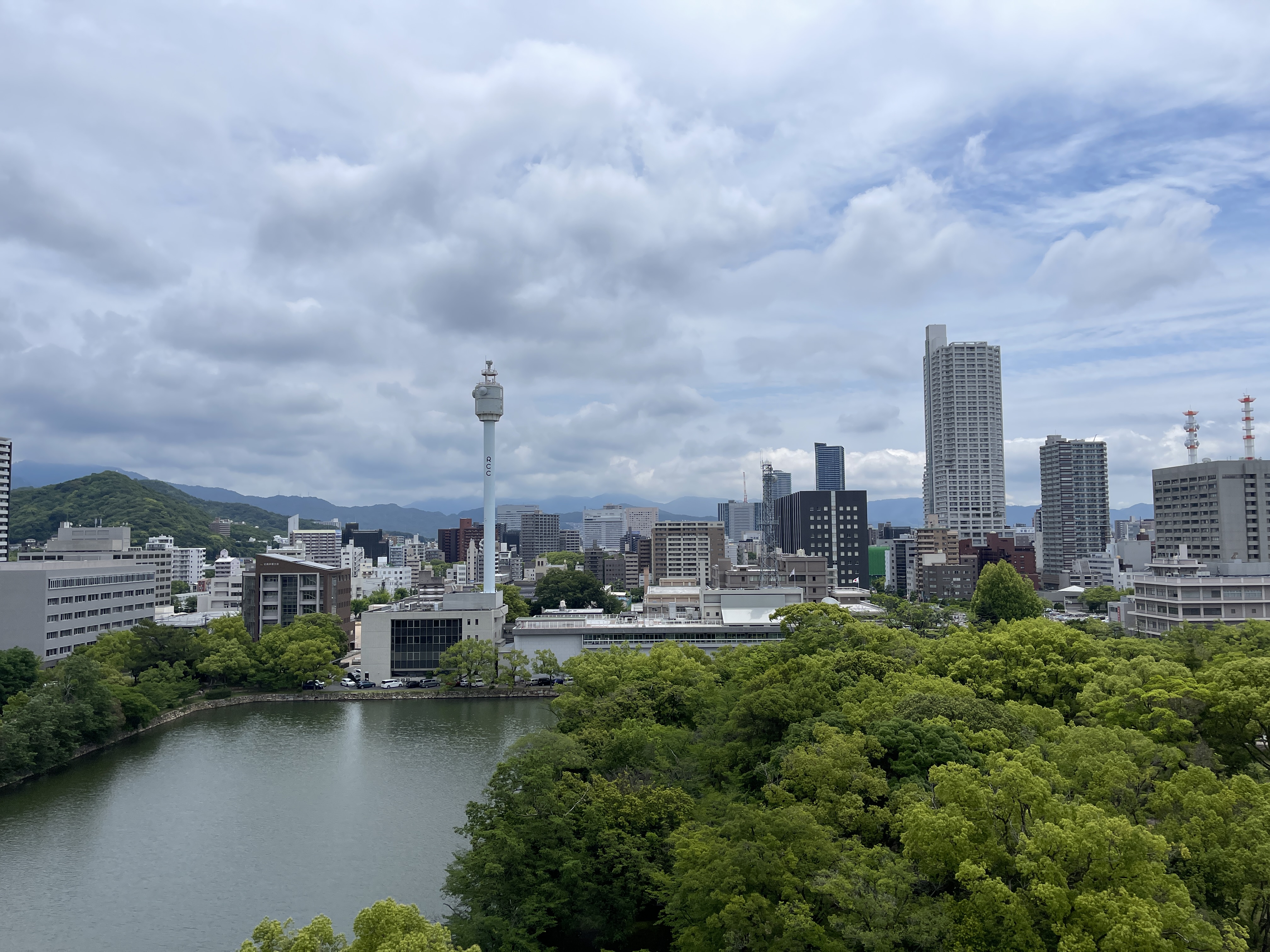 꼭대기로 올라오면 히로시마성 주변 경치를 볼 수 있는데