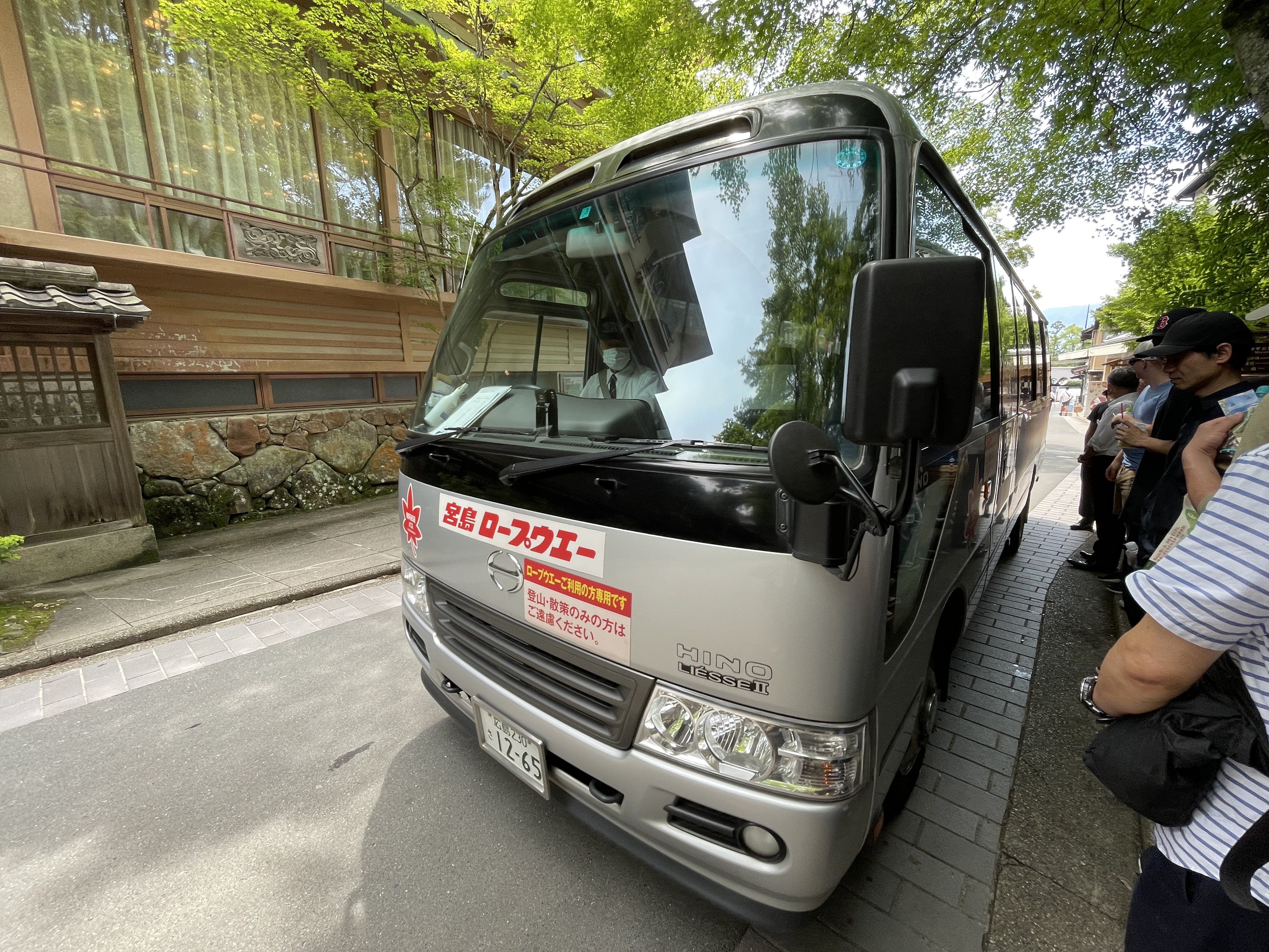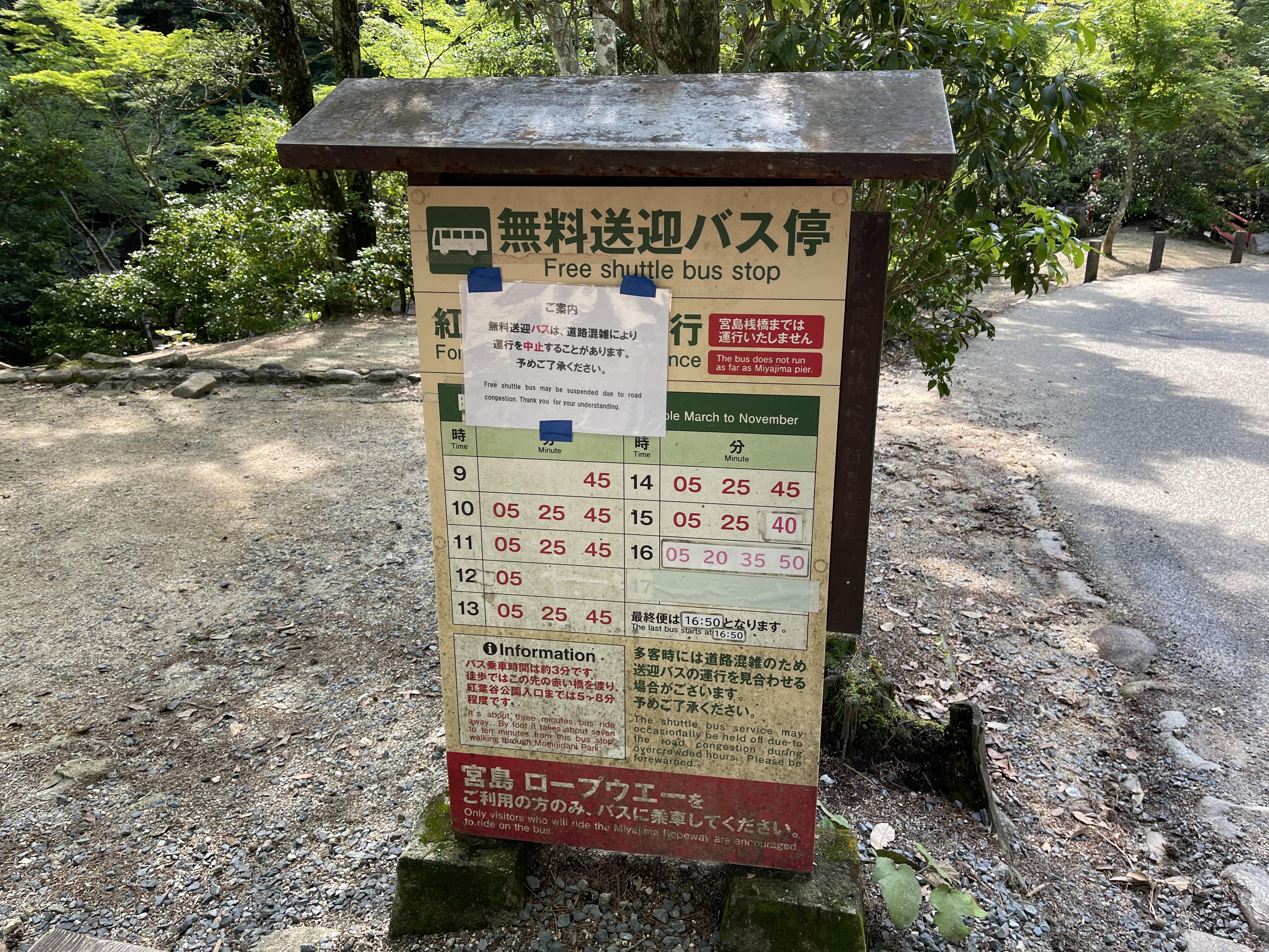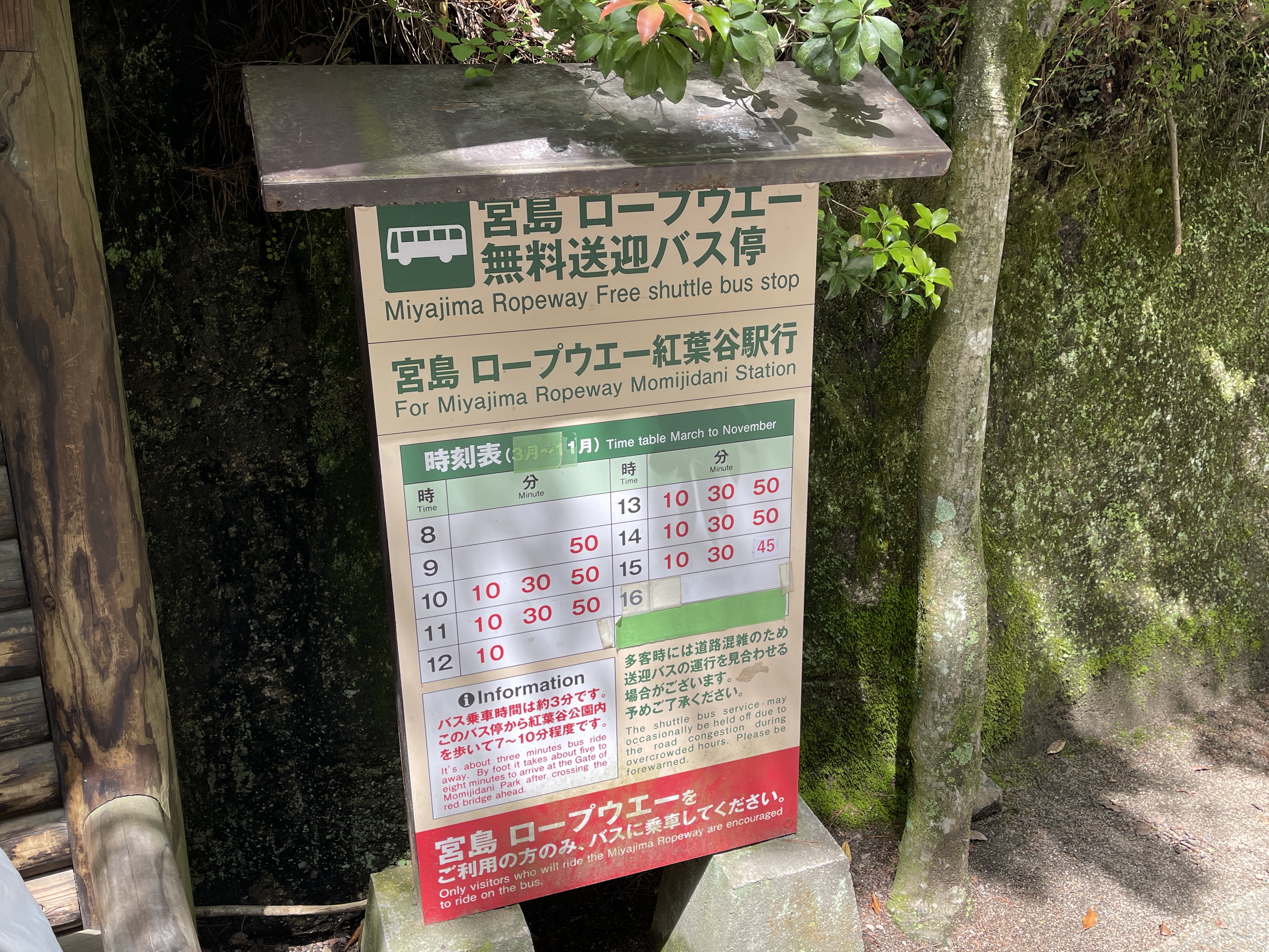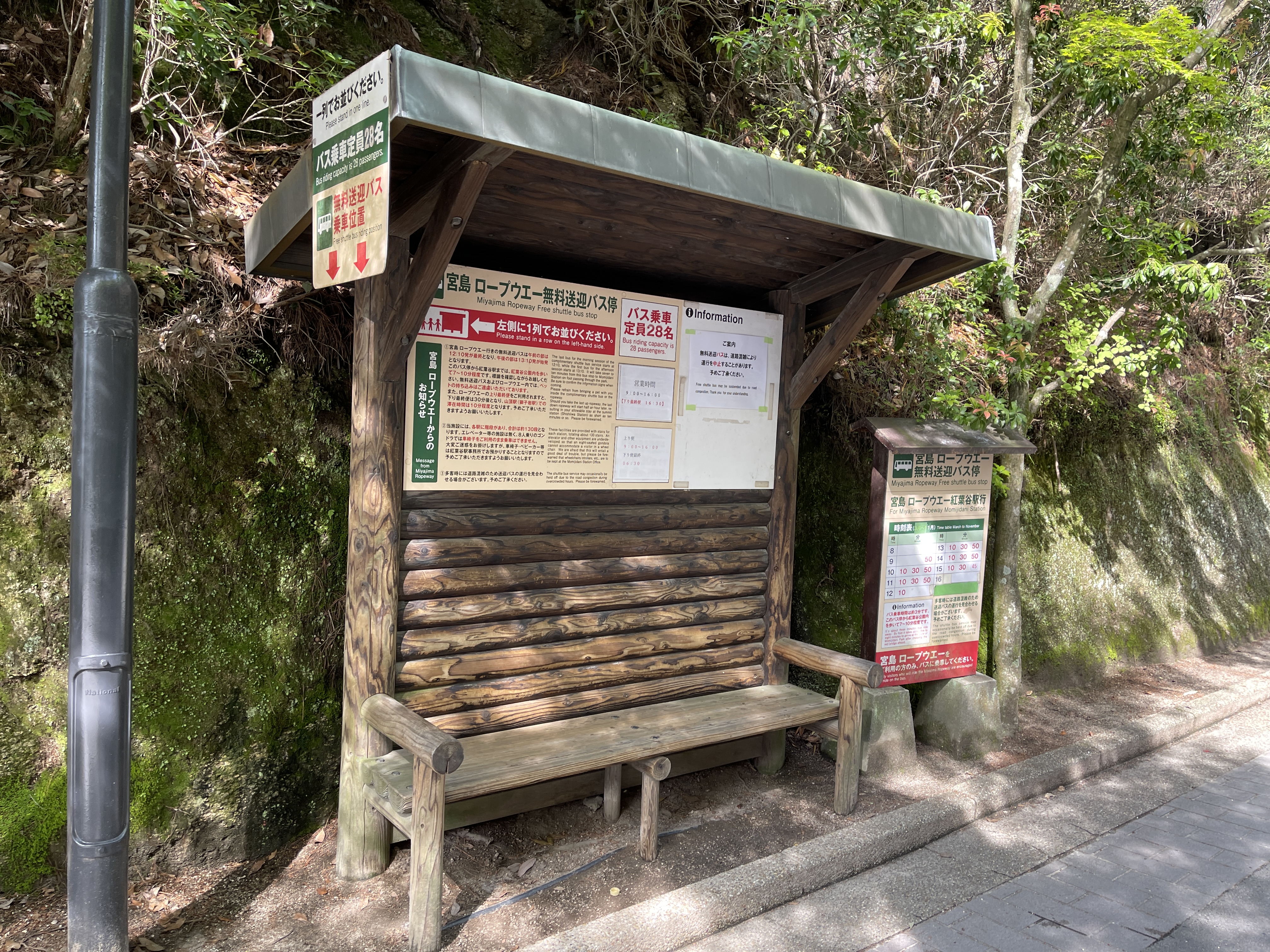 알고 보니 다리로 가기 위해 지나친 이 버스 정류장에서 미야지마 로프웨이로 가는 버스를 탑니다.