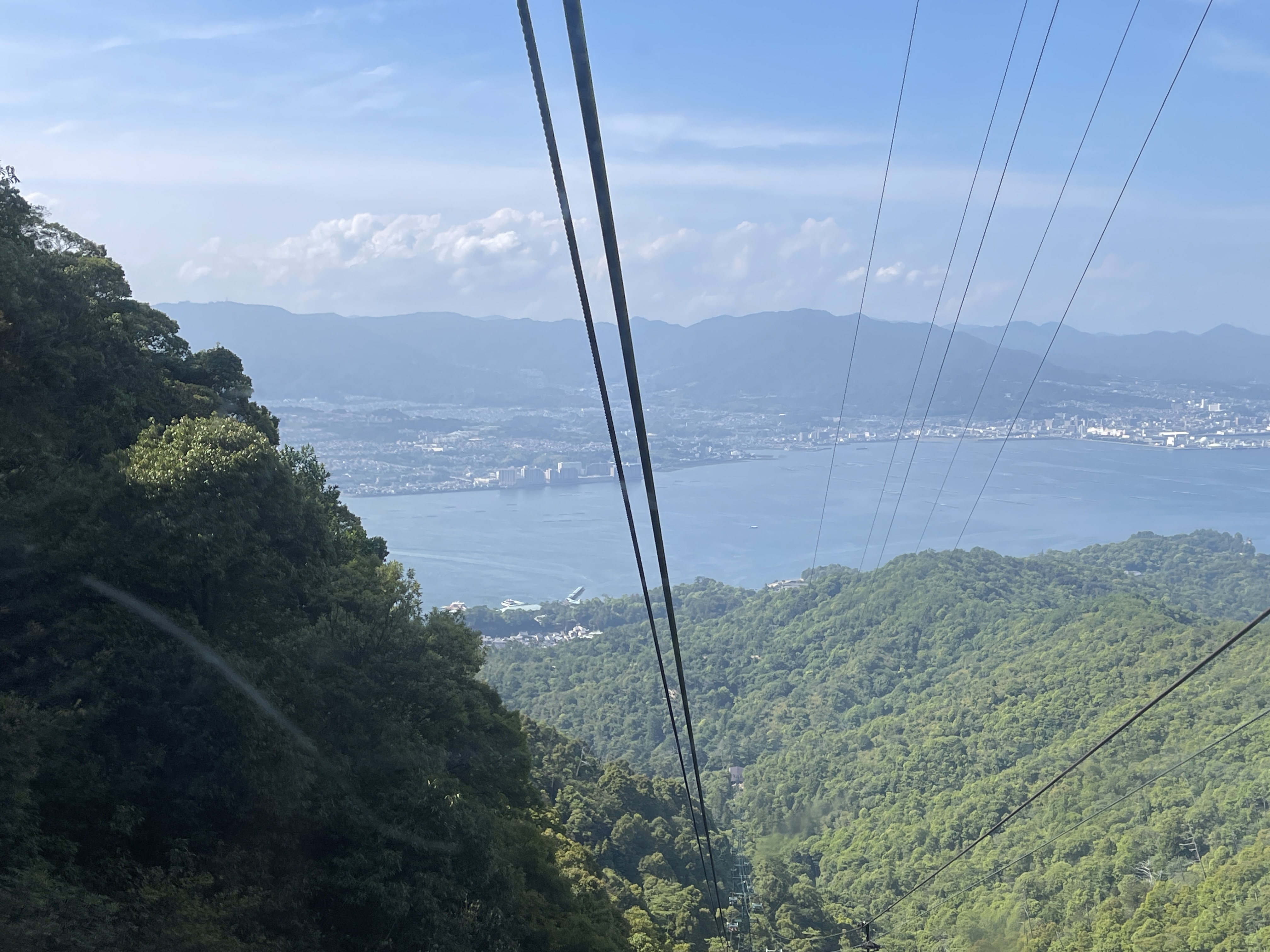 워낙 길이 좁아 고생고생하며 차를 돌려 미야지마 로프웨이로 올라갑니다.