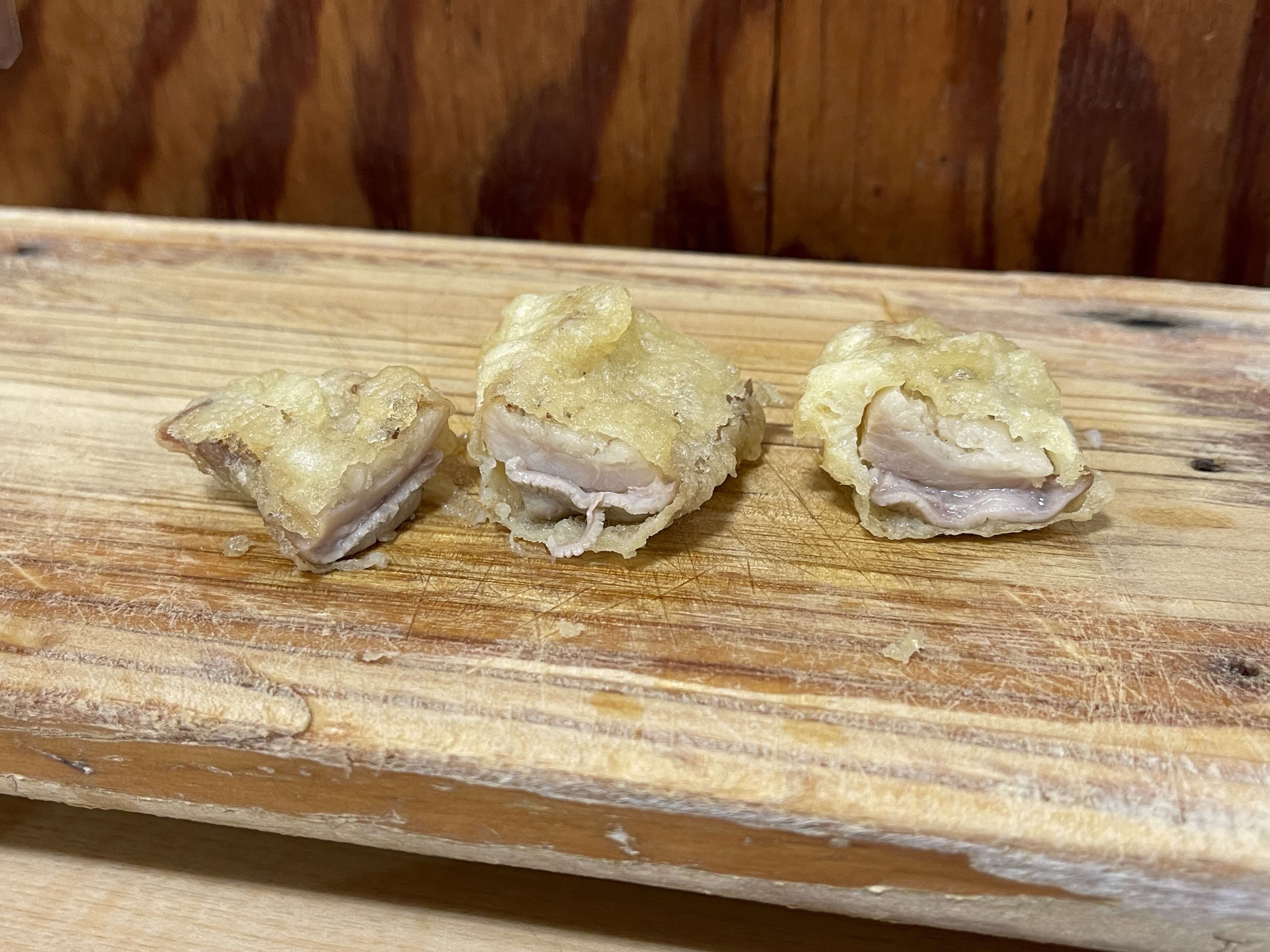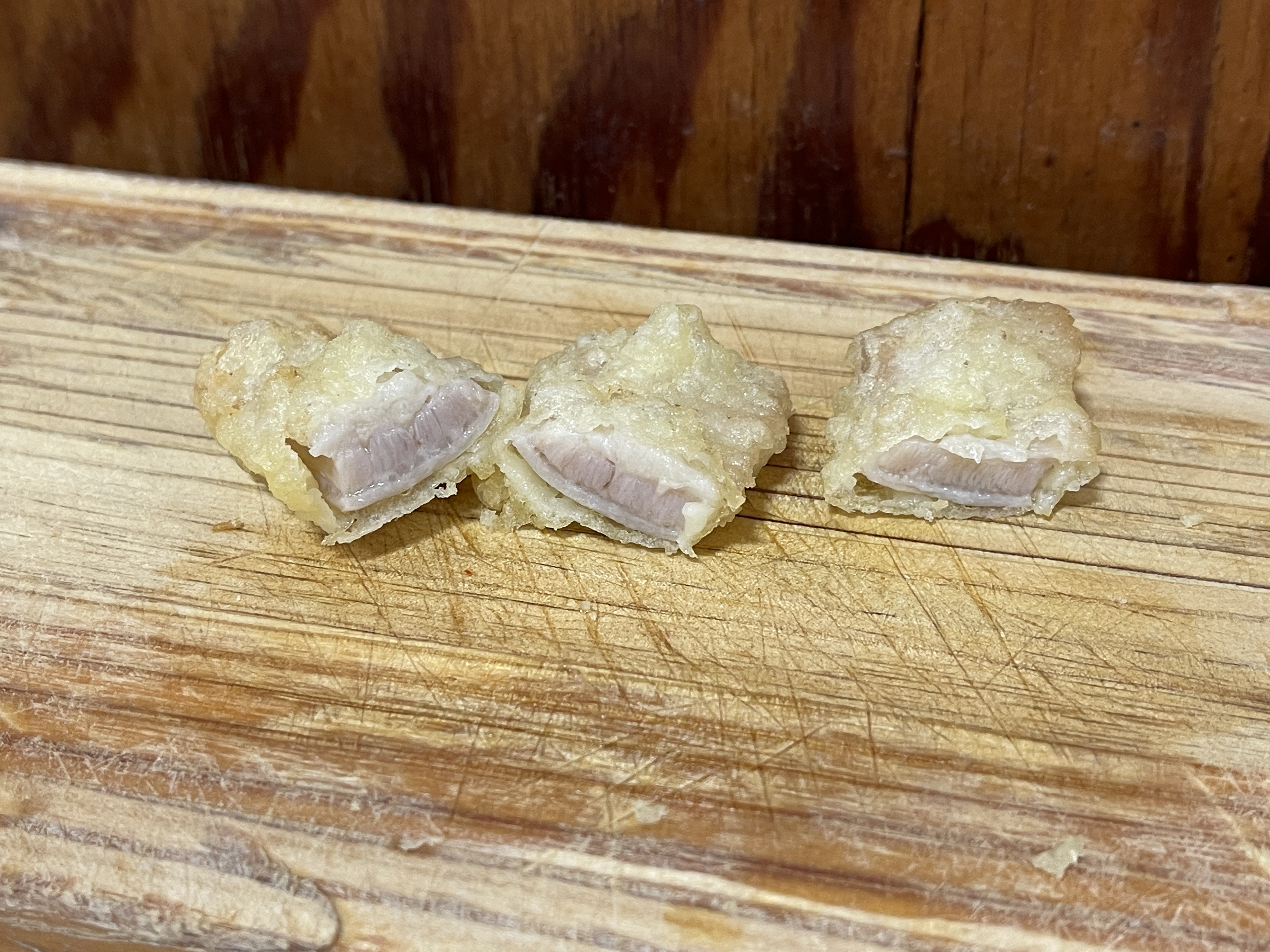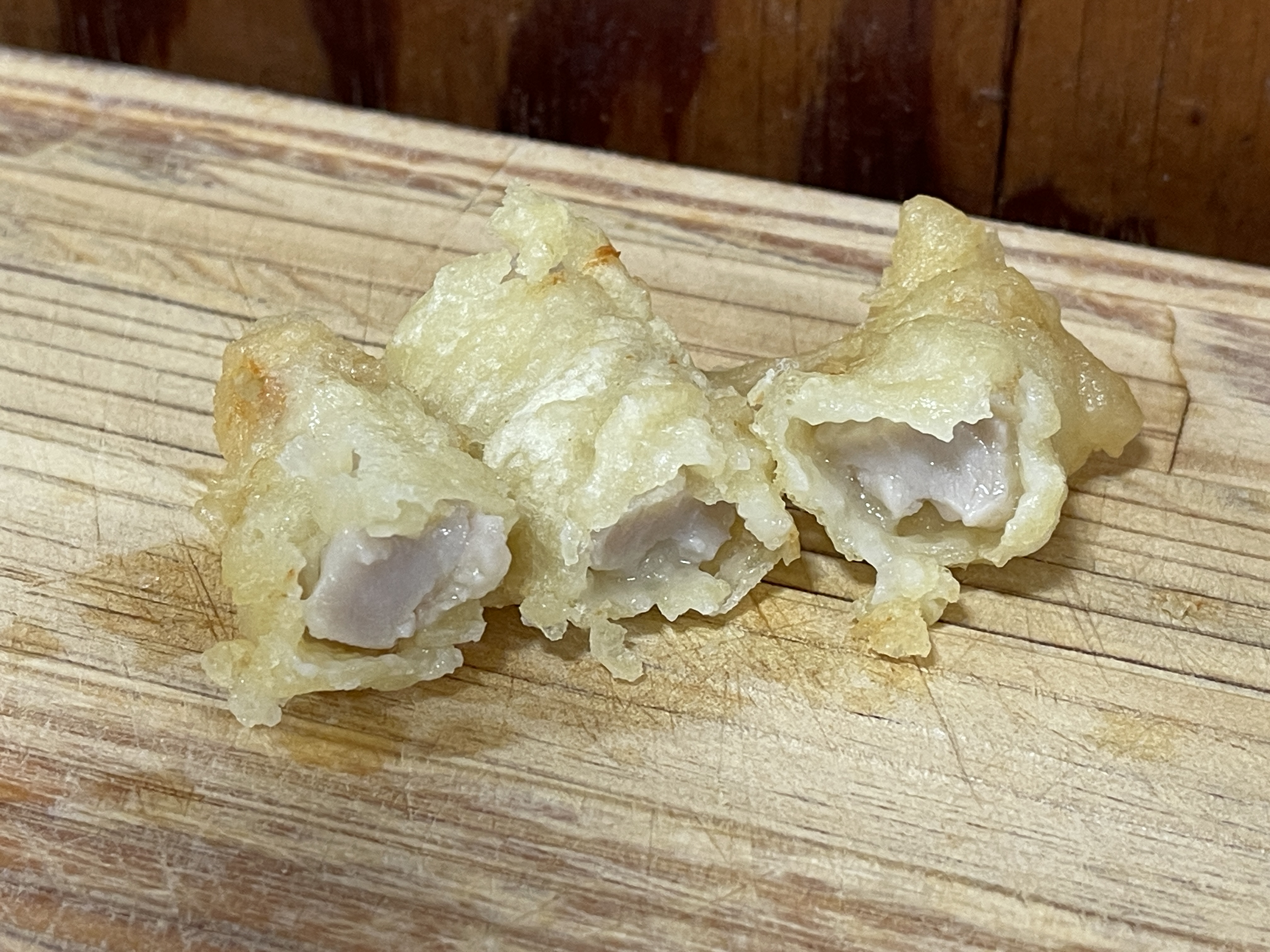 바삭한 튀김옷 속에 있는 탄력 넘치는 고기가 참 맛있습니다.