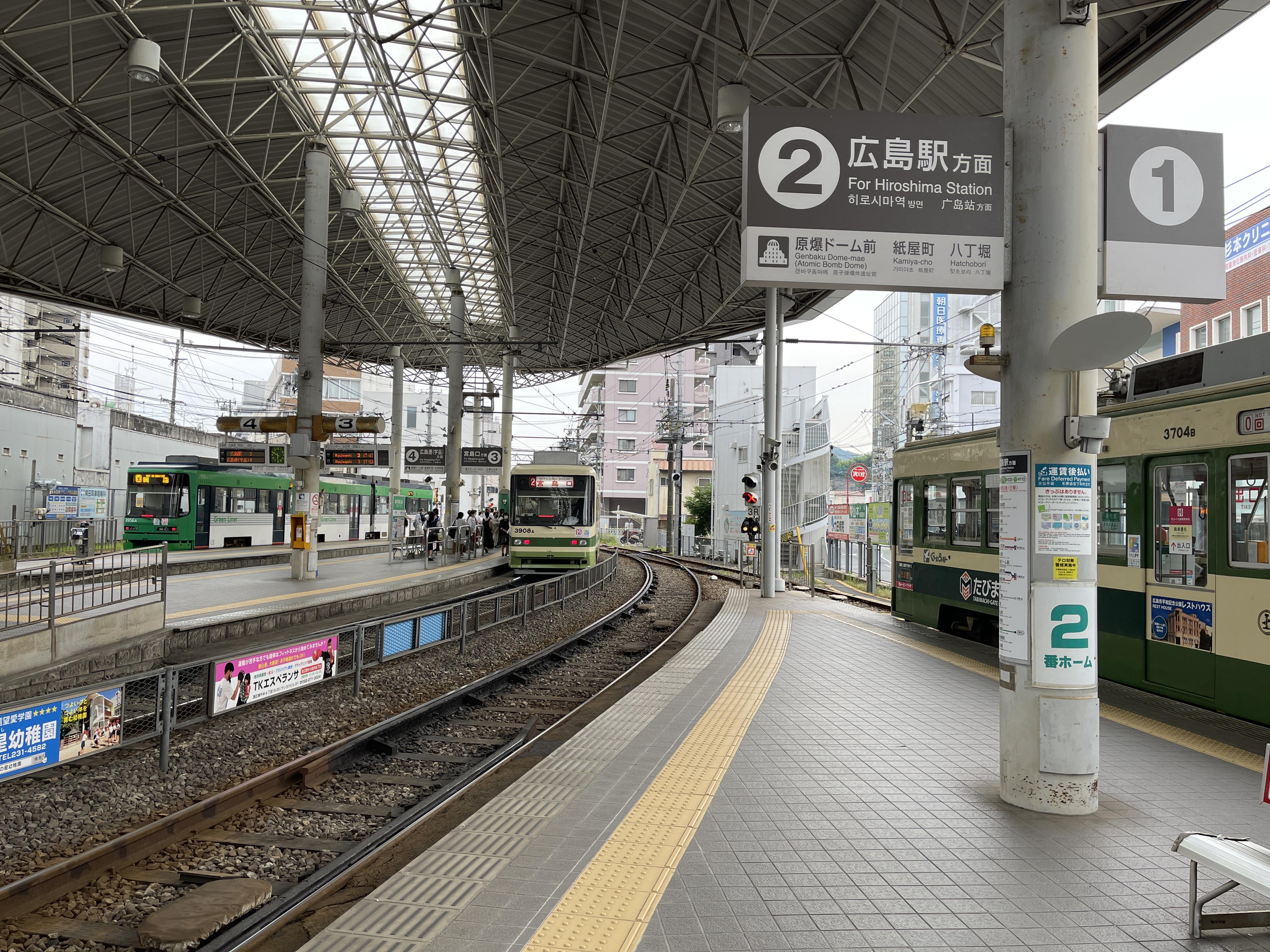 미야지마구치역에서 히로시마 전철 열차를 타고 갈까 하는 생각이 잠깐 들었는데