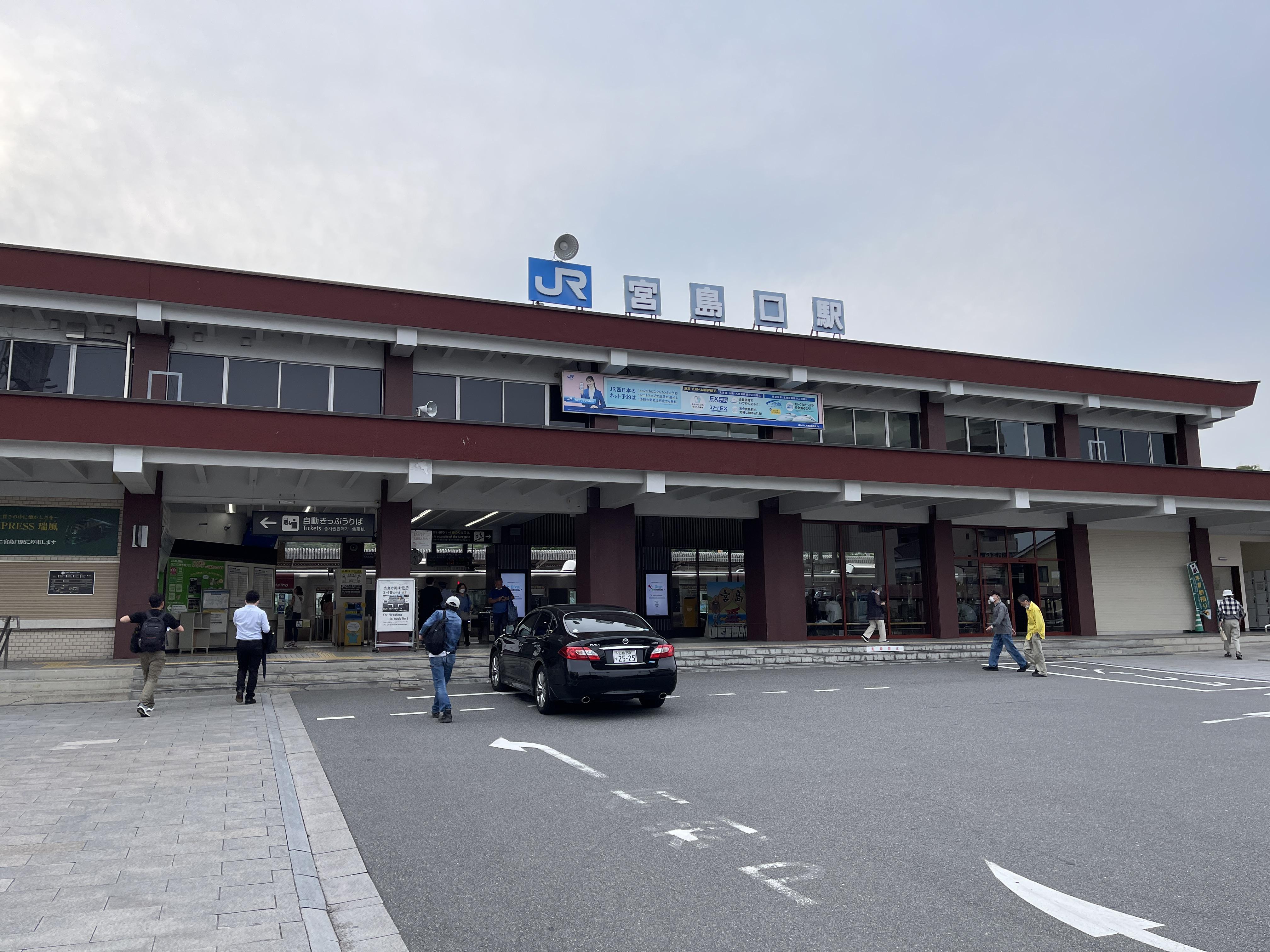 JR 미야지마구치역으로 가서 빨간 열차를 탑니다.