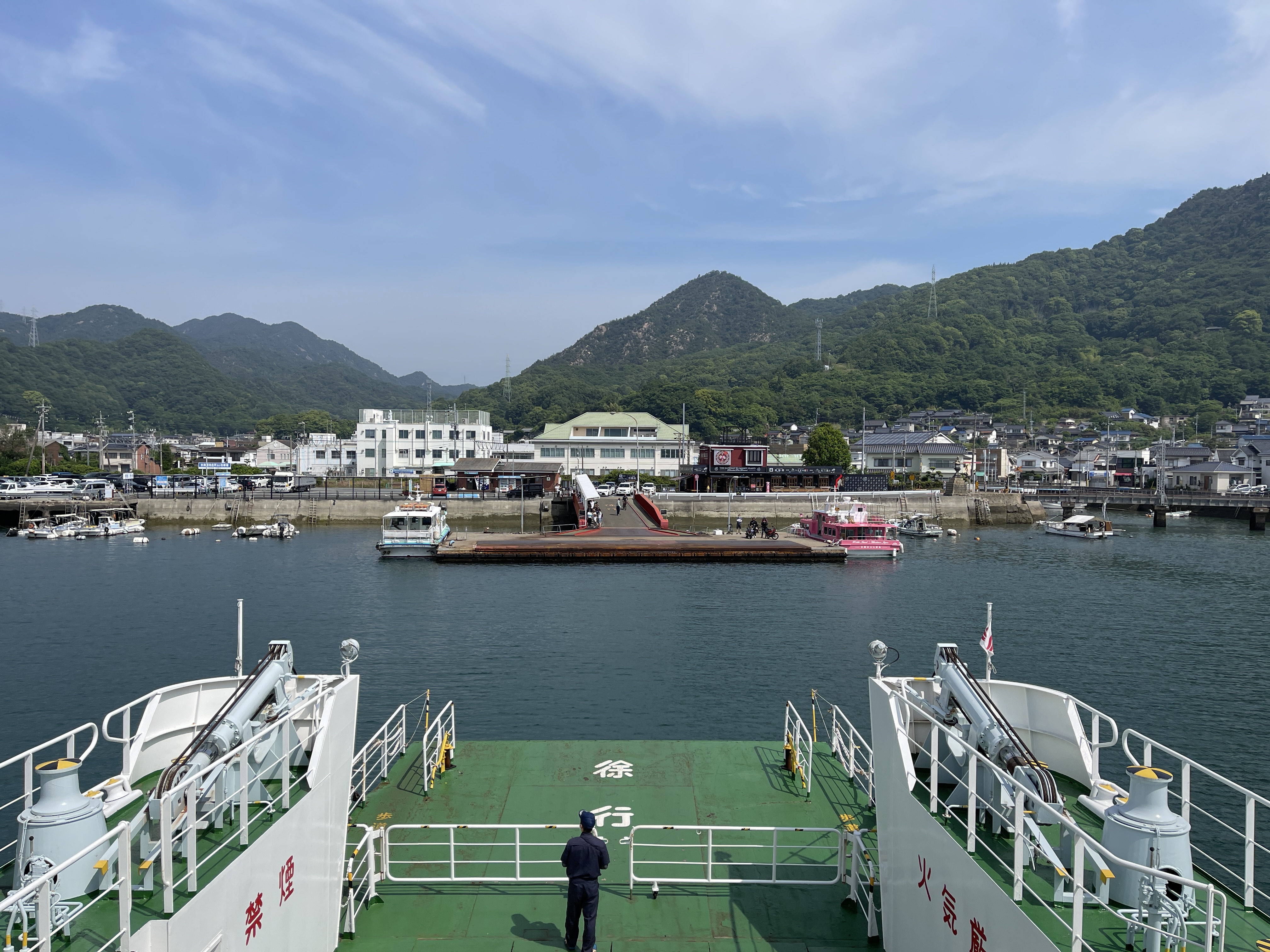 오쿠노시마를 떠나는 배를 본 뒤 잠시 열차에서 휴식.