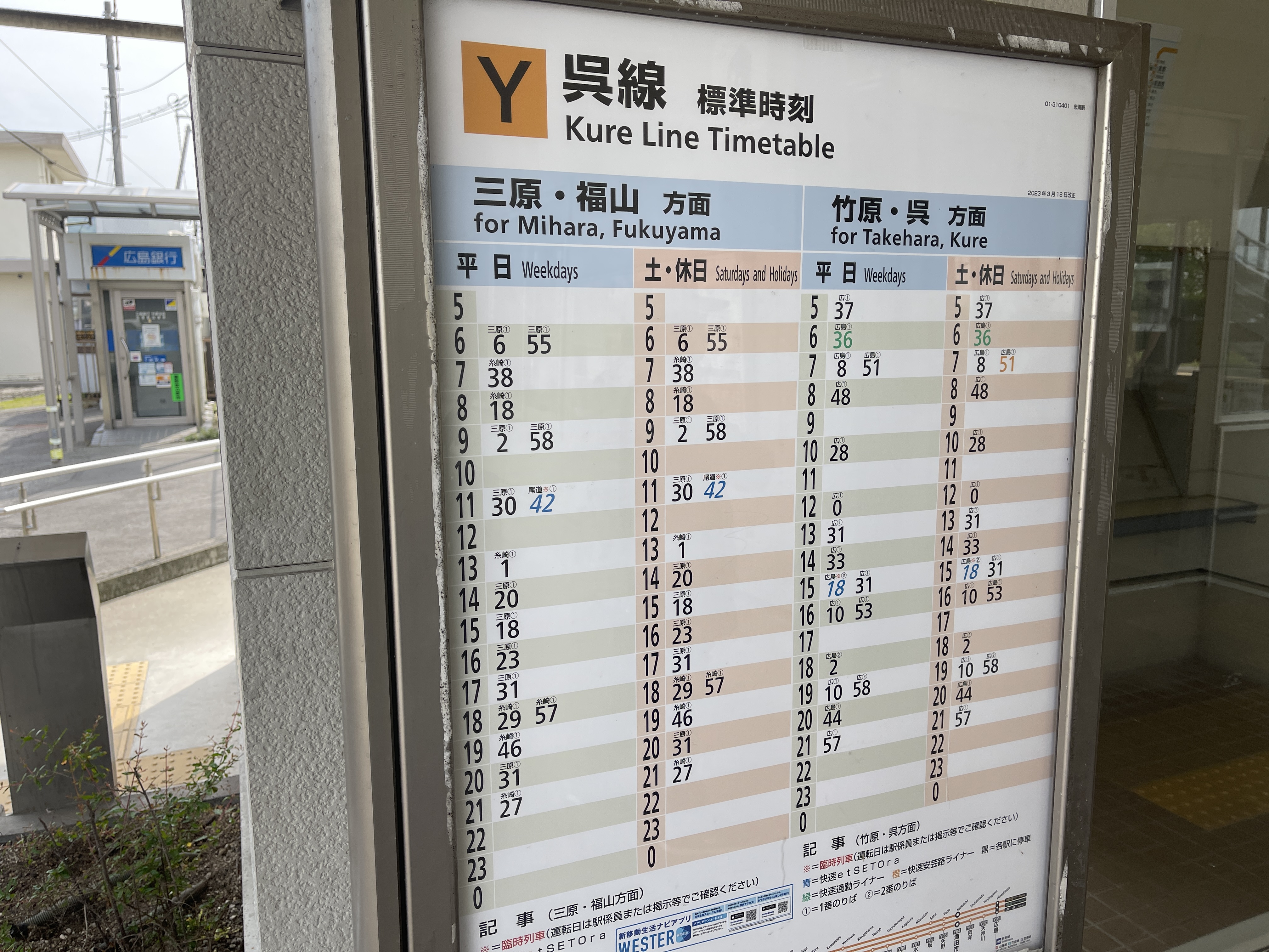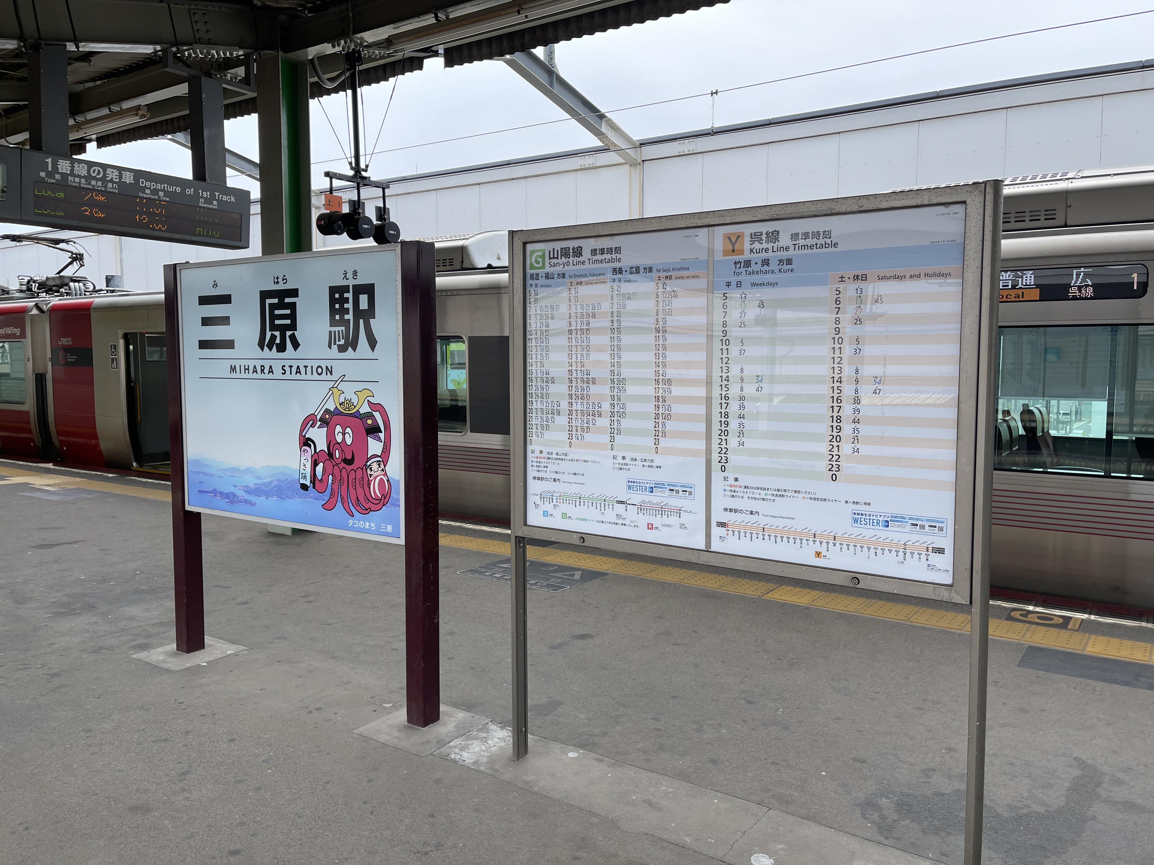 여기서 쿠레선 열차를 타고 미하라역으로 다시 가야 하는데