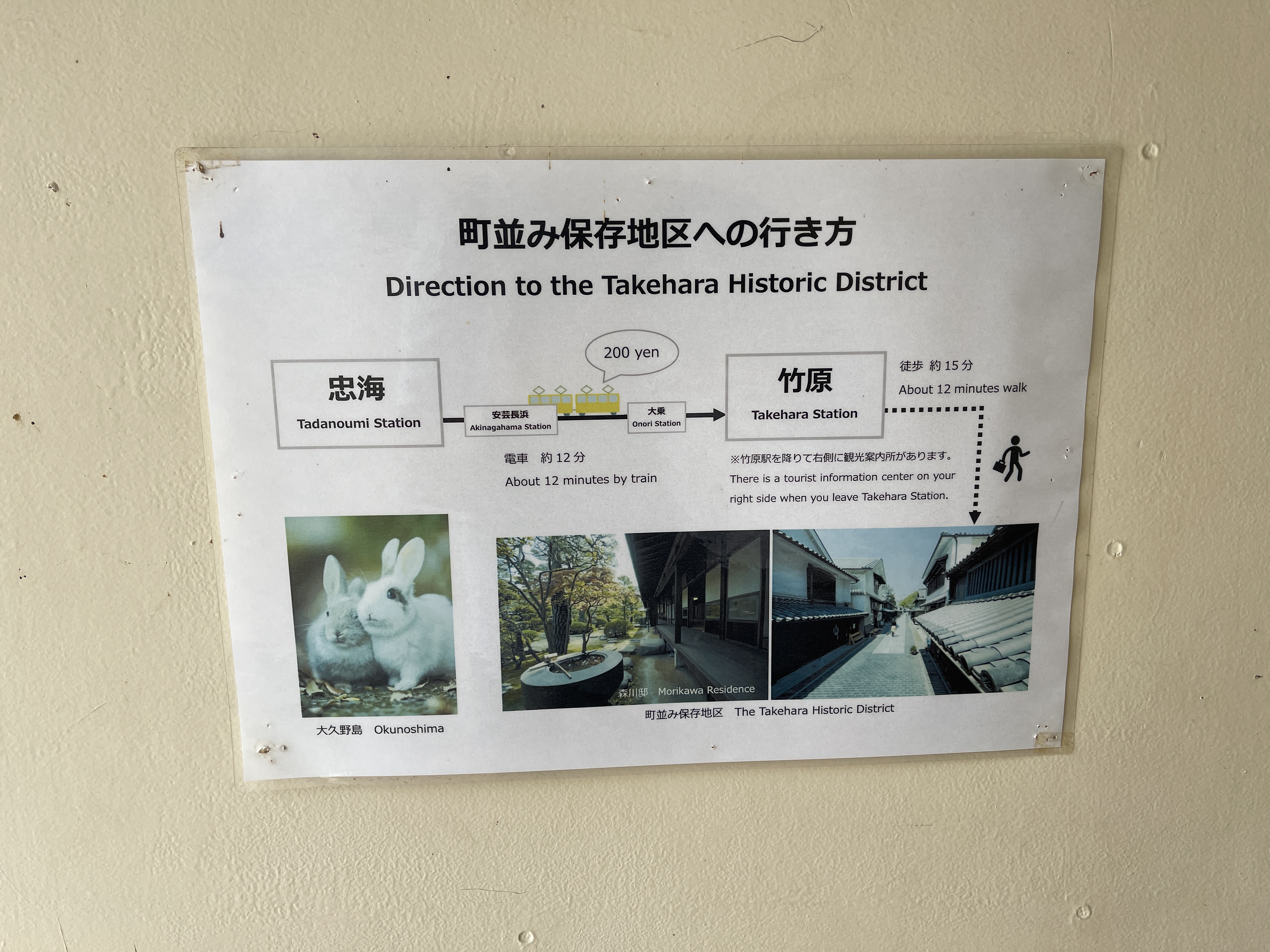 타다노우미역 근처에 있는 타케하라시 관광에 대한 소개문을 간단히 읽어봅니다.