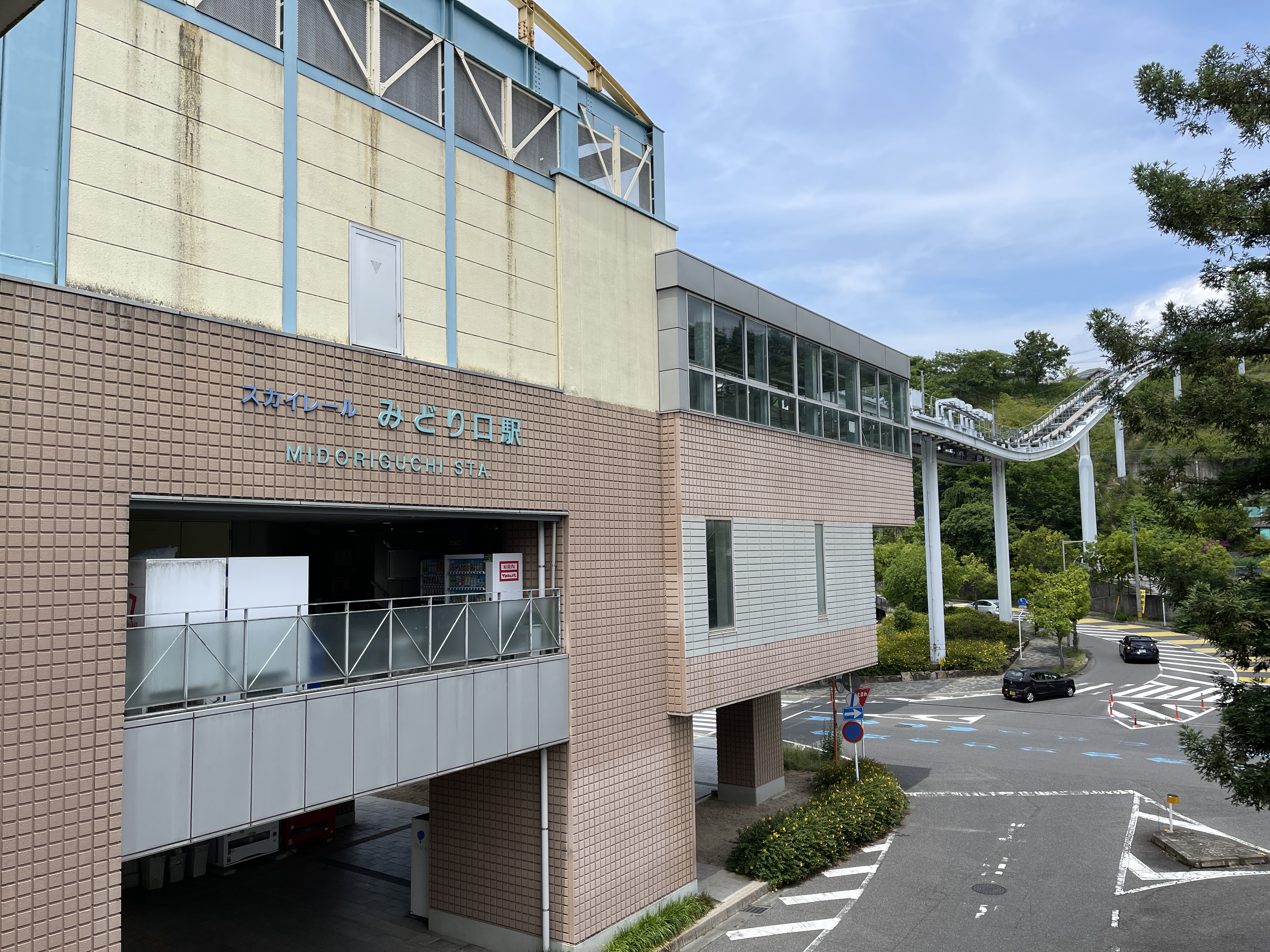 역에서 내리니 스카이레일 타운 미도리자카 구역도가 보이는데