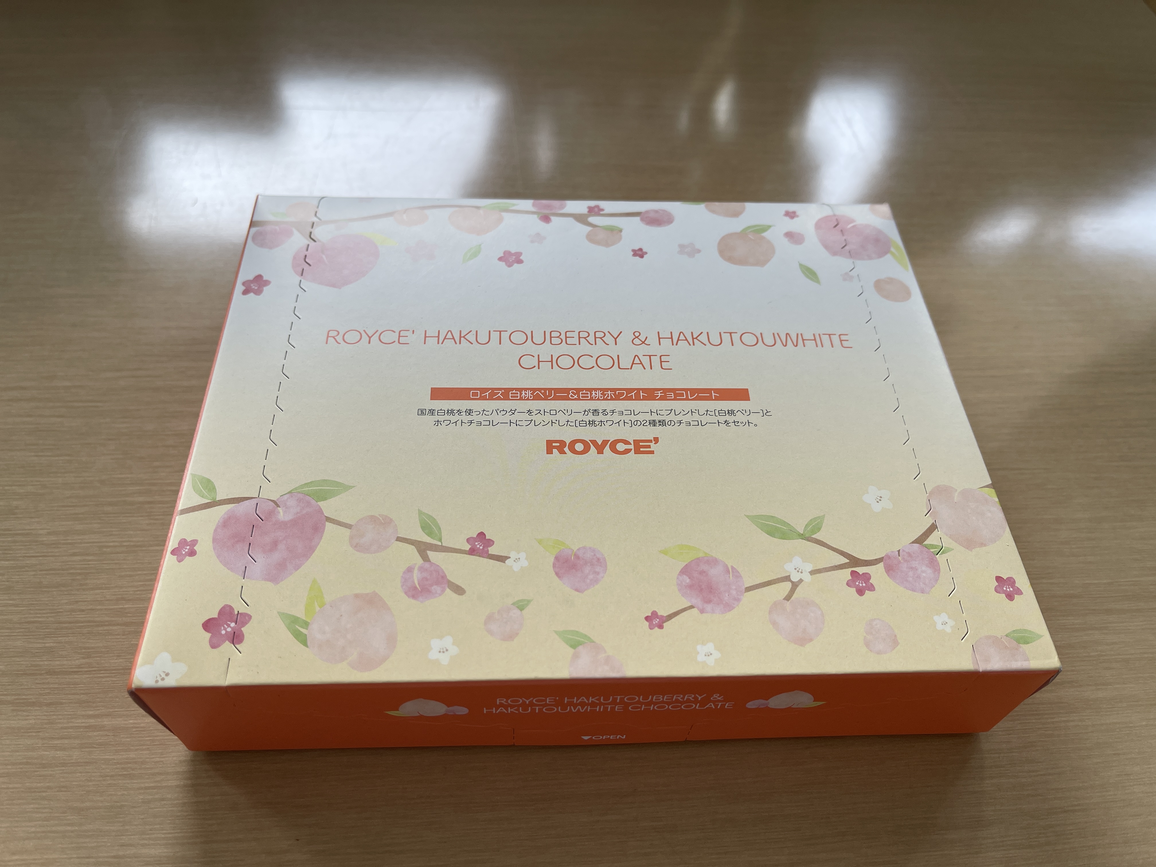 전날 호텔로 배송을 시킨 로이즈 초콜릿 한정판 복숭아맛 초콜릿을 꺼내