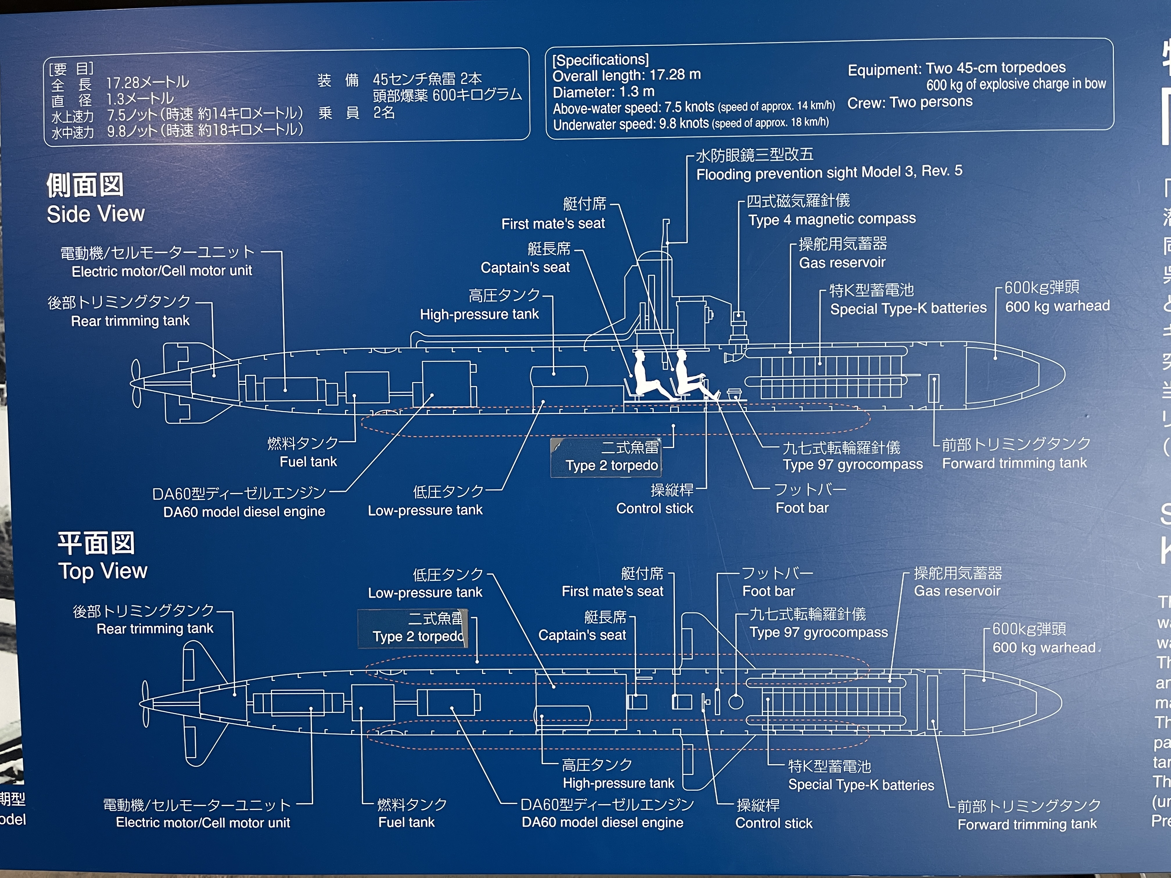 그 옆에 놓인 카이류는 크기만 카이텐보다 클 뿐 사실상 용도가 같은 잠수정인데