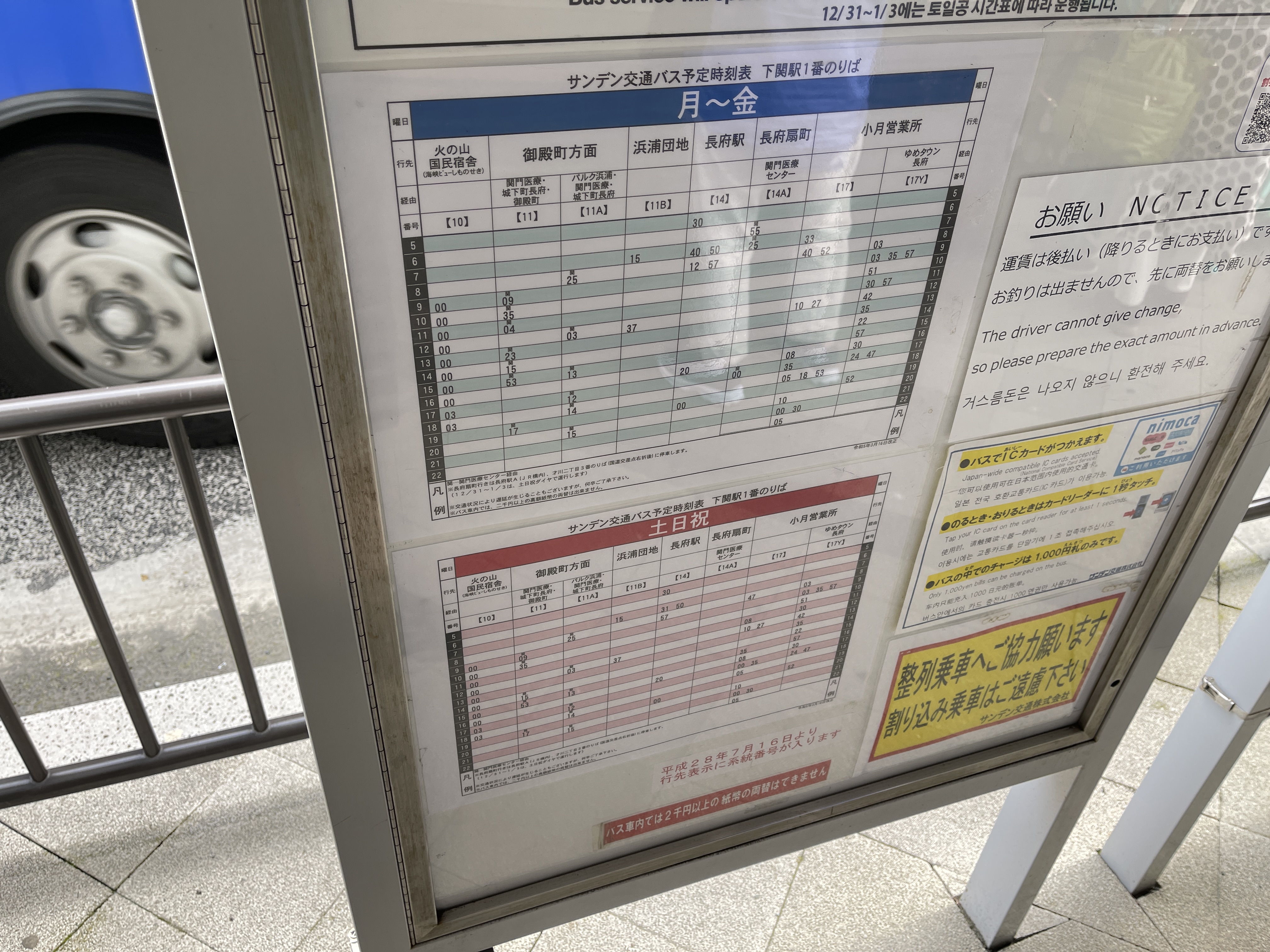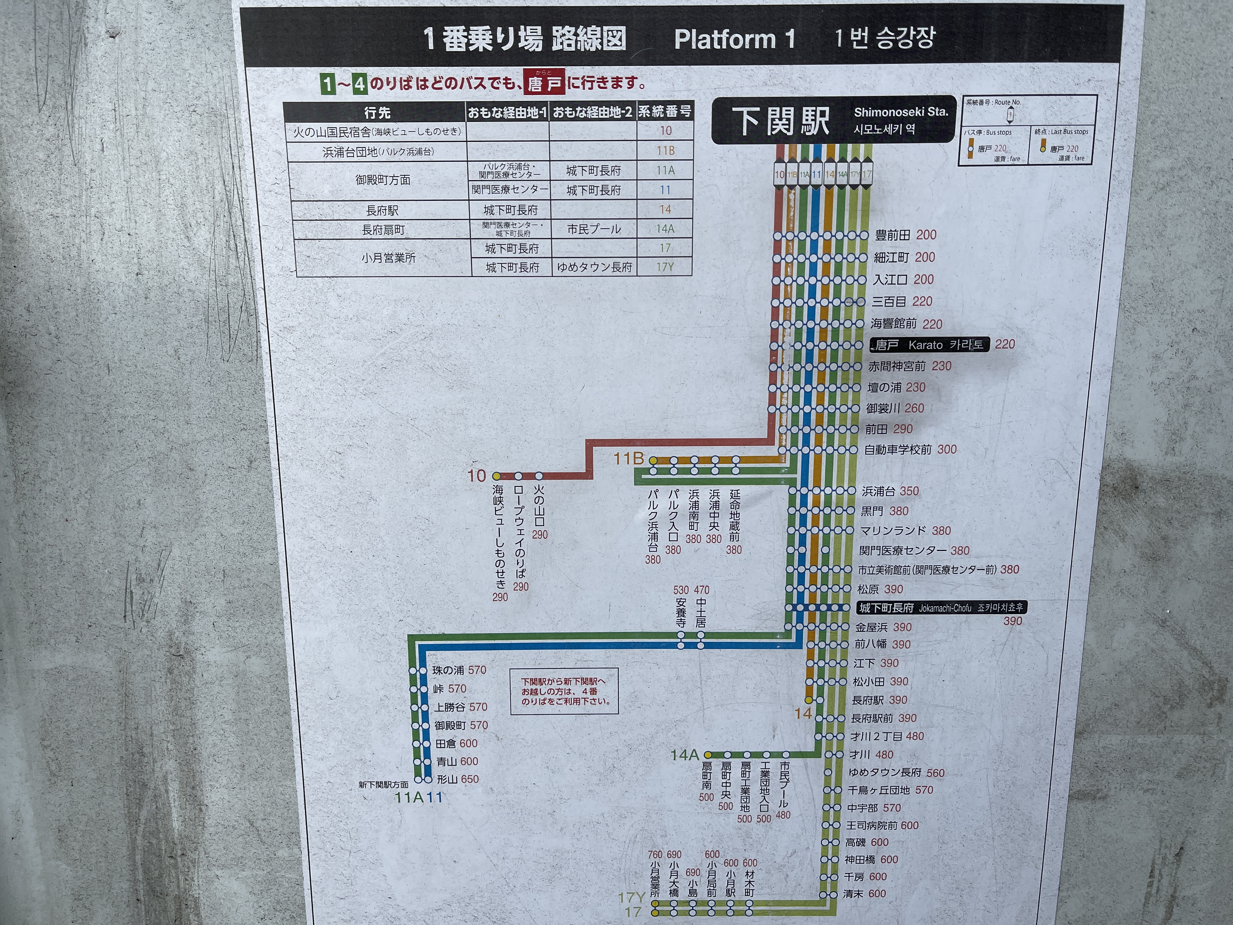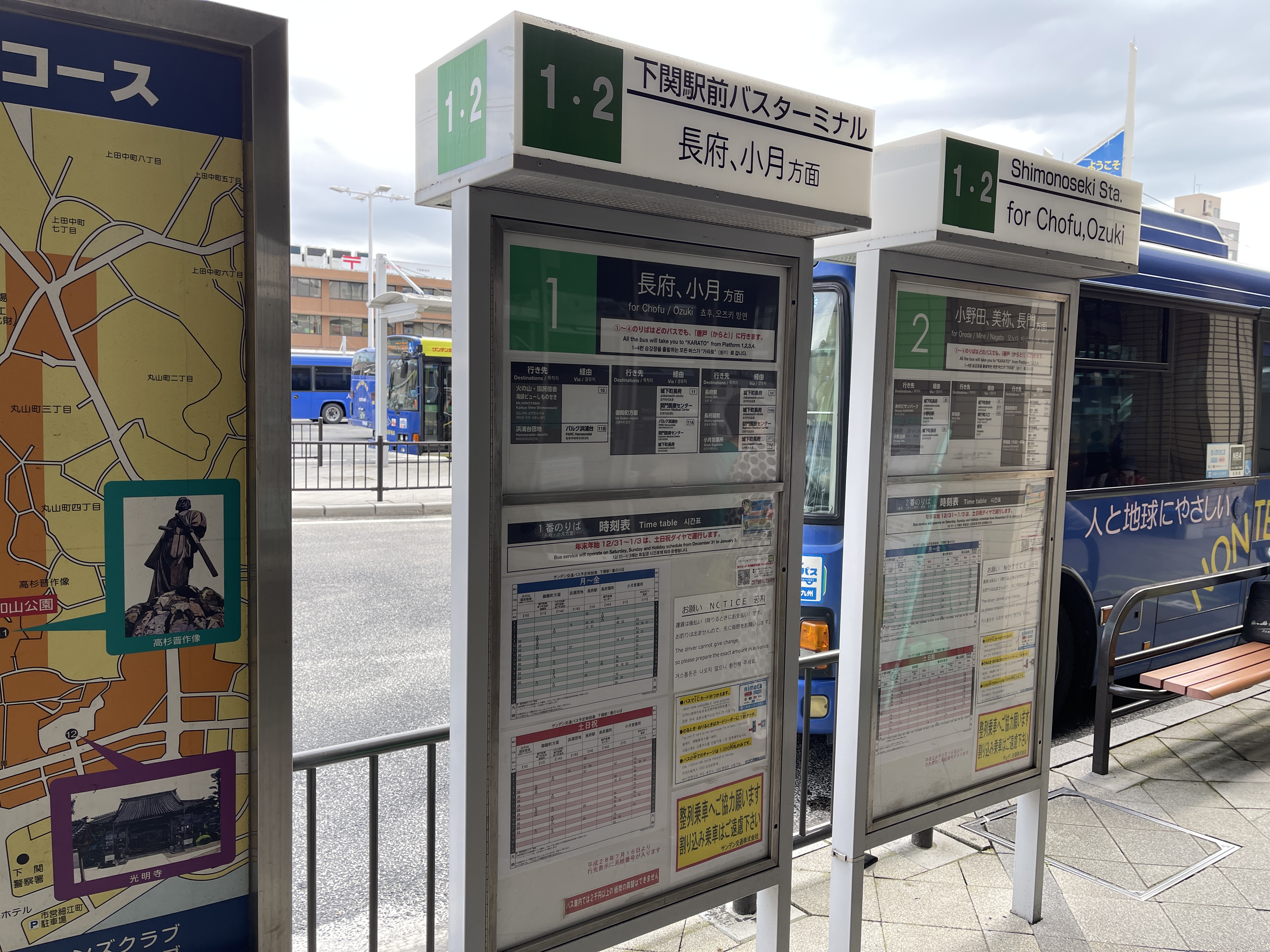 시모노세키역 버스터미널 1번 승강장에서 출발하는