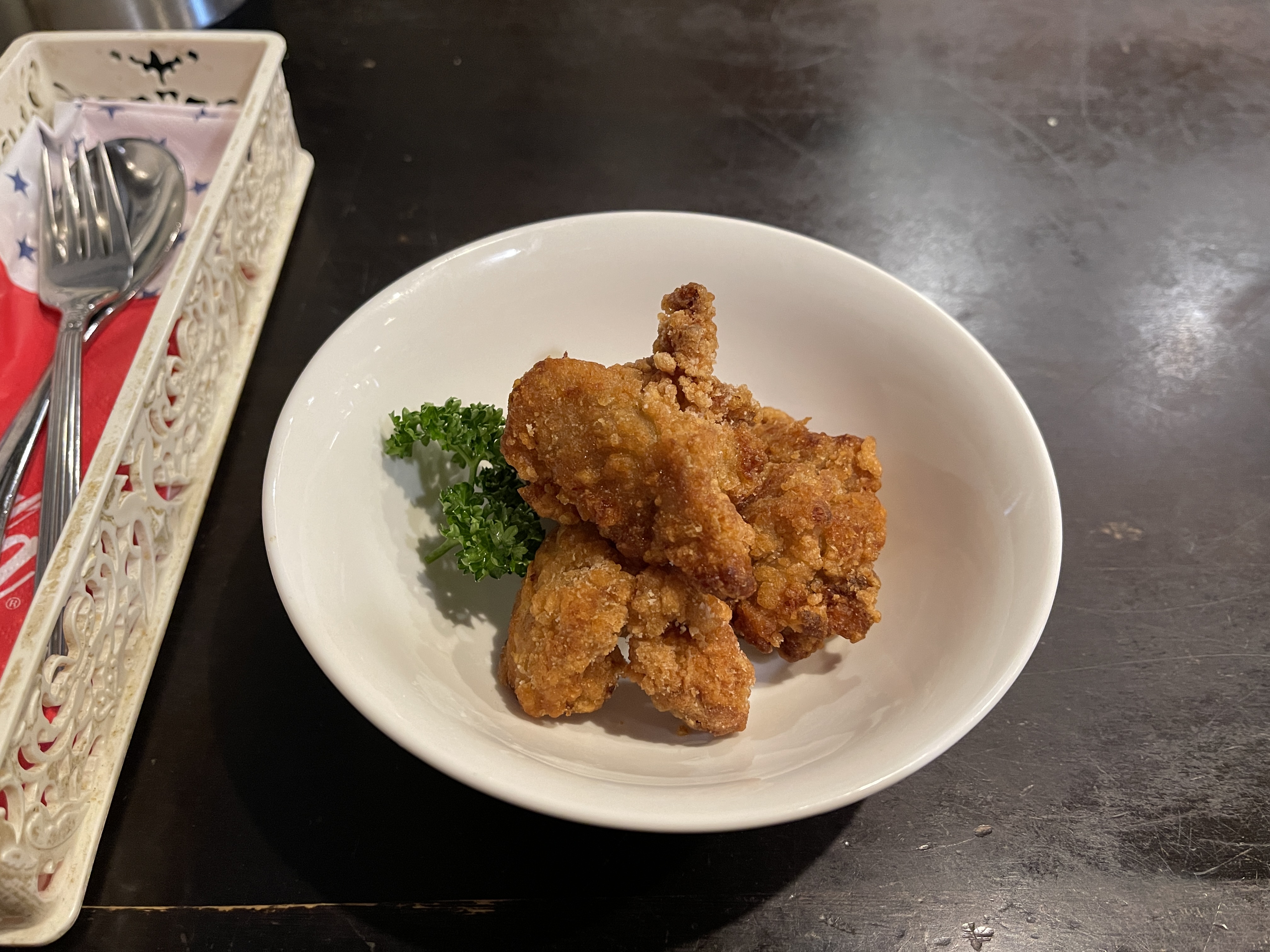 카레를 기다리는 동안 카라아게가 먼저 나와서 이걸로 먼저 배를 채우고
