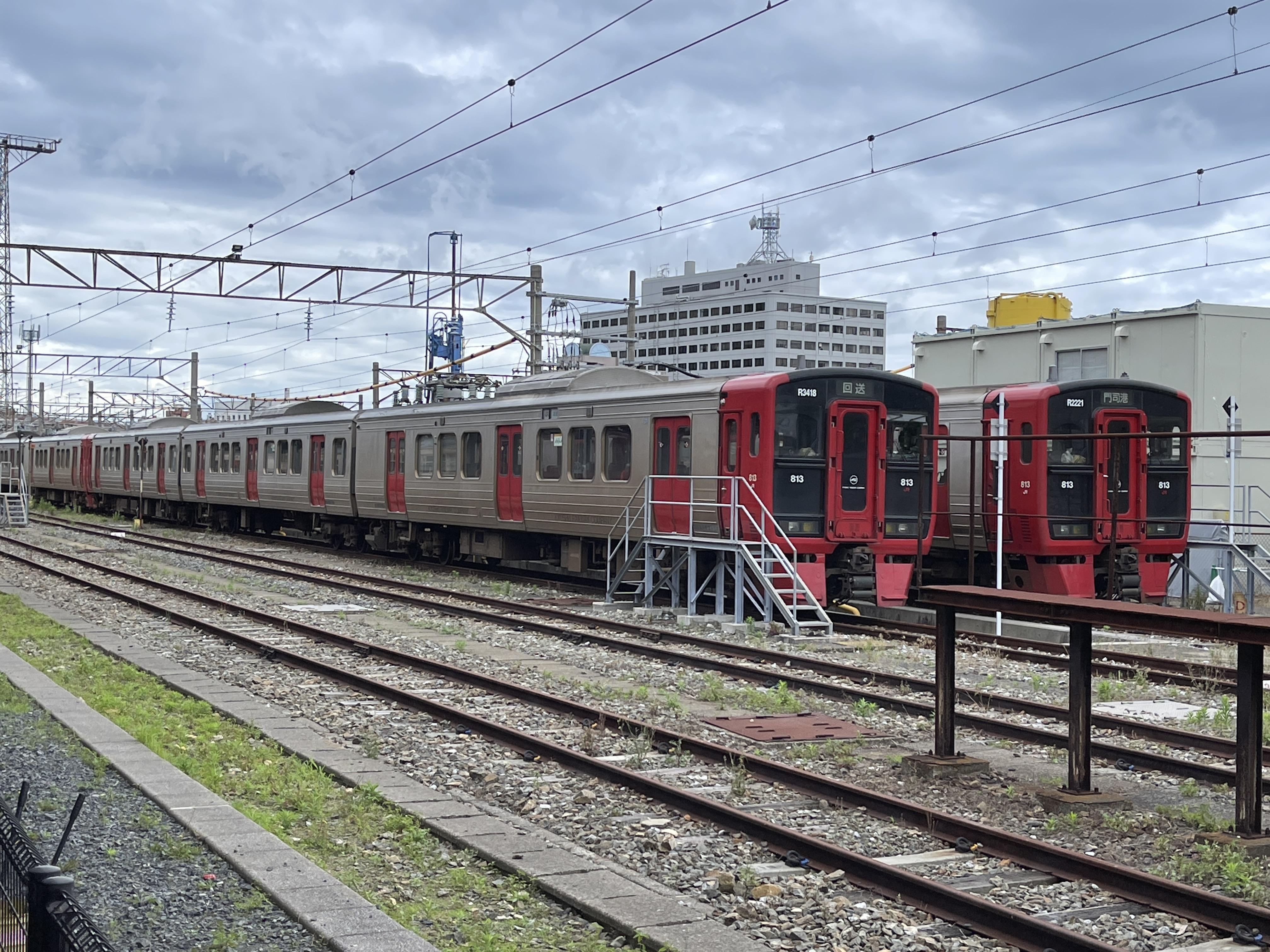 모지코역에 있는 현역 열차 옆으로