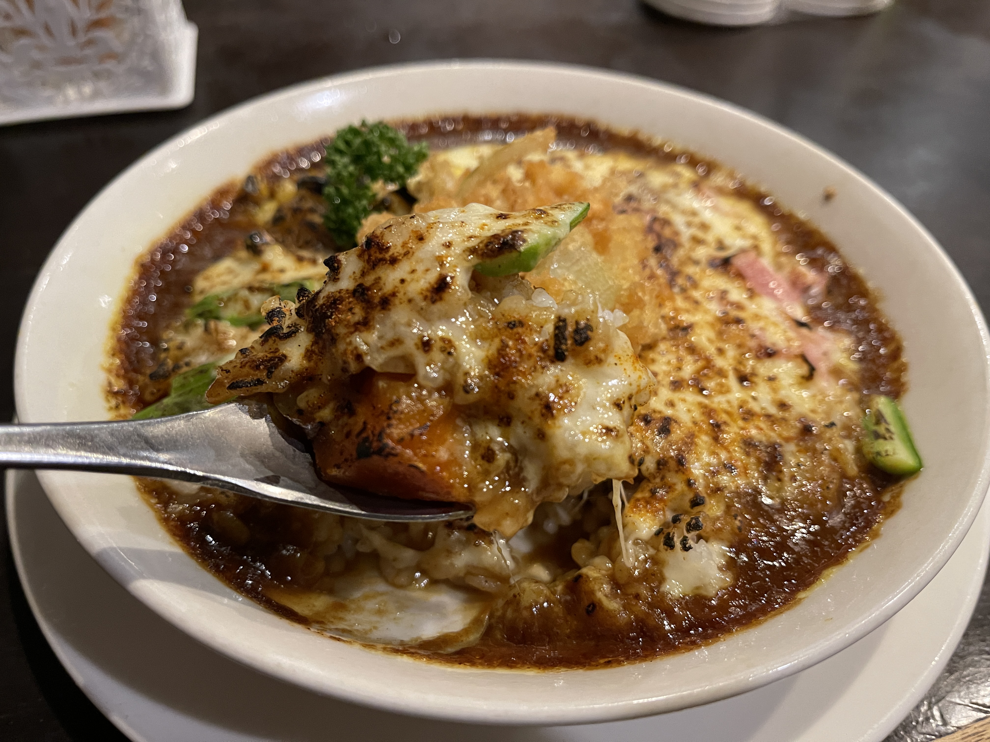카레라이스에 치즈를 올리고 구운 야키카레를 받아 마저 배를 채웁니다.