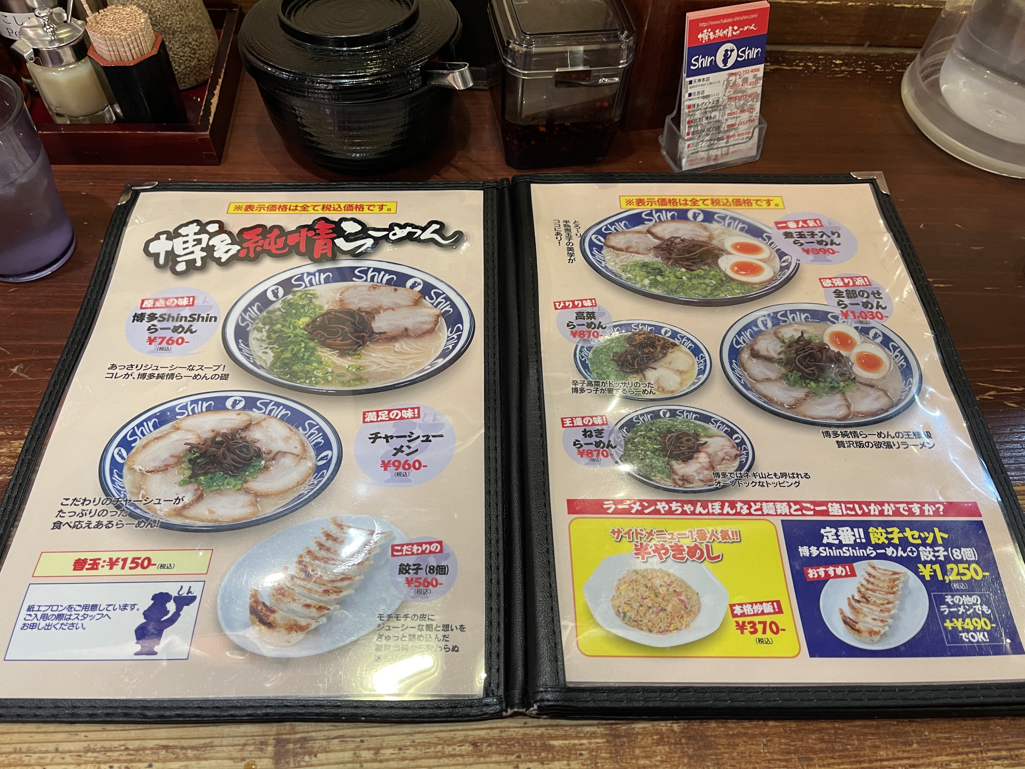 삶은 계란이 들어간 라멘(煮玉子入りらーめん)과 반 볶음밥(半やきめし), 그리고 교자(餃子)를 주문합니다.
