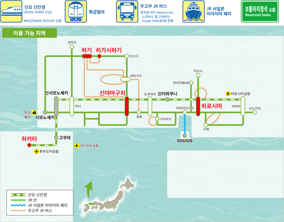 히로시마 야마구치 패스 이용 범위에는 전석 지정석 열차가 없고