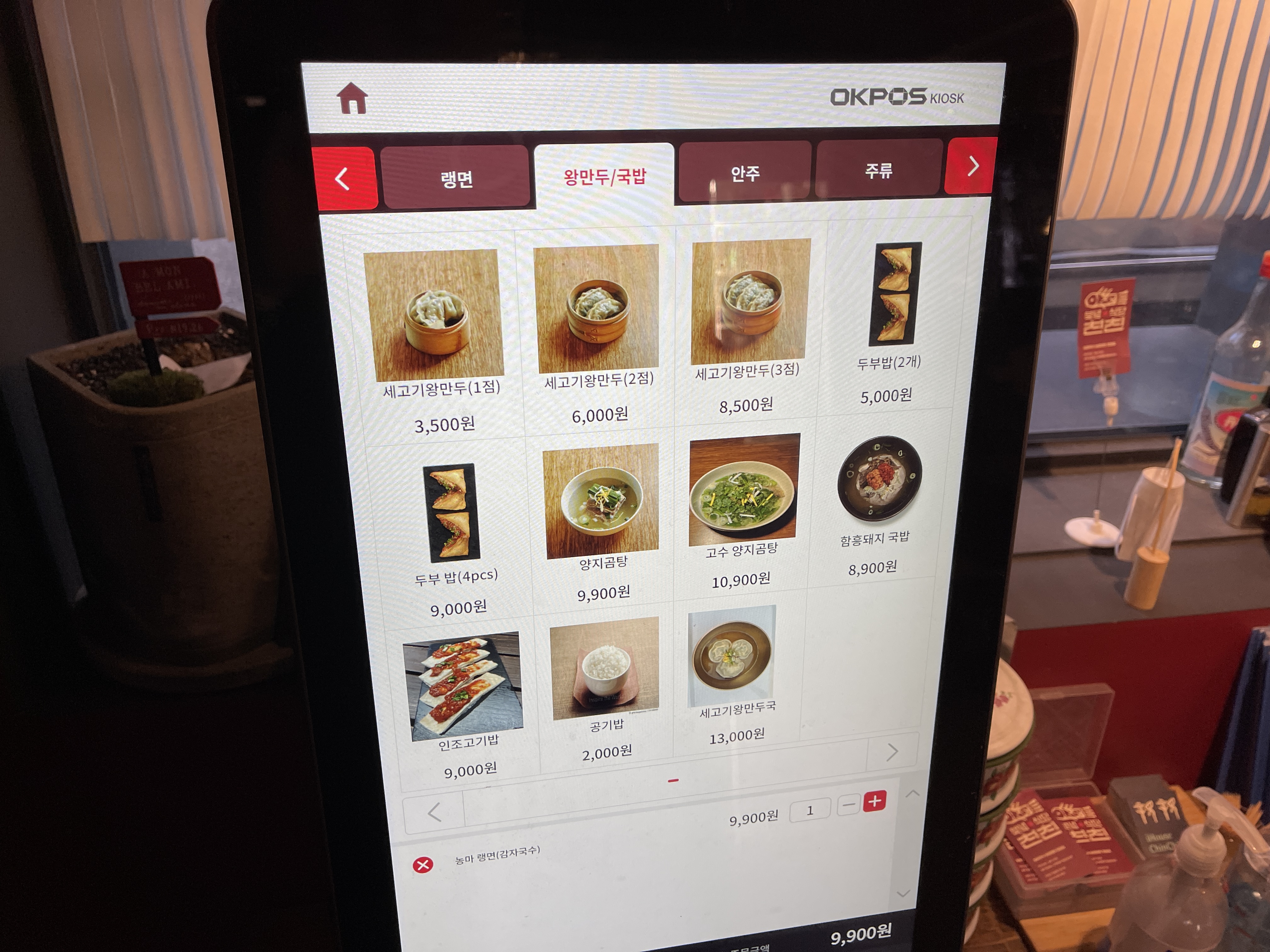 사이드 메뉴로 두부밥과 세고기왕만두를 주문한 뒤