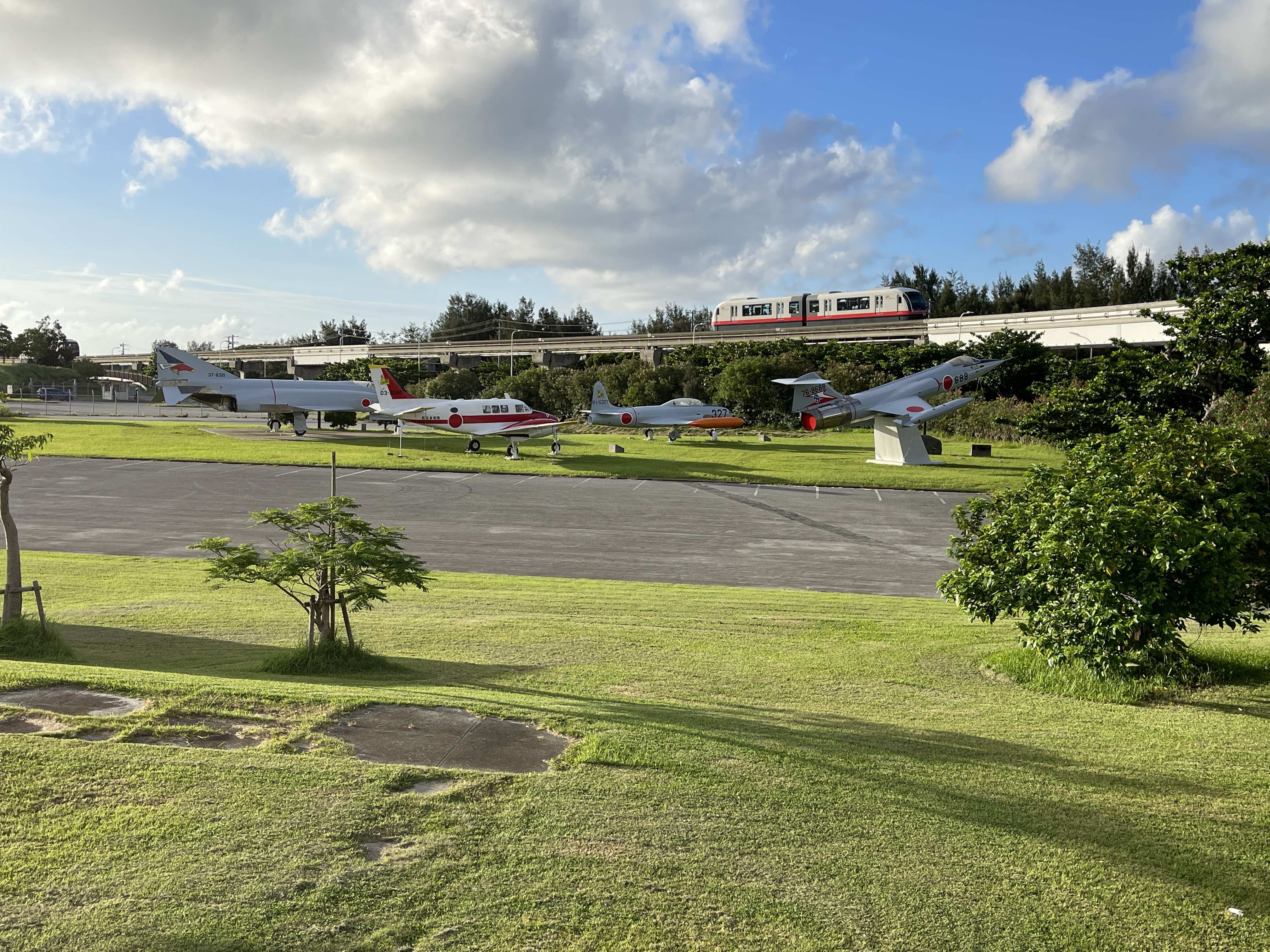 나하 공항에서 시내로 이동할 때 열차에서 전투기가 놓인 공원 같은 공간을 봐서